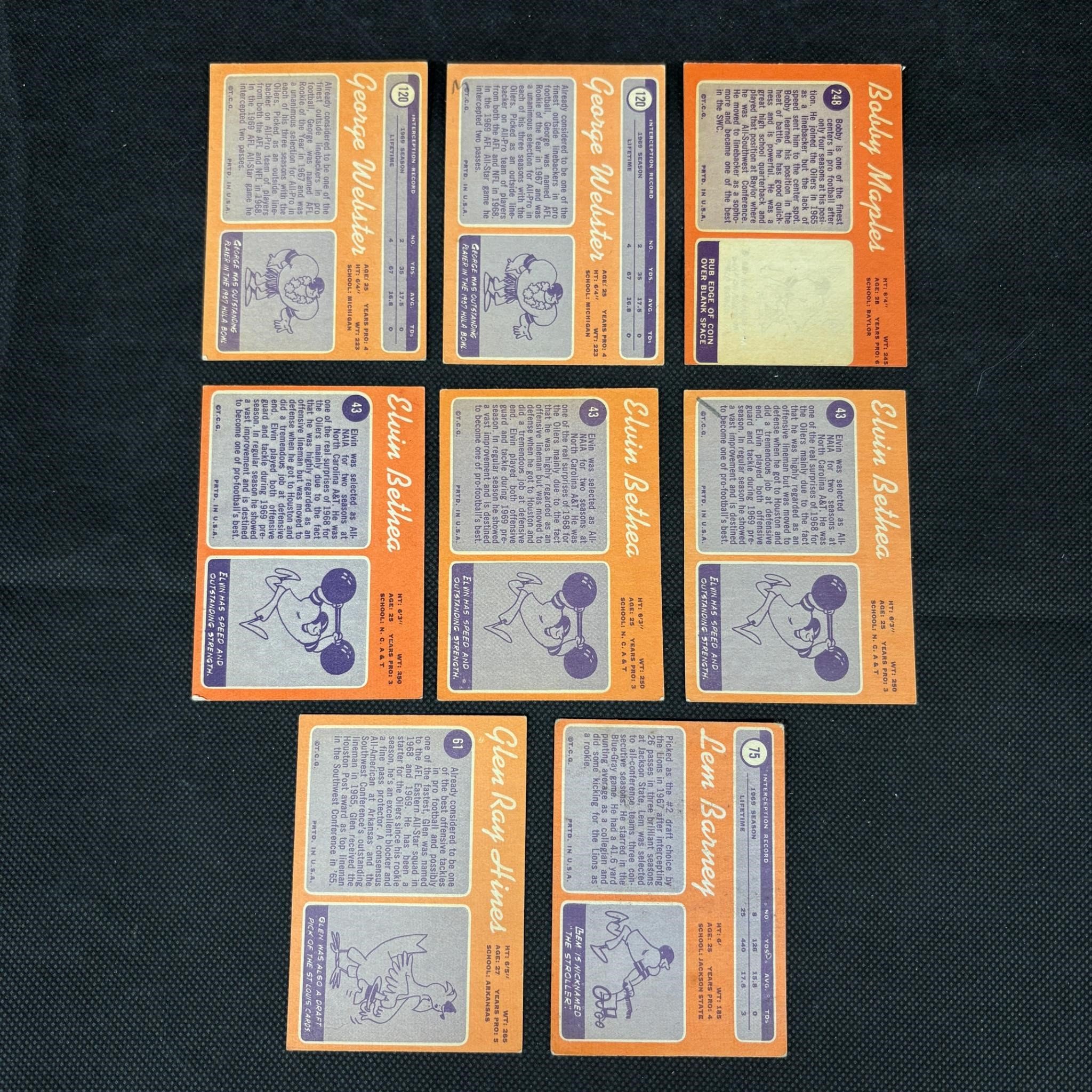 1970 Topps Football with RCs Len Barney Football Cards. We ship in-house! We ship internationally. We also offer pick up and we offer a discount for cash payments. Please look at pictures carefully to determine what you believe are the condition of each lot. We offer in person or virtual previews and we can take additional pictures, or answer questions about any lot until about 24 hours prior to auction. So all lots sold as is. By choosing which card to use to register to bid, you authorize the auction host to charge the card on file at the end of the auction to pay for any lots and shipping you won. Happy Bidding and Best of luck!