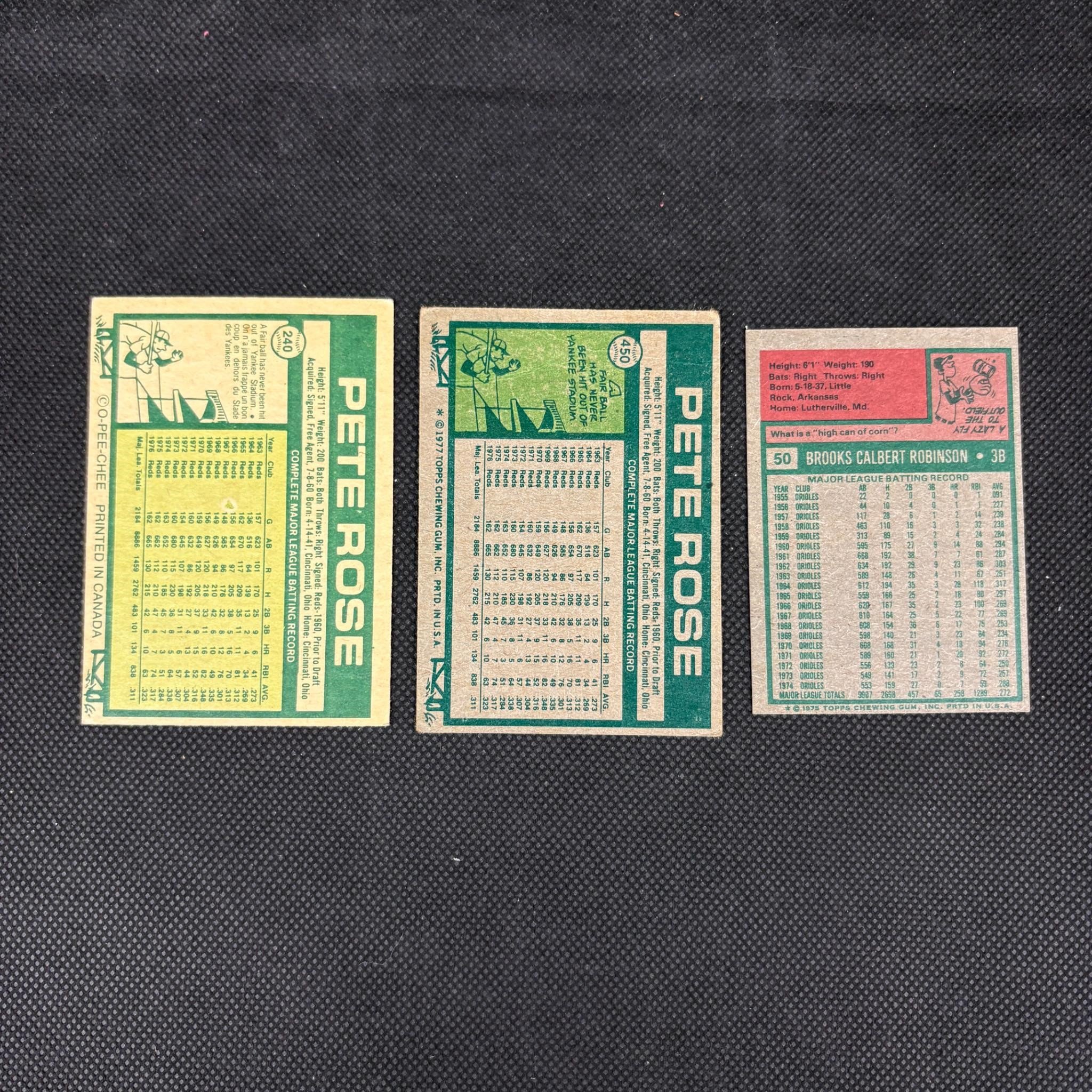 1977 Topps Pete Rose 1977 OPC Pete Rose 1975 Topps Mini Brooks Robinson Baseball Cards. We ship in-house! We ship internationally. We also offer pick up and we offer a discount for cash payments. Please look at pictures carefully to determine what you believe are the condition of each lot. We offer in person or virtual previews and we can take additional pictures, or answer questions about any lot until about 24 hours prior to auction. So all lots sold as is. By choosing which card to use to register to bid, you authorize the auction host to charge the card on file at the end of the auction to pay for any lots and shipping you won. Happy Bidding and Best of luck!