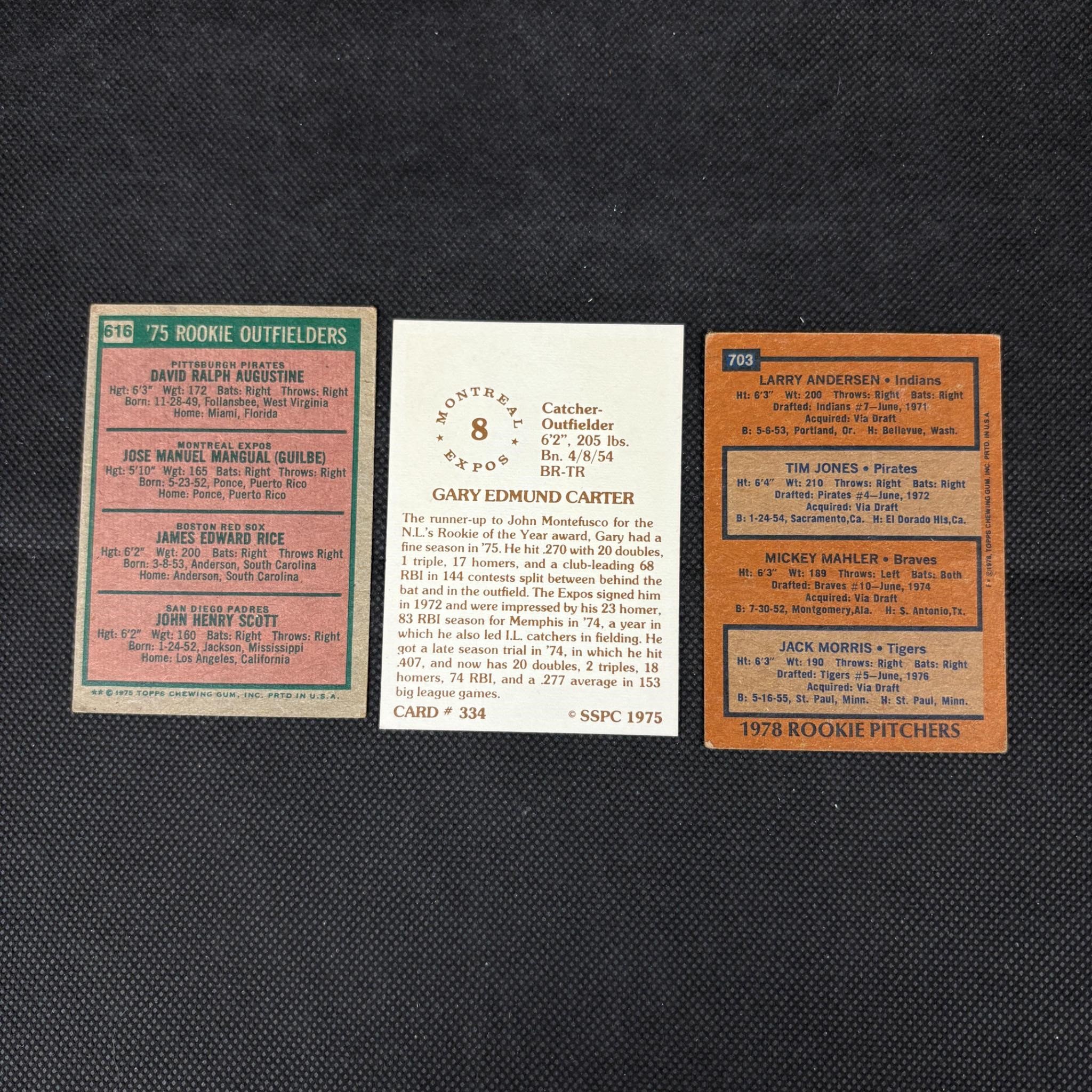 1975 Topps Jim Rice RC 1979 Jack Morris RC SSPC Gary Carter RC Baseball Cards. We ship in-house! We ship internationally. We also offer pick up and we offer a discount for cash payments. Please look at pictures carefully to determine what you believe are the condition of each lot. We offer in person or virtual previews and we can take additional pictures, or answer questions about any lot until about 24 hours prior to auction. So all lots sold as is. By choosing which card to use to register to bid, you authorize the auction host to charge the card on file at the end of the auction to pay for any lots and shipping you won. Happy Bidding and Best of luck!