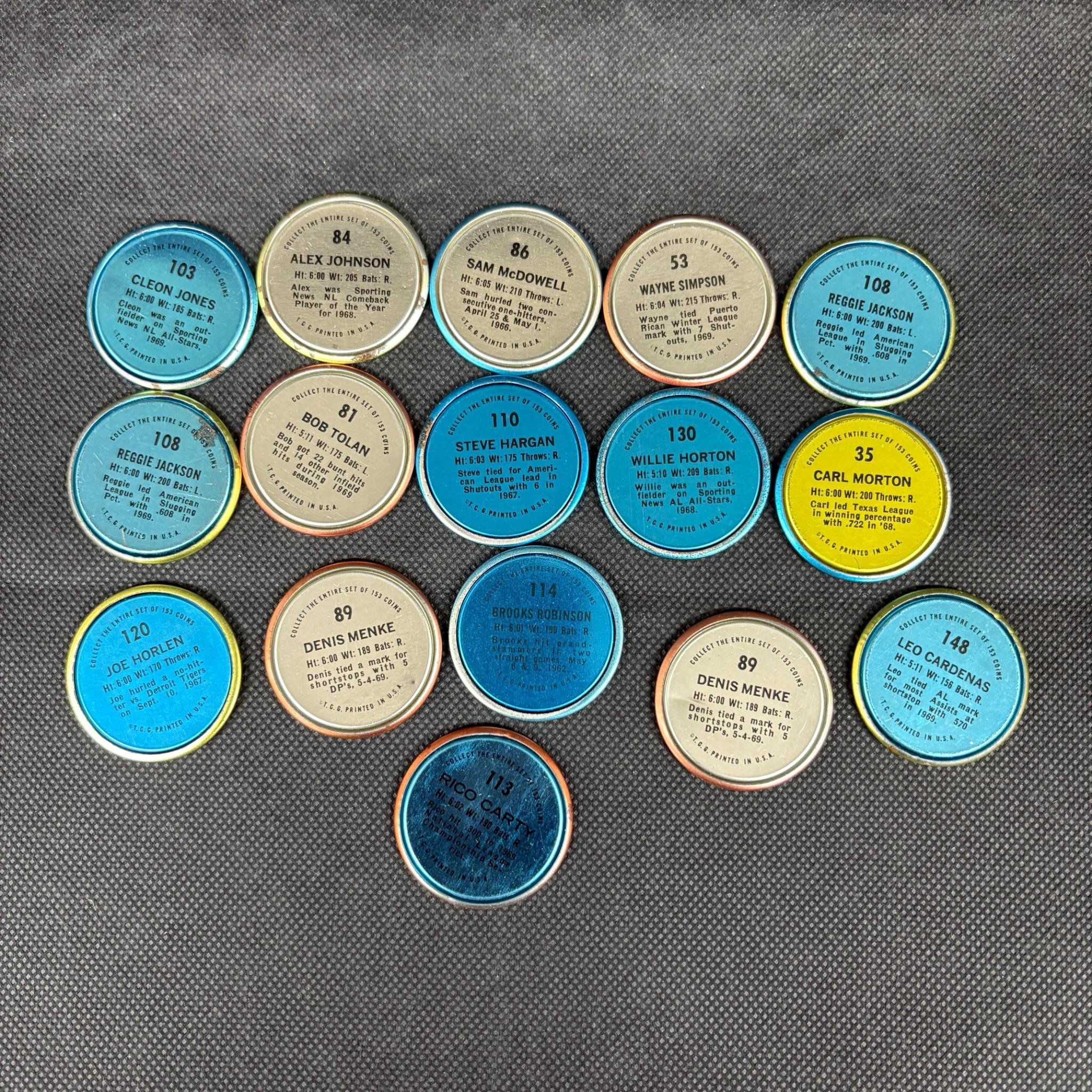 1971 Topps Baseball Coins, Reggie Jackson, etc We ship in-house! We ship internationally. We also offer pick up and we offer a discount for cash payments. Please look at pictures carefully to determine what you believe are the condition of each lot. We offer in person or virtual previews and we can take additional pictures, or answer questions about any lot until about 24 hours prior to auction. So all lots sold as is. By choosing which card to use to register to bid, you authorize the auction host to charge the card on file at the end of the auction to pay for any lots and shipping you won. Happy Bidding and Best of luck!