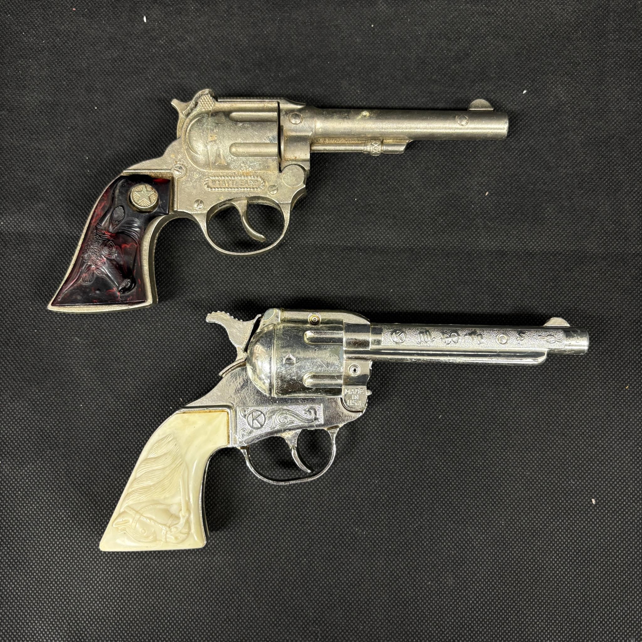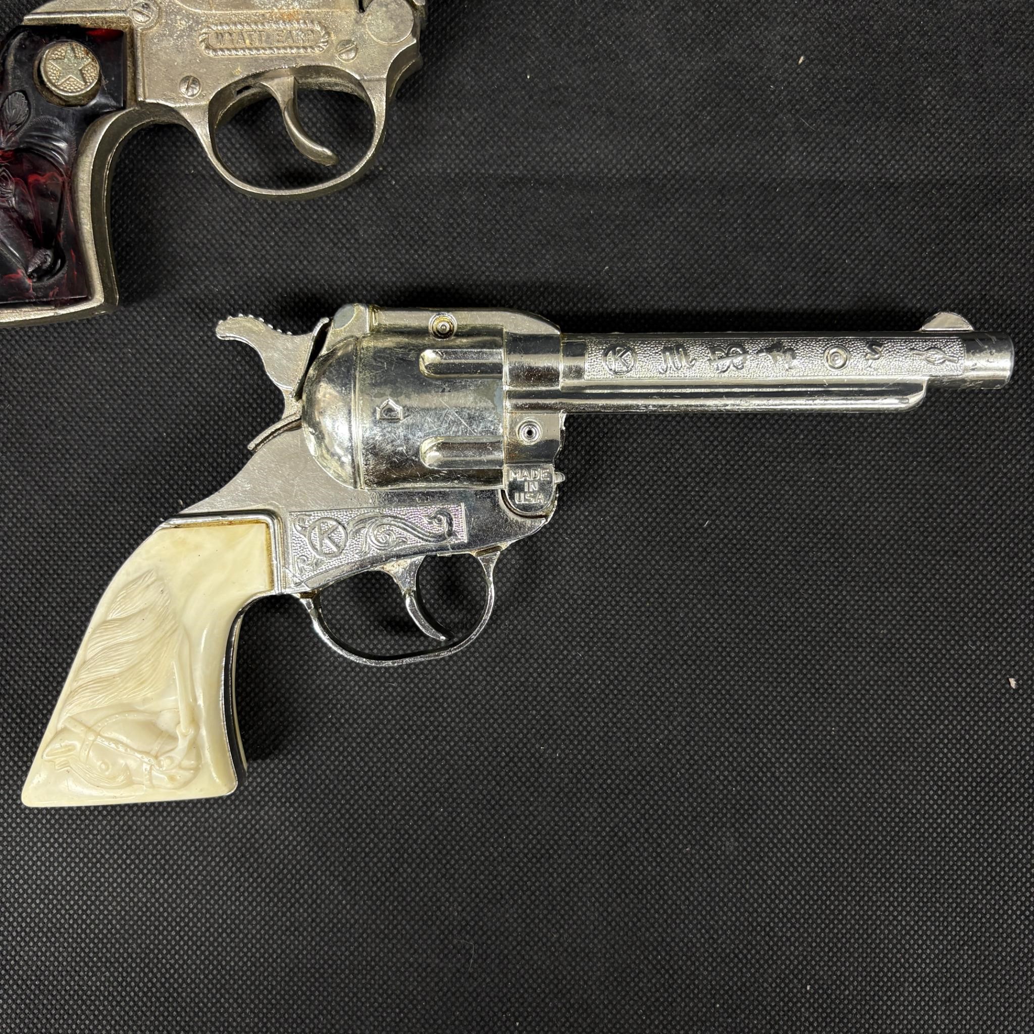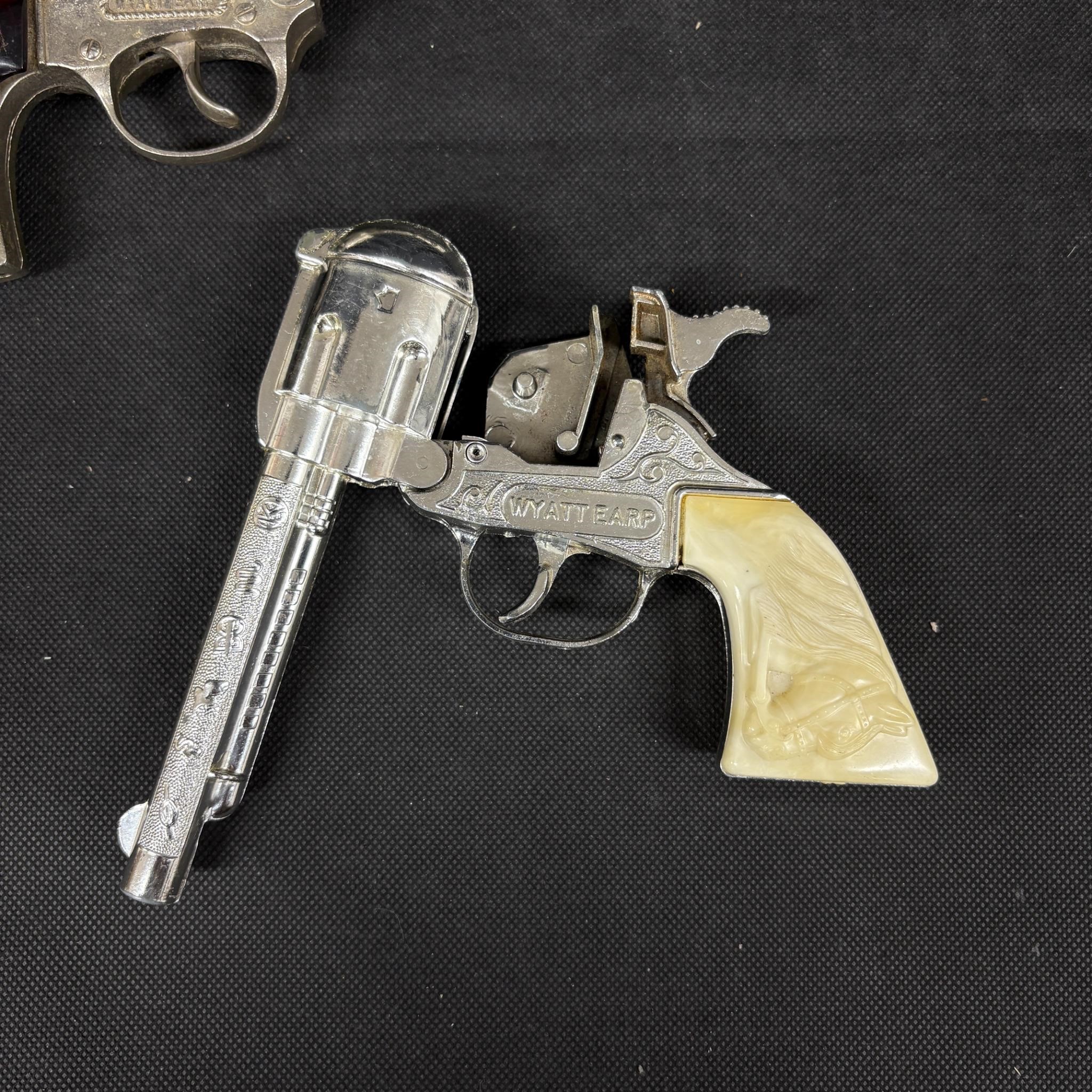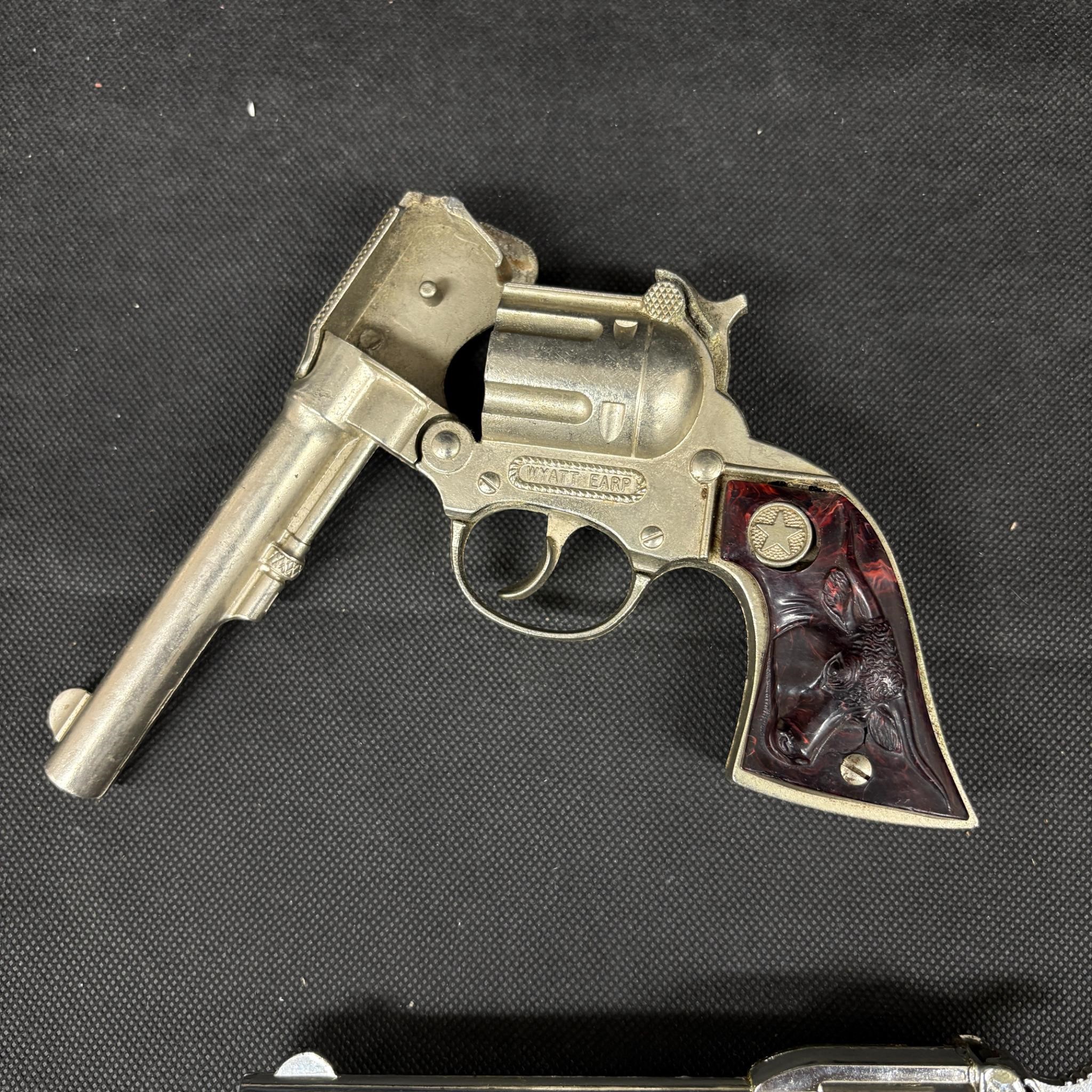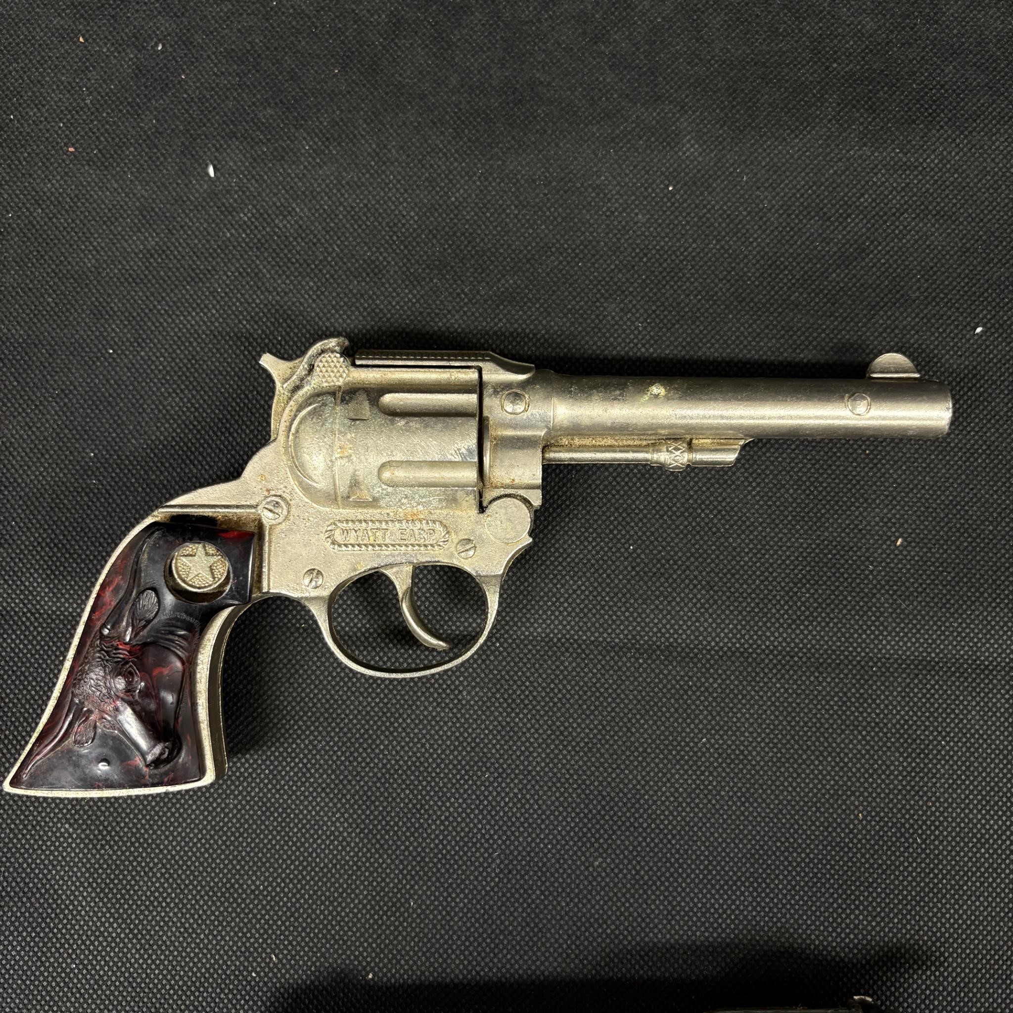 Rare Vintage WYATT EARP TOY CAP Guns by Hubley Toy Manufacture Co, PA. USA circa 1959. We ship in-house! We ship internationally. We also offer pick up and we offer a discount for cash payments. Please look at pictures carefully to determine what you believe are the condition of each lot. We offer in person or virtual previews and we can take additional pictures, or answer questions about any lot until about 24 hours prior to auction. So all lots sold as is. By choosing which card to use to register to bid, you authorize the auction host to charge the card on file at the end of the auction to pay for any lots and shipping you won. Happy Bidding and Best of luck!