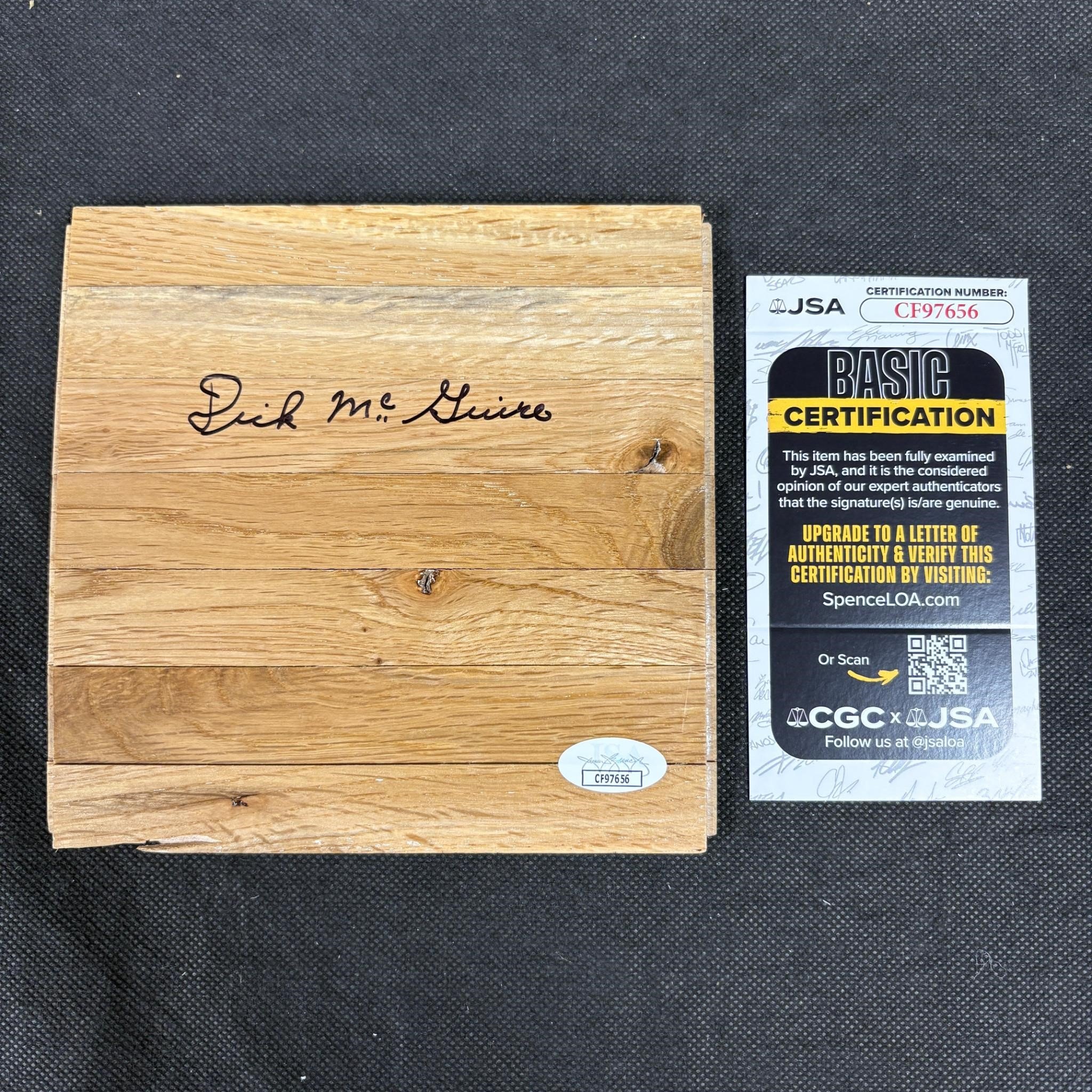 Dick McGuire Signed Floorboard, JSA COA Basketball. We ship in-house! We ship internationally. We also offer pick up and we offer a discount for cash payments. Please look at pictures carefully to determine what you believe are the condition of each lot. We offer in person or virtual previews and we can take additional pictures, or answer questions about any lot until about 24 hours prior to auction. So all lots sold as is. By choosing which card to use to register to bid, you authorize the auction host to charge the card on file at the end of the auction to pay for any lots and shipping you won. Happy Bidding and Best of luck!