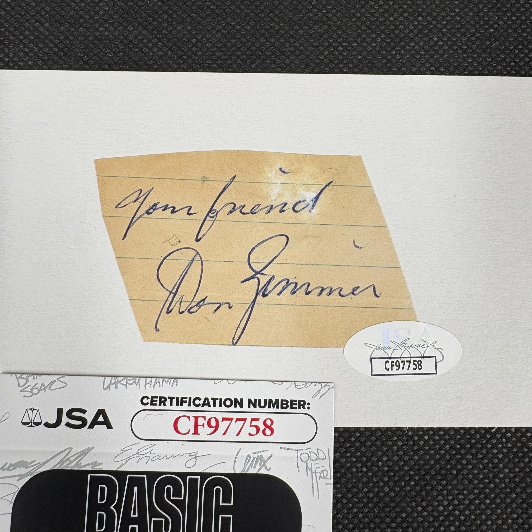 Baseball Player Don Zimmer Signed Cut. We ship in-house! We ship internationally. We also offer pick up and we offer a discount for cash payments. Please look at pictures carefully to determine what you believe are the condition of each lot. We offer in person or virtual previews and we can take additional pictures, or answer questions about any lot until about 24 hours prior to auction. So all lots sold as is. By choosing which card to use to register to bid, you authorize the auction host to charge the card on file at the end of the auction to pay for any lots and shipping you won. Happy Bidding and Best of luck!