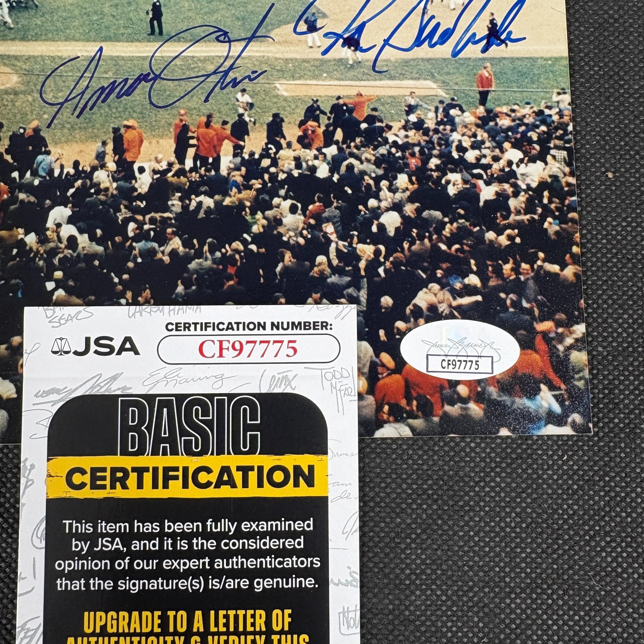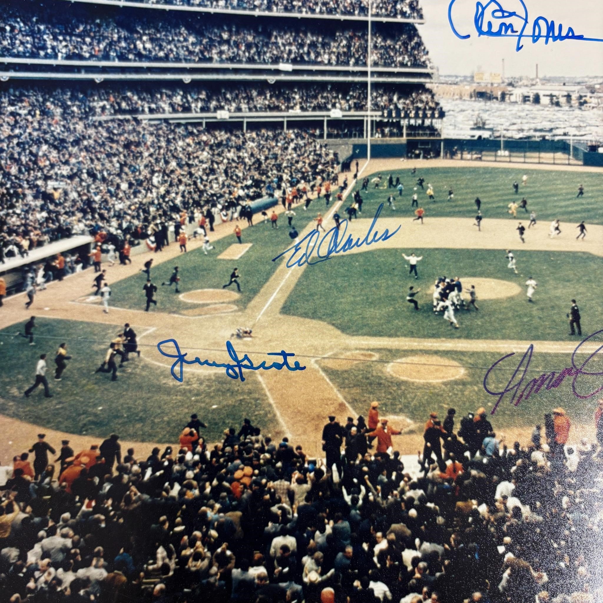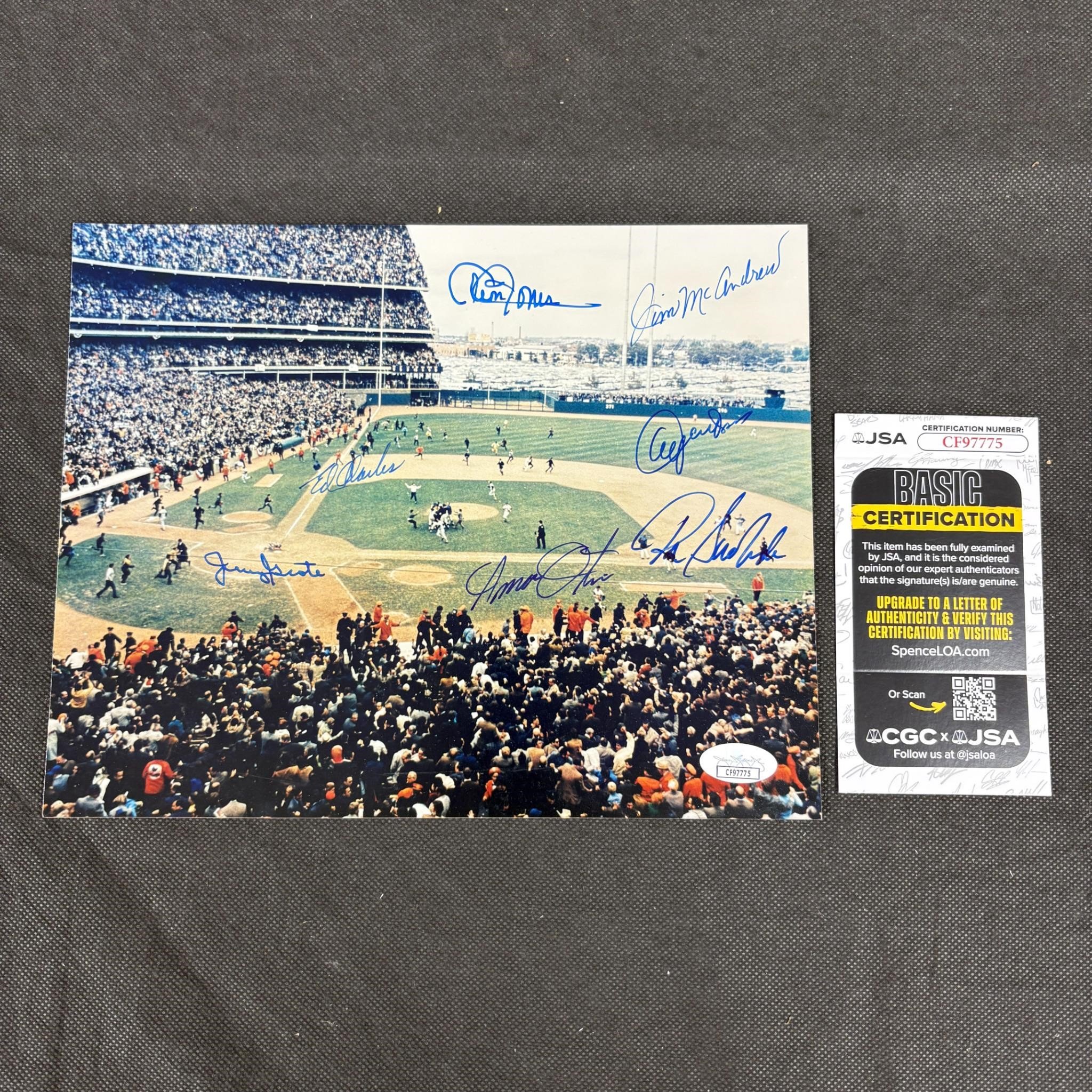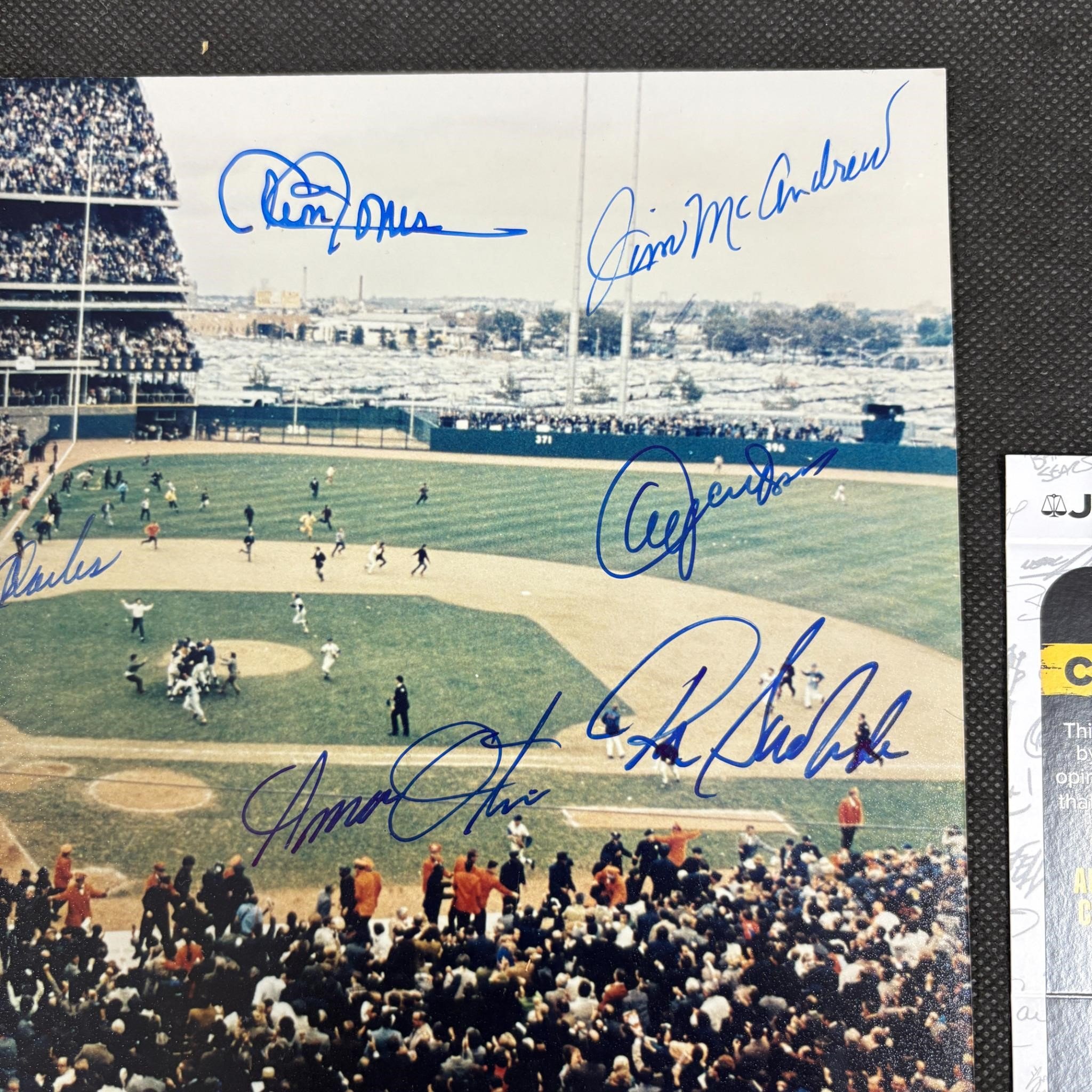 Cleon Jones, Jim McAndrew, Ron Swoboda, Amos Otis, Jerry Grote, Ed Charles, Al Jackson Signed Photo. JSA COA. Baseball. We ship in-house! We ship internationally. We also offer pick up and we offer a discount for cash payments. Please look at pictures carefully to determine what you believe are the condition of each lot. We offer in person or virtual previews and we can take additional pictures, or answer questions about any lot until about 24 hours prior to auction. So all lots sold as is. By choosing which card to use to register to bid, you authorize the auction host to charge the card on file at the end of the auction to pay for any lots and shipping you won. Happy Bidding and Best of luck!