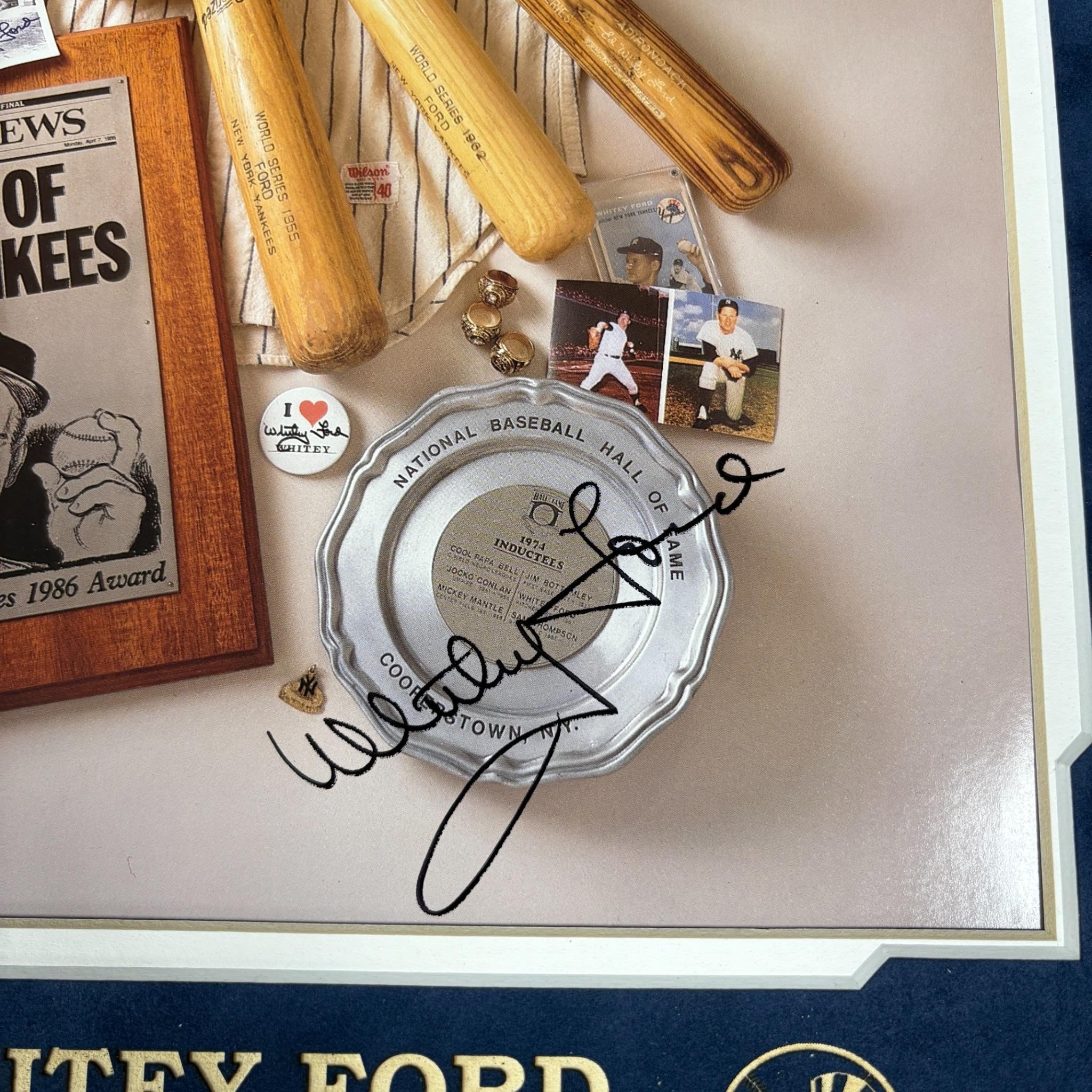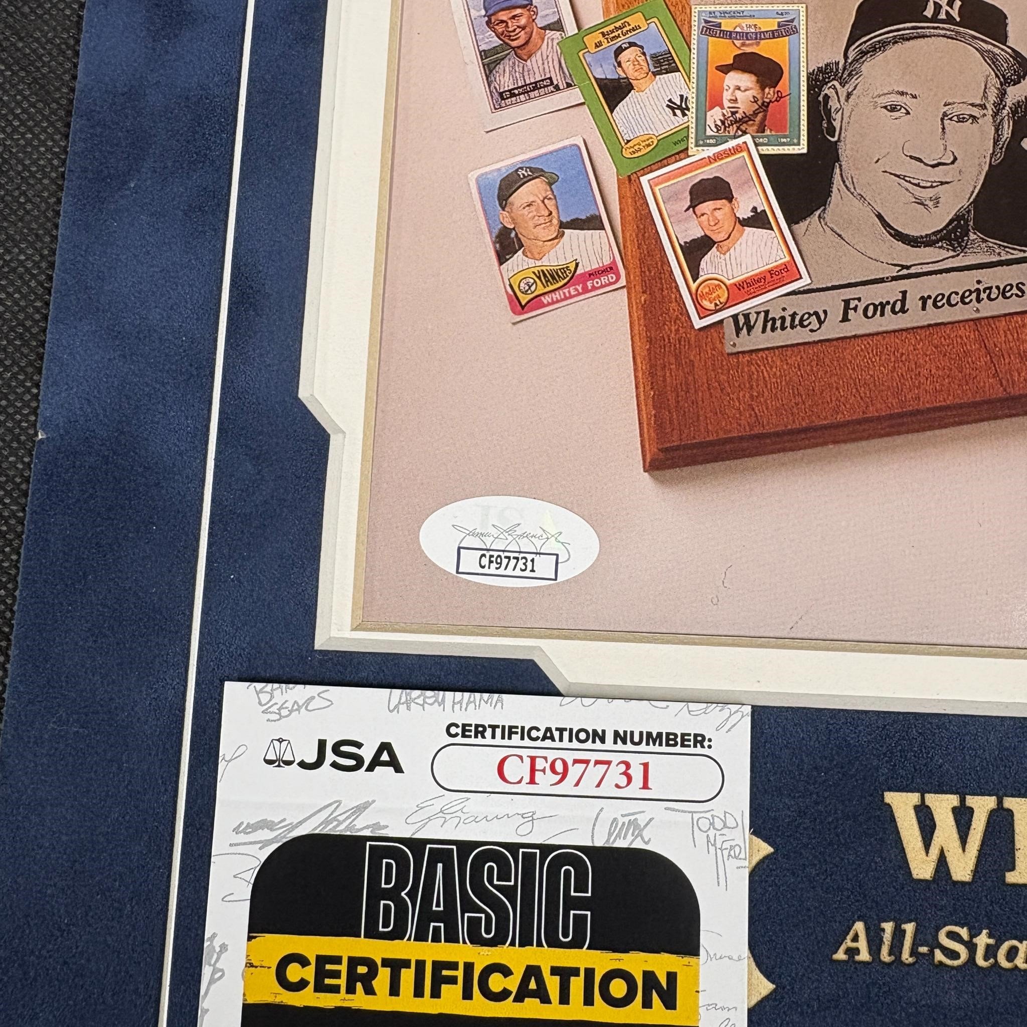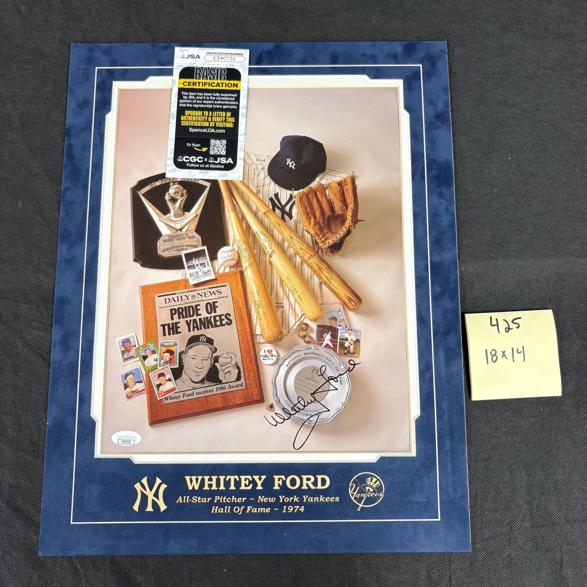 Whitey Ford All Star Pitcher HOF Photo and Display Signed. JSA COA. Dimensions: 18×14. We ship in-house! We ship internationally. We also offer pick up and we offer a discount for cash payments. Please look at pictures carefully to determine what you believe are the condition of each lot. We offer in person or virtual previews and we can take additional pictures, or answer questions about any lot until about 24 hours prior to auction. So all lots sold as is. By choosing which card to use to register to bid, you authorize the auction host to charge the card on file at the end of the auction to pay for any lots and shipping you won. Happy Bidding and Best of luck!