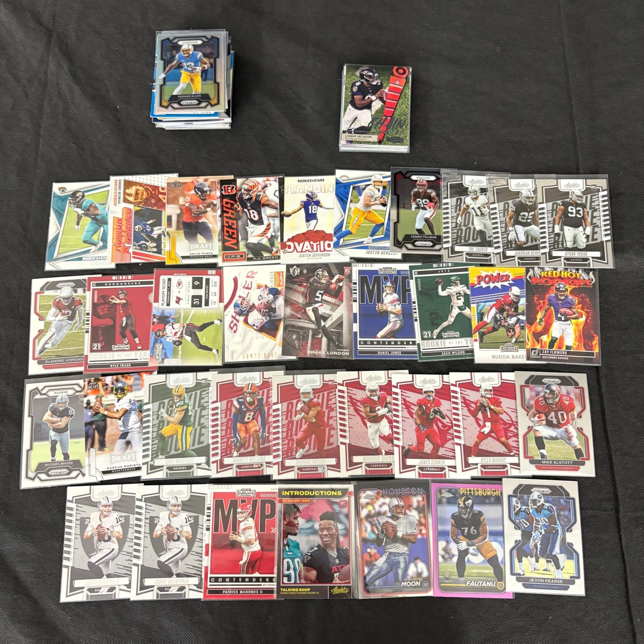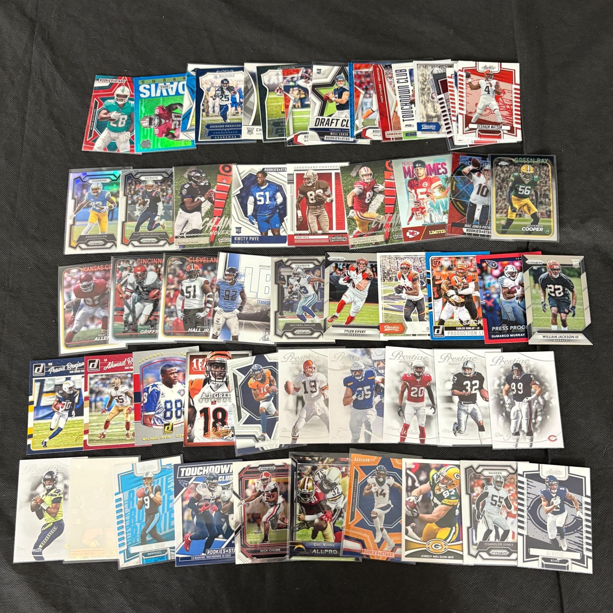 Large lot of Modern Football Cards. Includes Patrick Mahomes MVP, Deshaun Watson, Warren Moon. Topps, Topps chrome, Panini Prizm, + We ship in-house! We ship internationally. We also offer pick up and we offer a discount for cash payments. Please look at pictures carefully to determine what you believe are the condition of each lot. We offer in person or virtual previews and we can take additional pictures, or answer questions about any lot until about 24 hours prior to auction. So all lots sold as is. By choosing which card to use to register to bid, you authorize the auction host to charge the card on file at the end of the auction to pay for any lots and shipping you won. Happy Bidding and Best of luck!