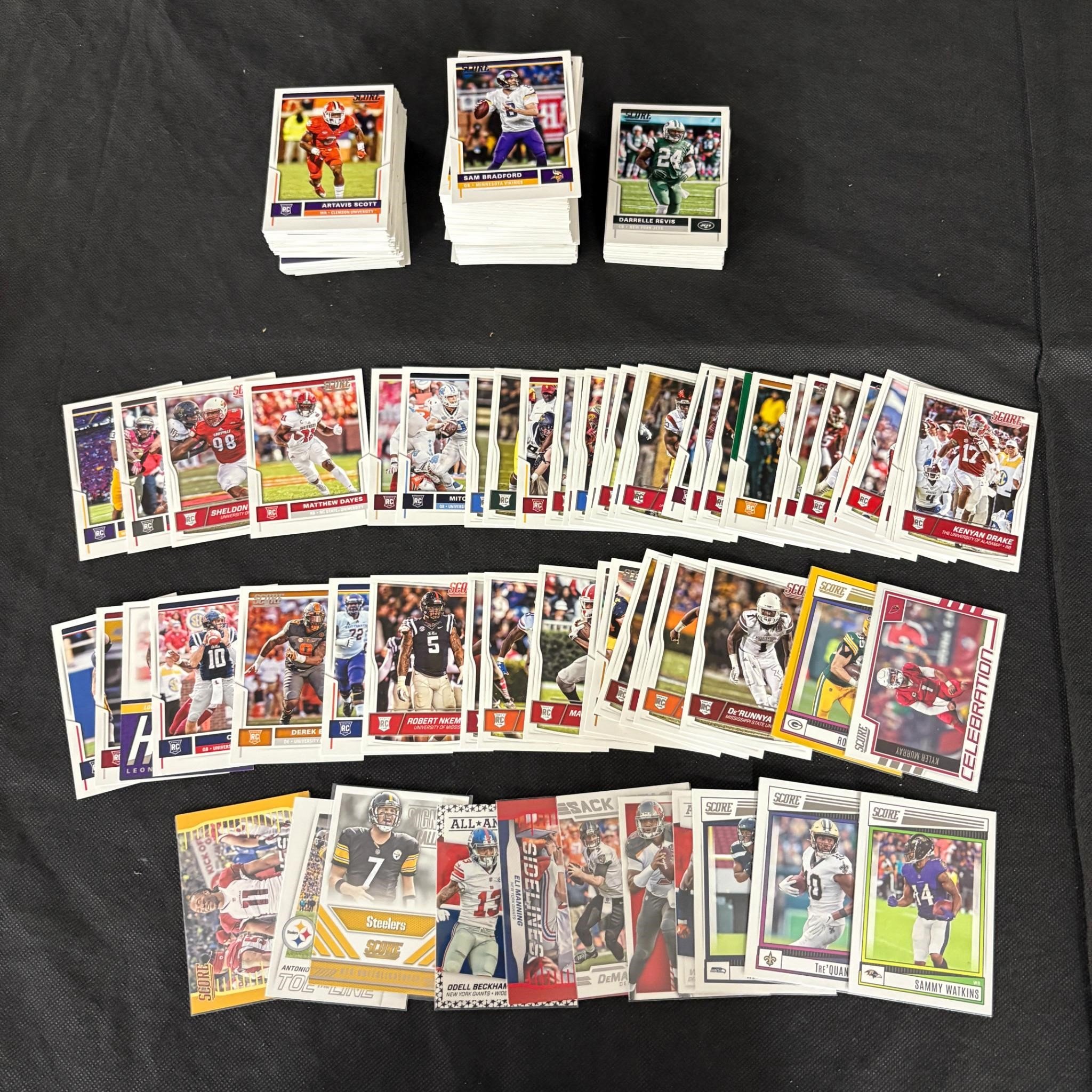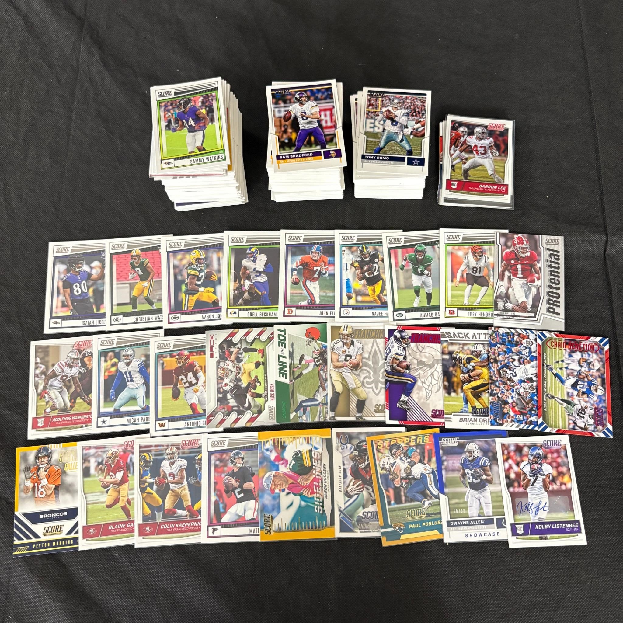 Large lot of Modern Score Football Cards. We ship in-house! We ship internationally. We also offer pick up and we offer a discount for cash payments. Please look at pictures carefully to determine what you believe are the condition of each lot. We offer in person or virtual previews and we can take additional pictures, or answer questions about any lot until about 24 hours prior to auction. So all lots sold as is. By choosing which card to use to register to bid, you authorize the auction host to charge the card on file at the end of the auction to pay for any lots and shipping you won. Happy Bidding and Best of luck!