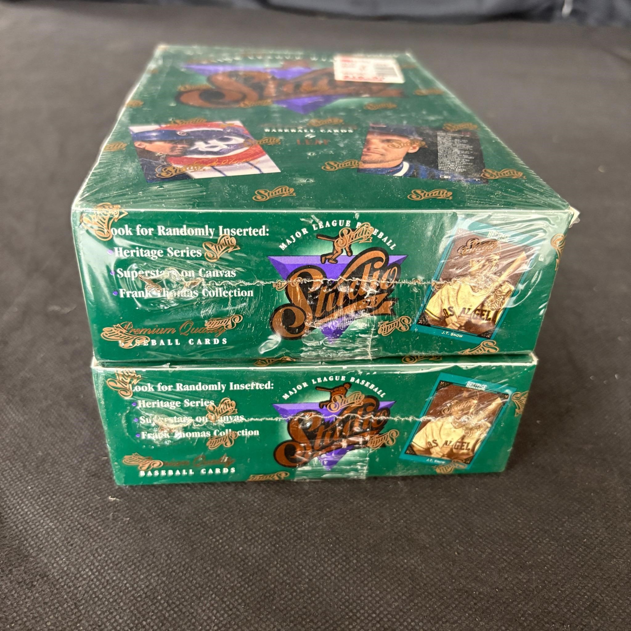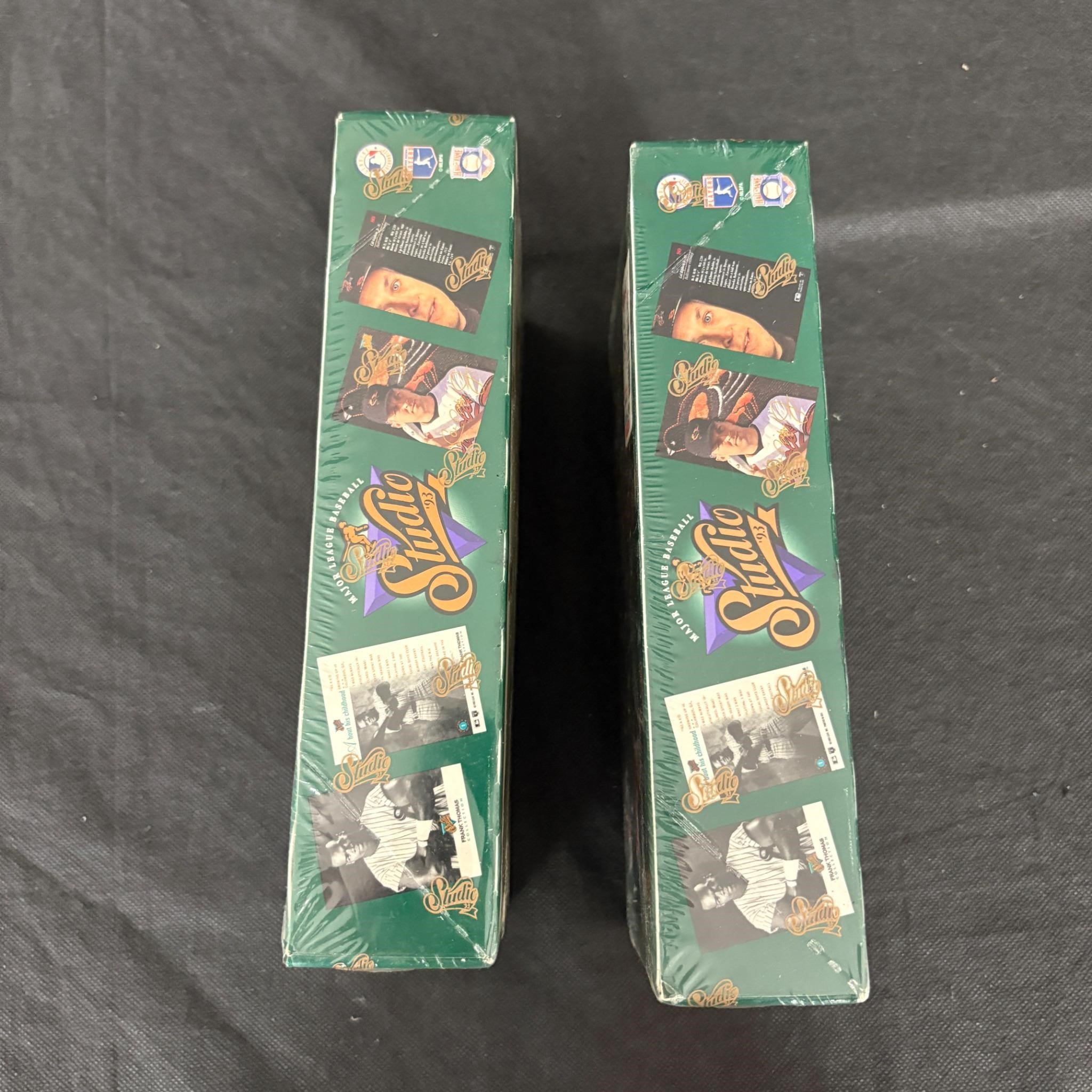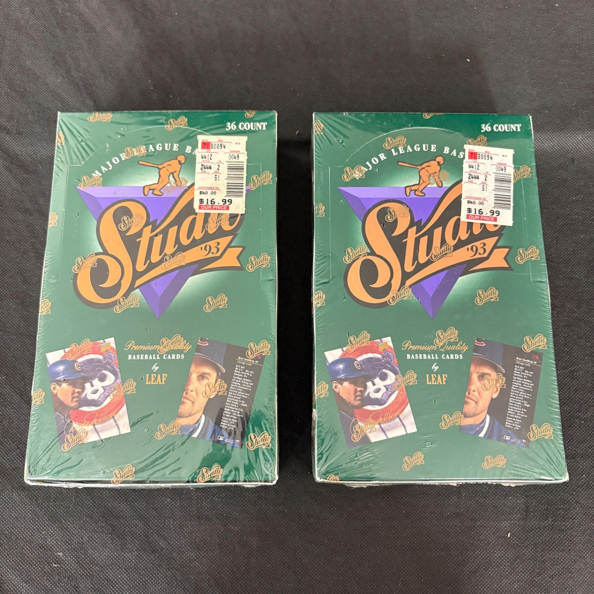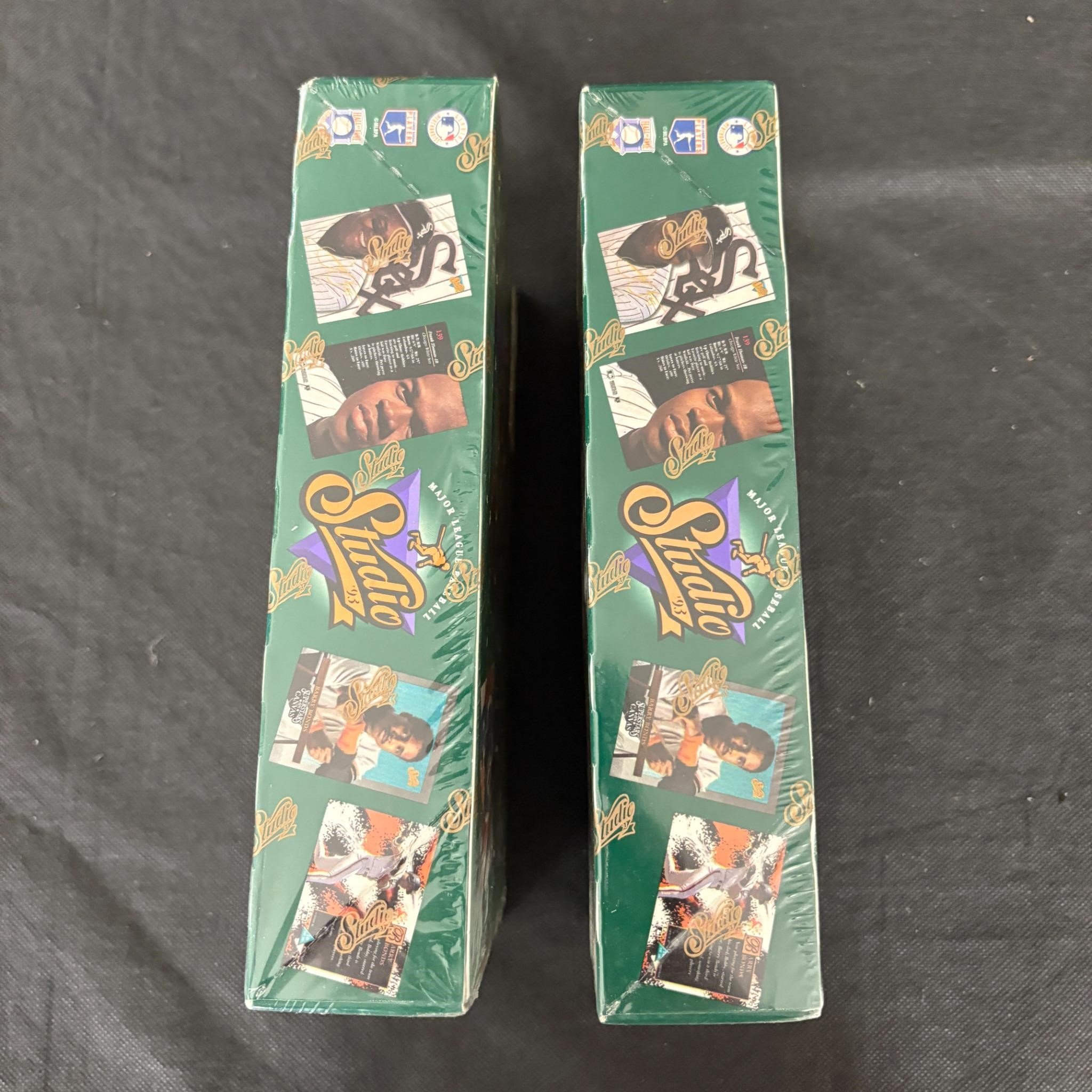 Two Sealed Boxes of 1993 Leaf Studio Baseball Cards. We ship in-house! We ship internationally. We also offer pick up and we offer a discount for cash payments. Please look at pictures carefully to determine what you believe are the condition of each lot. We offer in person or virtual previews and we can take additional pictures, or answer questions about any lot until about 24 hours prior to auction. So all lots sold as is. By choosing which card to use to register to bid, you authorize the auction host to charge the card on file at the end of the auction to pay for any lots and shipping you won. Happy Bidding and Best of luck!