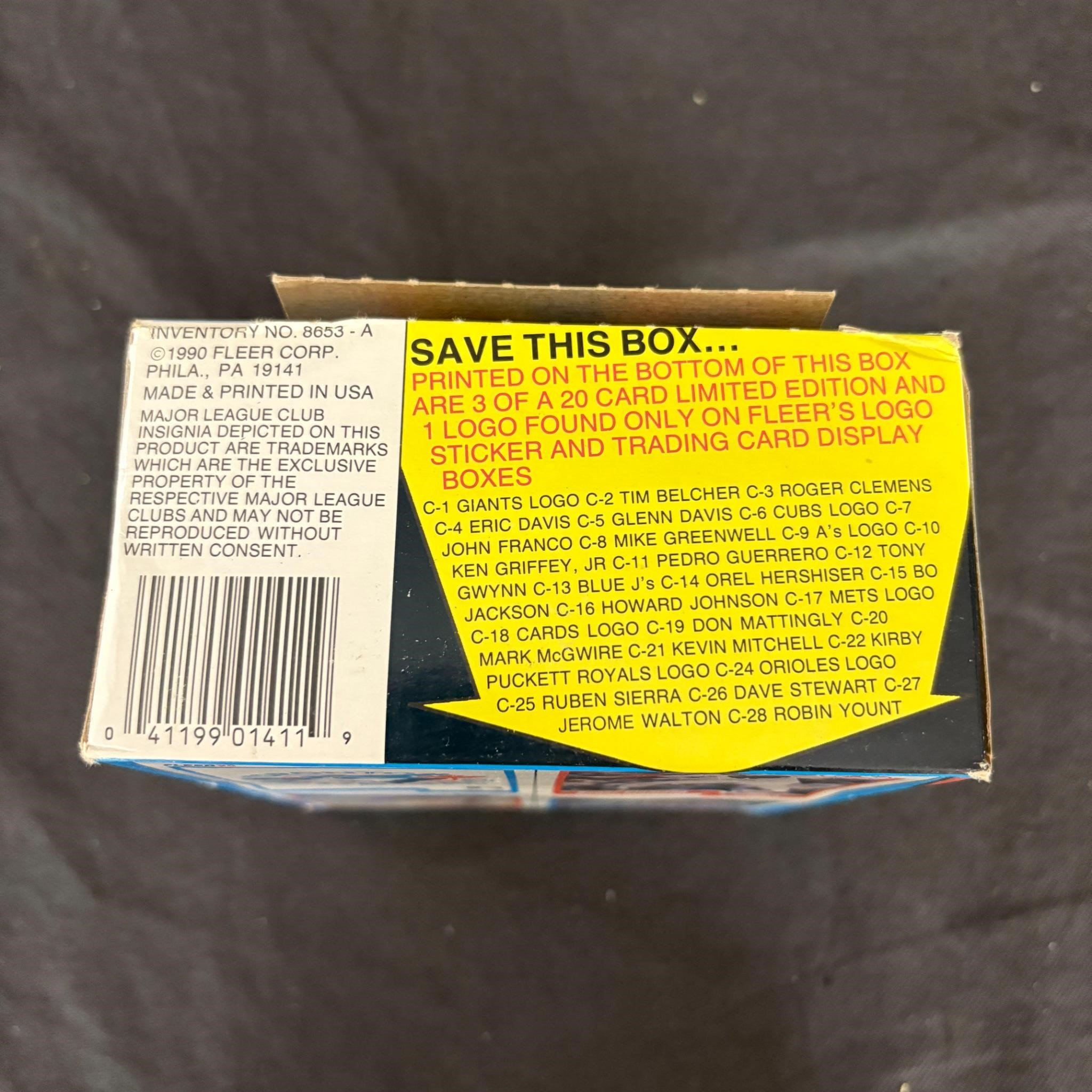 Box of 1990 Fleer Baseball Cards Sealed Packs. We ship in-house! We ship internationally. We also offer pick up and we offer a discount for cash payments. Please look at pictures carefully to determine what you believe are the condition of each lot. We offer in person or virtual previews and we can take additional pictures, or answer questions about any lot until about 24 hours prior to auction. So all lots sold as is. By choosing which card to use to register to bid, you authorize the auction host to charge the card on file at the end of the auction to pay for any lots and shipping you won. Happy Bidding and Best of luck!