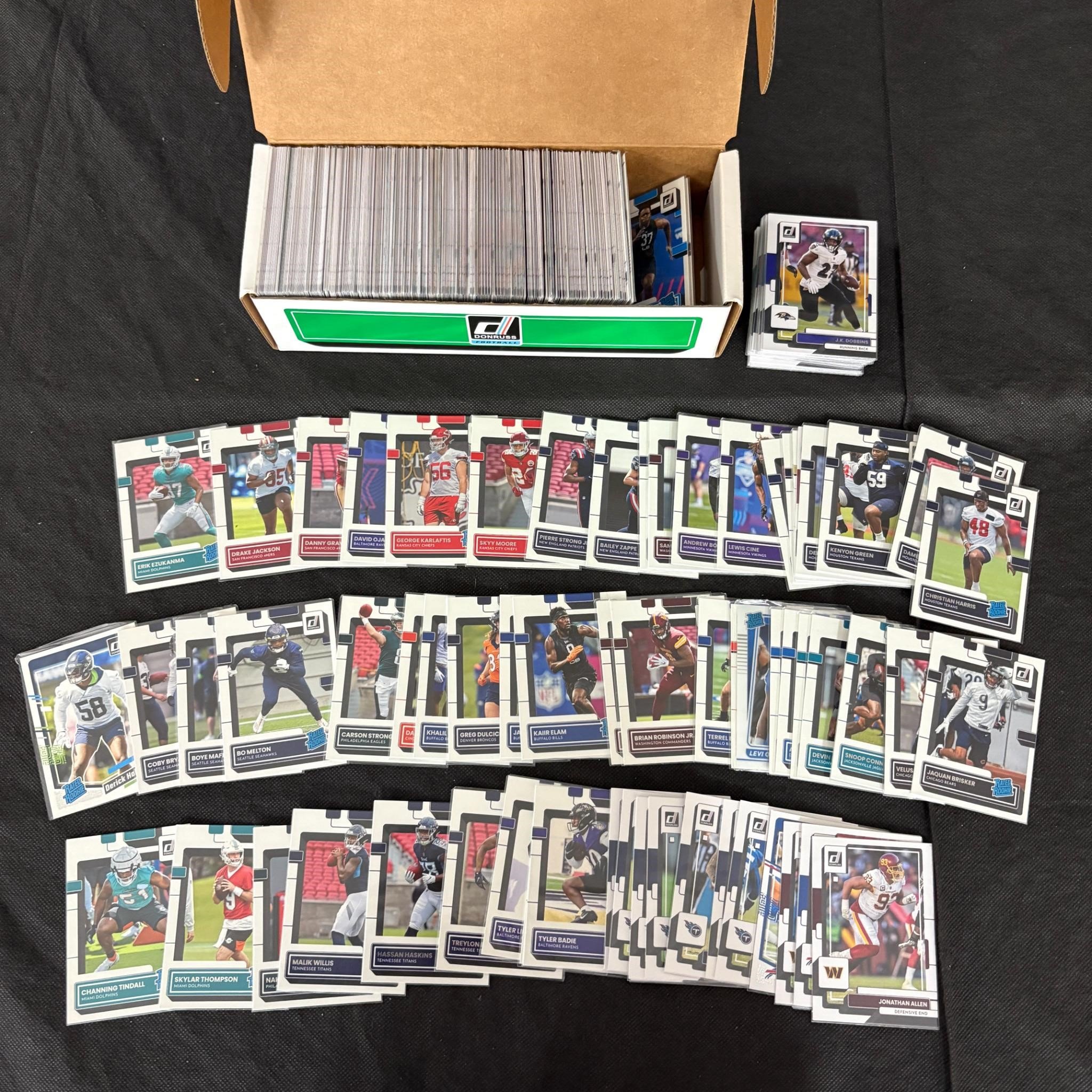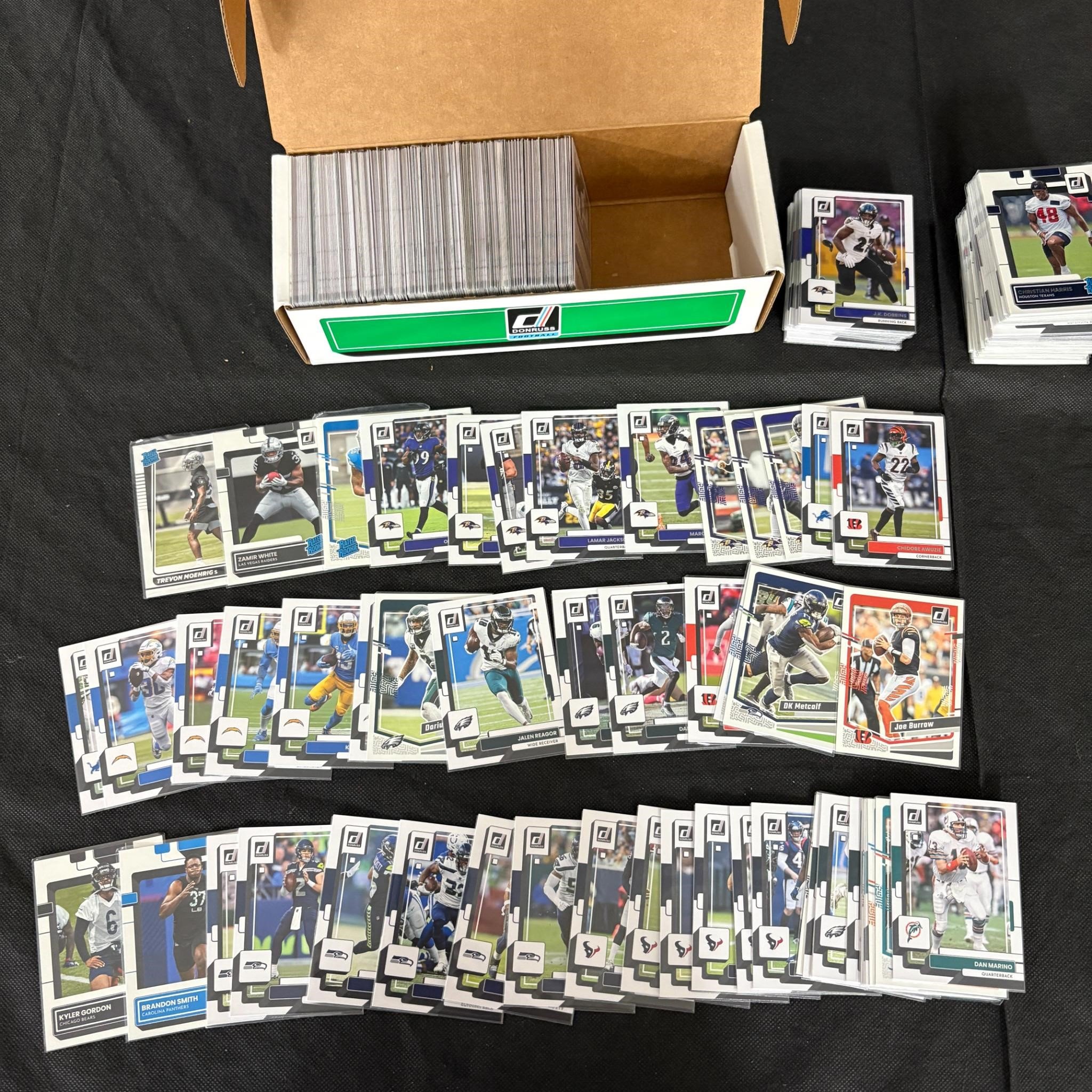 100s of 2020s Panini Donruss Football Cards. Includes Rookies. DK Metcaff, Joe Burrow, Dan Marino +. We ship in-house! We ship internationally. We also offer pick up and we offer a discount for cash payments. Please look at pictures carefully to determine what you believe are the condition of each lot. We offer in person or virtual previews and we can take additional pictures, or answer questions about any lot until about 24 hours prior to auction. So all lots sold as is. By choosing which card to use to register to bid, you authorize the auction host to charge the card on file at the end of the auction to pay for any lots and shipping you won. Happy Bidding and Best of luck!