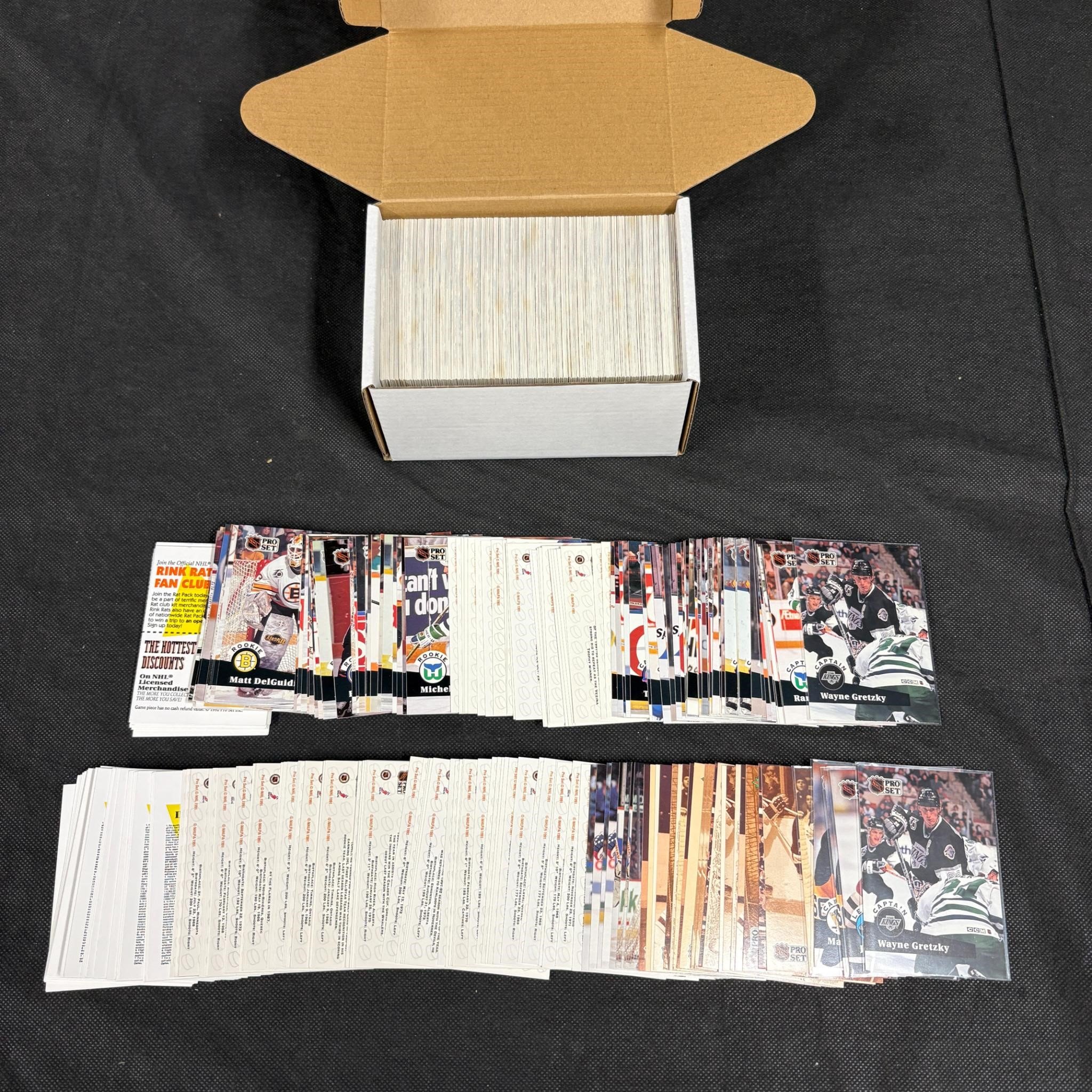 1990s NHL Pro Set Cards Includes Wayne Gretzky Cards. We ship in-house! We ship internationally. We also offer pick up and we offer a discount for cash payments. Please look at pictures carefully to determine what you believe are the condition of each lot. We offer in person or virtual previews and we can take additional pictures, or answer questions about any lot until about 24 hours prior to auction. So all lots sold as is. By choosing which card to use to register to bid, you authorize the auction host to charge the card on file at the end of the auction to pay for any lots and shipping you won. Happy Bidding and Best of luck!