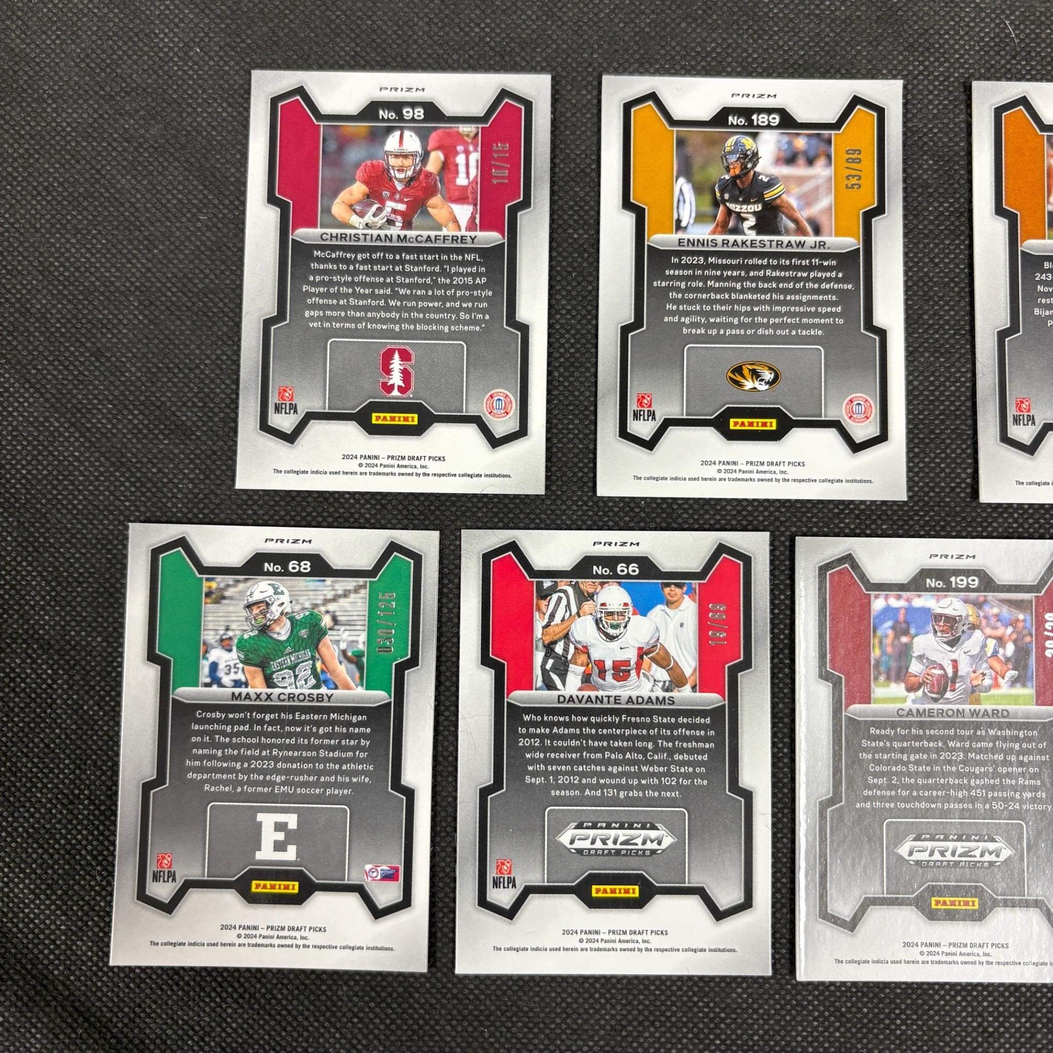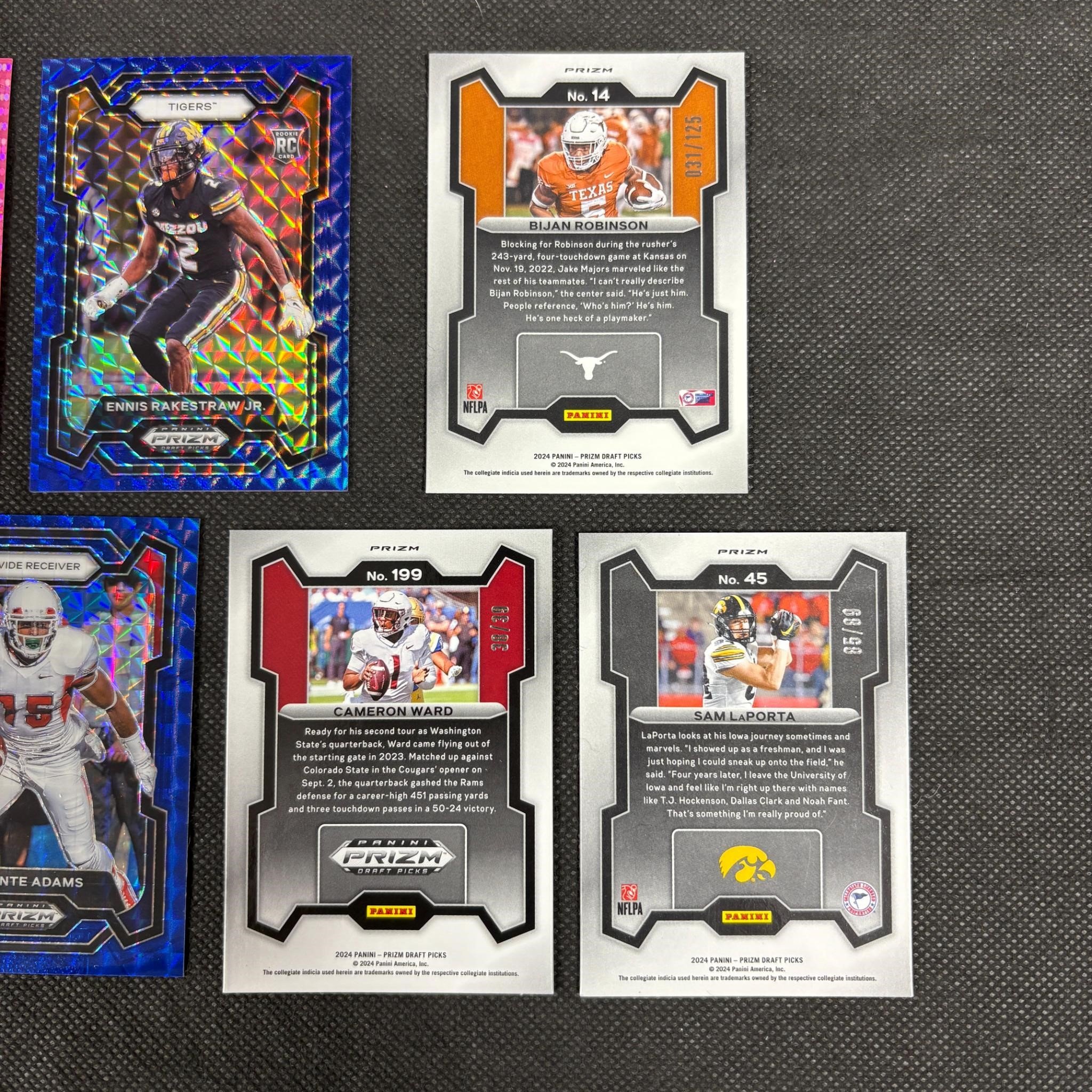#ed Football Cards 2024 Panini Prizm Sam La Porta #/89, Bijan Robinson Draft Pick #/125, Cameron Ward Rated Prospect #/39, Davante Adams #/89, Christian McCaffery #/15 ++ We ship in-house! We ship internationally. We also offer pick up and we offer a discount for cash payments. Please look at pictures carefully to determine what you believe are the condition of each lot. We offer in person or virtual previews and we can take additional pictures, or answer questions about any lot until about 24 hours prior to auction. So all lots sold as is. By choosing which card to use to register to bid, you authorize the auction host to charge the card on file at the end of the auction to pay for any lots and shipping you won. Happy Bidding and Best of luck!