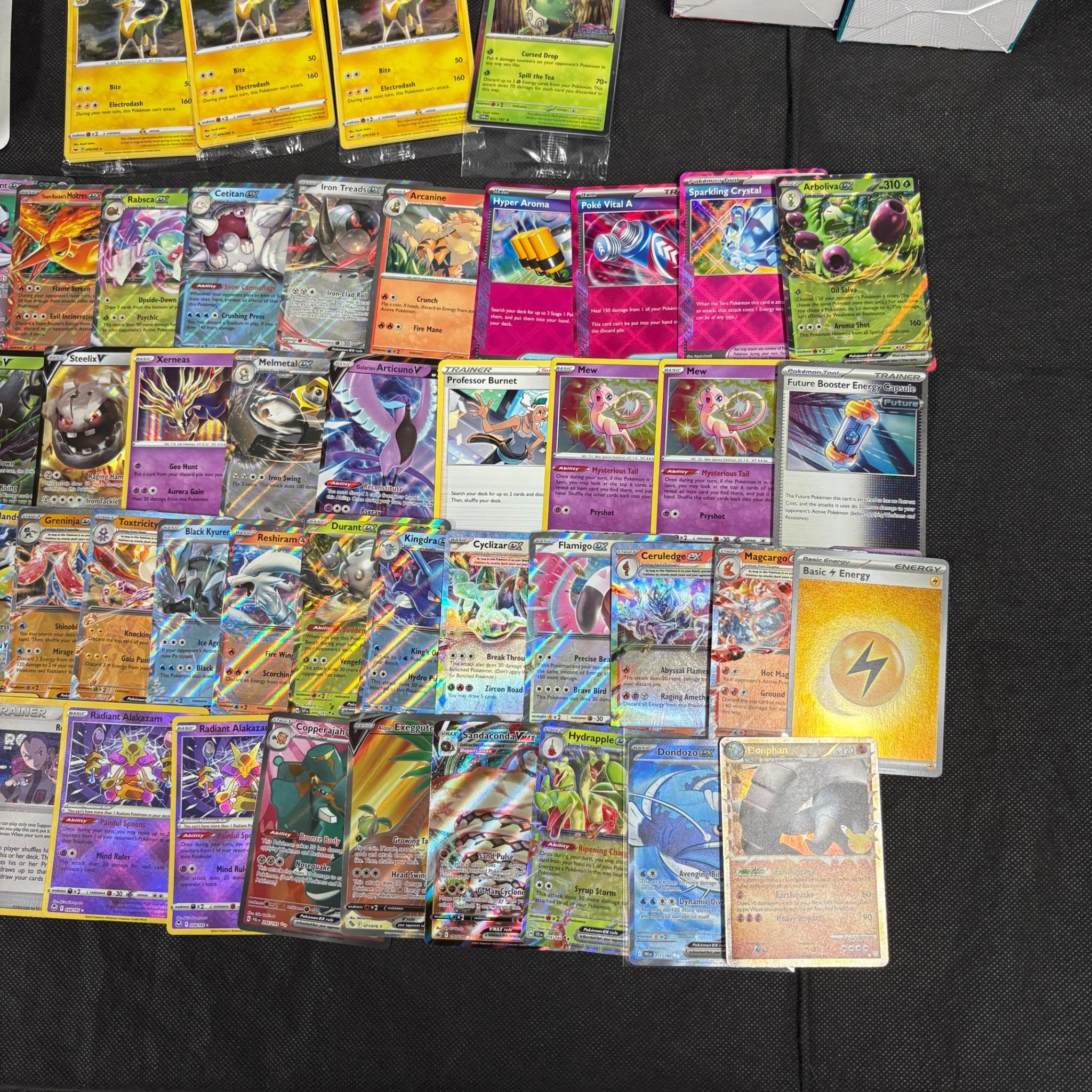 100s of modern pokemon cards. Includes hits and promos. We ship in-house! We ship internationally. We also offer pick up and we offer a discount for cash payments. Please look at pictures carefully to determine what you believe are the condition of each lot. We offer in person or virtual previews and we can take additional pictures, or answer questions about any lot until about 24 hours prior to auction. So all lots sold as is. By choosing which card to use to register to bid, you authorize the auction host to charge the card on file at the end of the auction to pay for any lots and shipping you won. Happy Bidding and Best of luck!