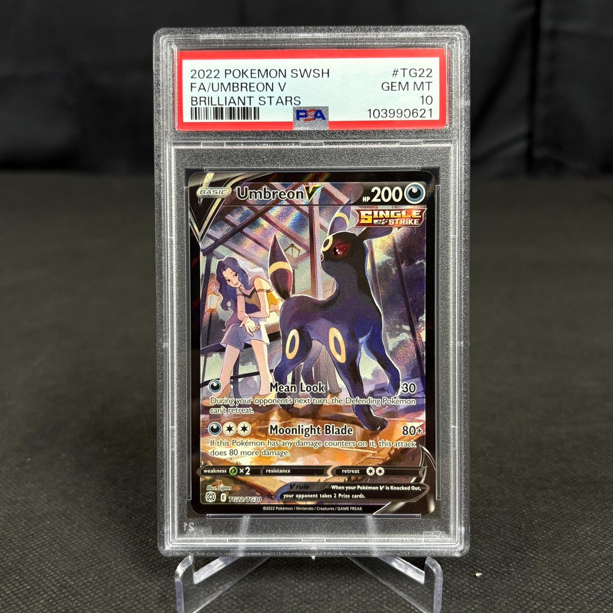 PSA 10 Umbreon V #TG22 Brilliant Stars Pokemon Card. We ship in-house! We ship internationally. We also offer pick up and we offer a discount for cash payments. Please look at pictures carefully to determine what you believe are the condition of each lot. We offer in person or virtual previews and we can take additional pictures, or answer questions about any lot until about 24 hours prior to auction. So all lots sold as is. By choosing which card to use to register to bid, you authorize the auction host to charge the card on file at the end of the auction to pay for any lots and shipping you won. Happy Bidding and Best of luck!
