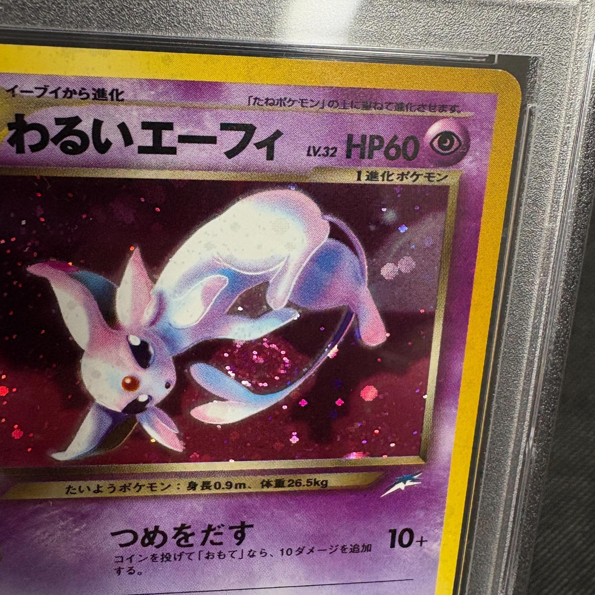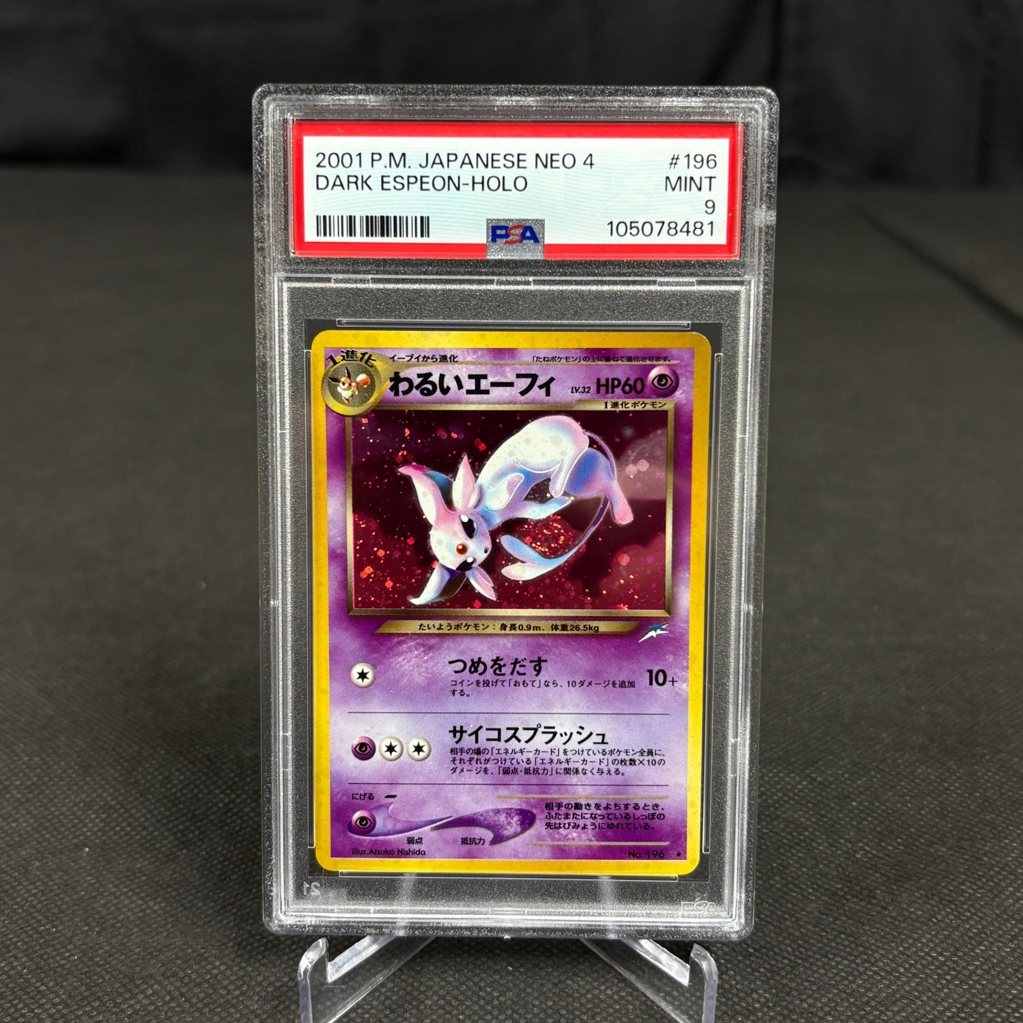 PSA 9 Dark Espeon #196 Vintage Japanese Holo Pokemon Card. Swirl. We ship in-house! We ship internationally. We also offer pick up and we offer a discount for cash payments. Please look at pictures carefully to determine what you believe are the condition of each lot. We offer in person or virtual previews and we can take additional pictures, or answer questions about any lot until about 24 hours prior to auction. So all lots sold as is. By choosing which card to use to register to bid, you authorize the auction host to charge the card on file at the end of the auction to pay for any lots and shipping you won. Happy Bidding and Best of luck!
