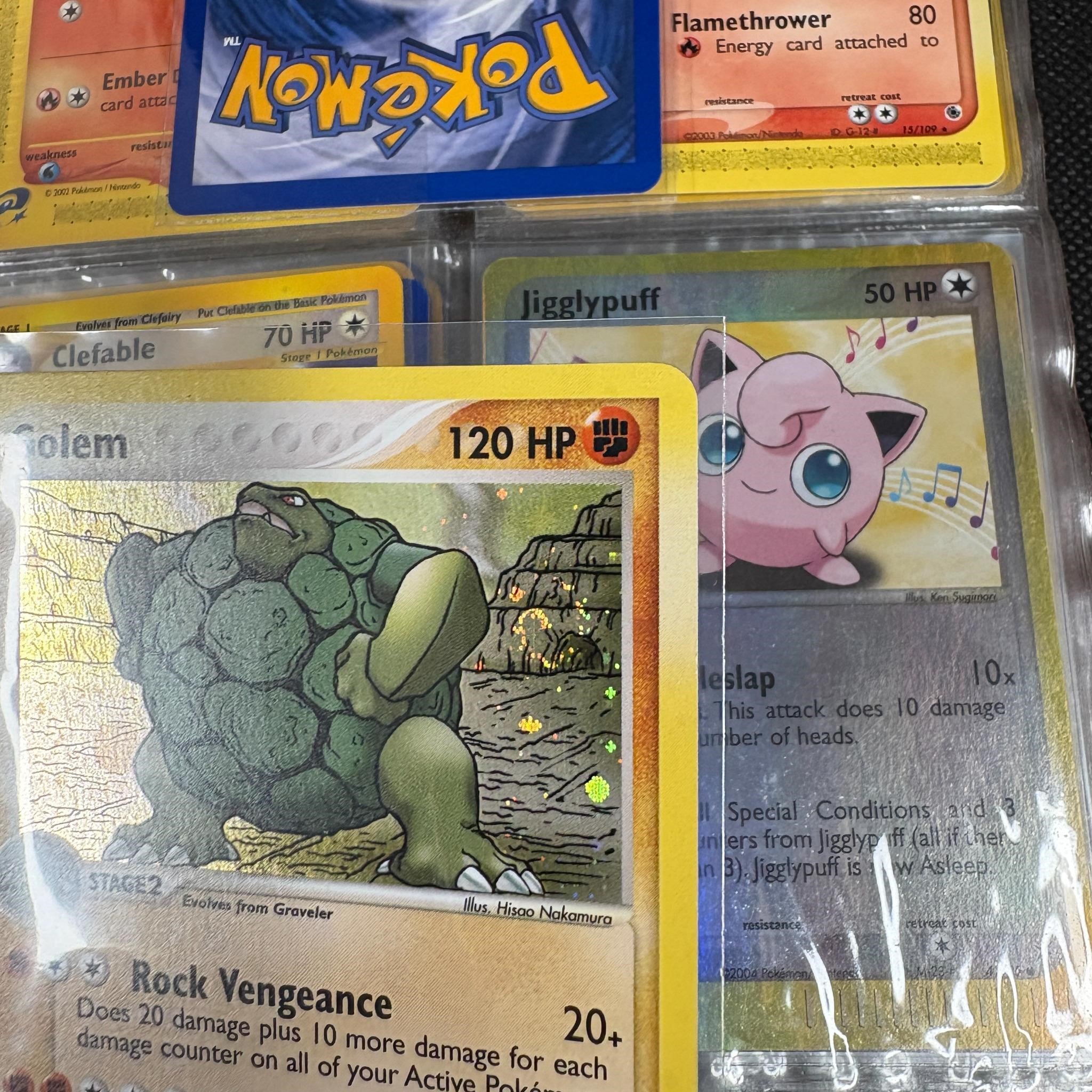 Vintage Pokemon Card Binder, with E Reader Pokemon Cards. Includes Holo Golem with Swirl. We ship in-house! We ship internationally. We also offer pick up and we offer a discount for cash payments. Please look at pictures carefully to determine what you believe are the condition of each lot. We offer in person or virtual previews and we can take additional pictures, or answer questions about any lot until about 24 hours prior to auction. So all lots sold as is. By choosing which card to use to register to bid, you authorize the auction host to charge the card on file at the end of the auction to pay for any lots and shipping you won. Happy Bidding and Best of luck!