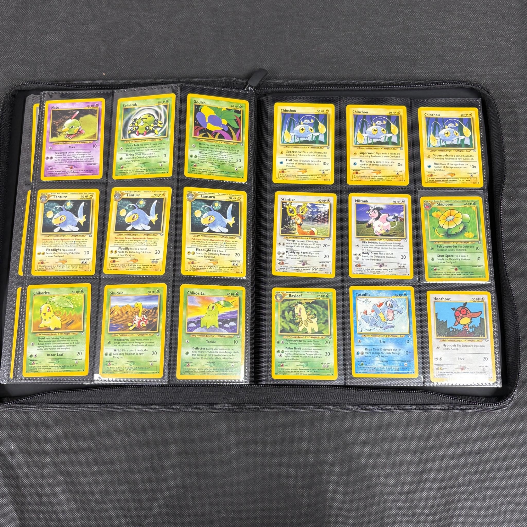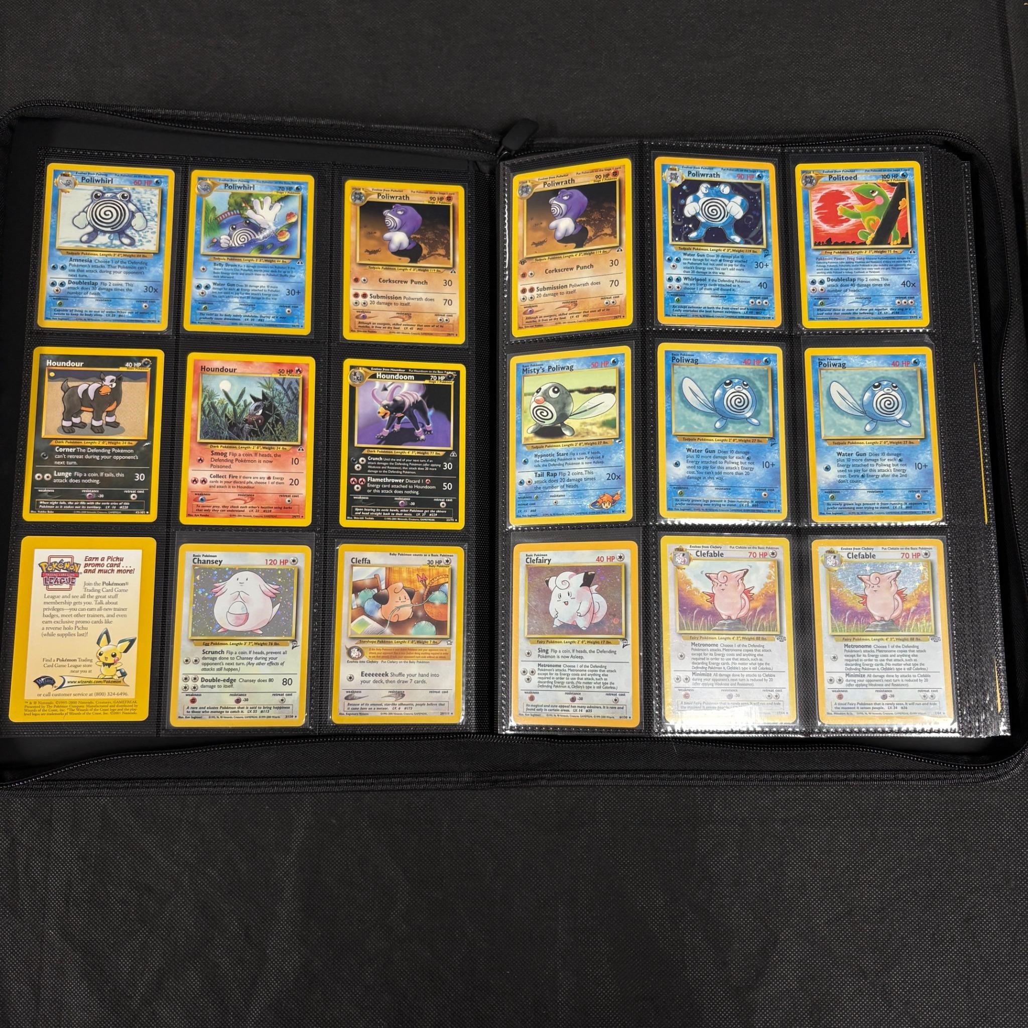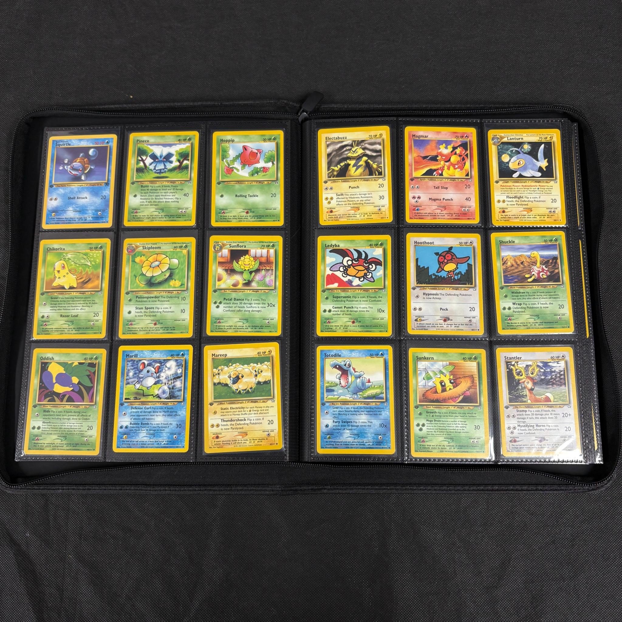 Binder Filled with vintage Pokemon Card collection. Vintage pokemon cards from base set – neo series. 100s of pokemon cards. Includes Holos and 1st Edition Card. We ship in-house! We ship internationally. We also offer pick up and we offer a discount for cash payments. Please look at pictures carefully to determine what you believe are the condition of each lot. We offer in person or virtual previews and we can take additional pictures, or answer questions about any lot until about 24 hours prior to auction. So all lots sold as is. By choosing which card to use to register to bid, you authorize the auction host to charge the card on file at the end of the auction to pay for any lots and shipping you won. Happy Bidding and Best of luck!