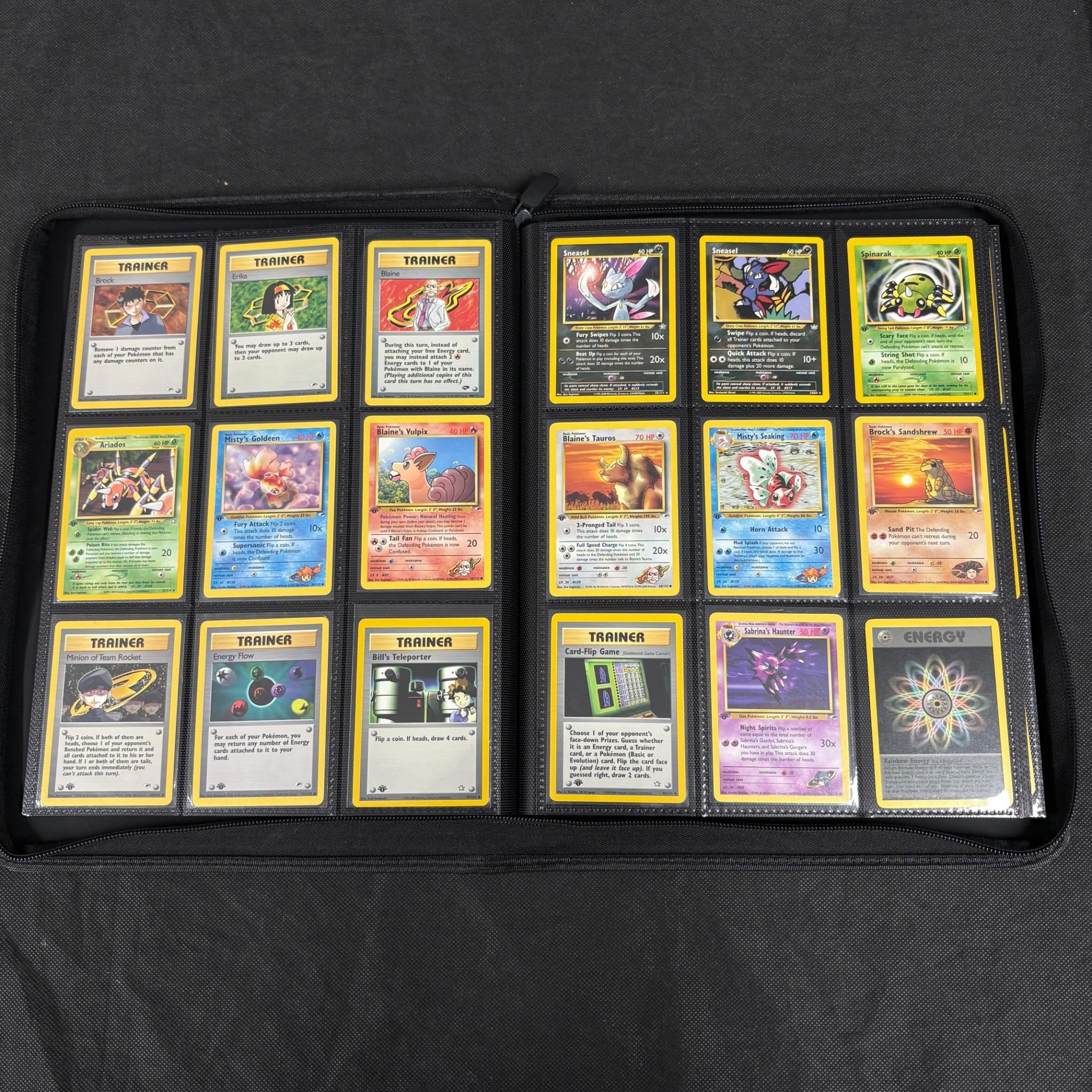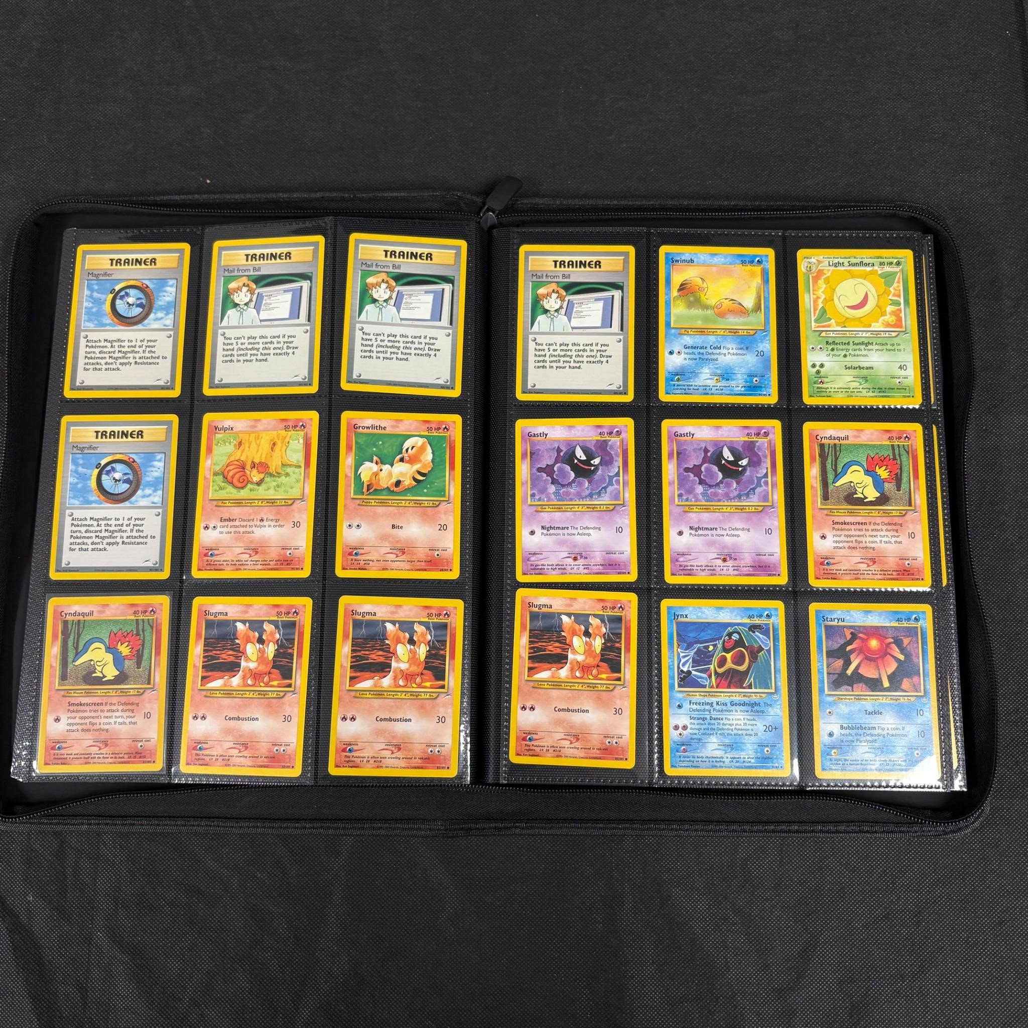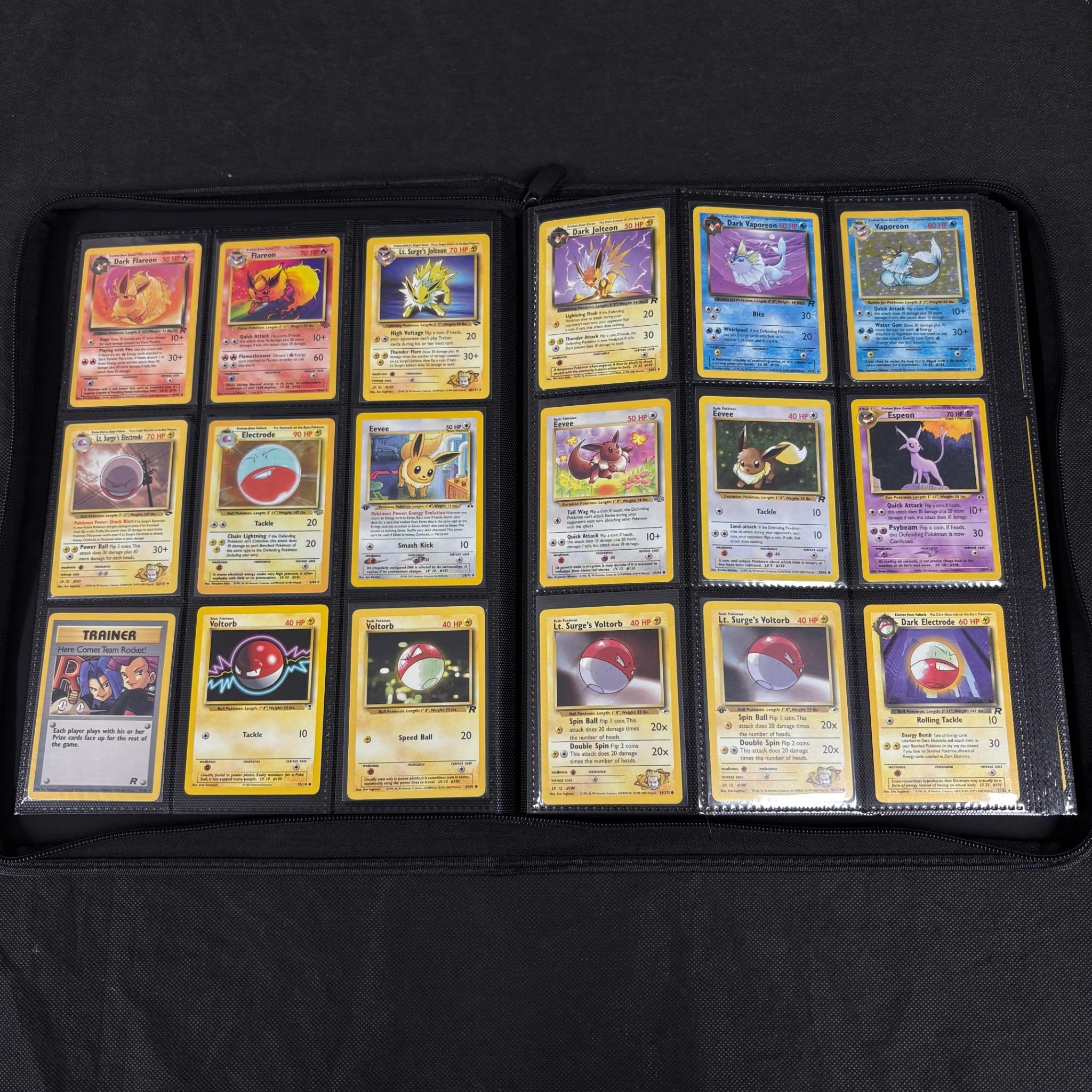 Binder Filled with vintage Pokemon Card collection. Vintage pokemon cards from base set – neo series. 100s of pokemon cards. Includes Holos and 1st Edition Card. We ship in-house! We ship internationally. We also offer pick up and we offer a discount for cash payments. Please look at pictures carefully to determine what you believe are the condition of each lot. We offer in person or virtual previews and we can take additional pictures, or answer questions about any lot until about 24 hours prior to auction. So all lots sold as is. By choosing which card to use to register to bid, you authorize the auction host to charge the card on file at the end of the auction to pay for any lots and shipping you won. Happy Bidding and Best of luck!
