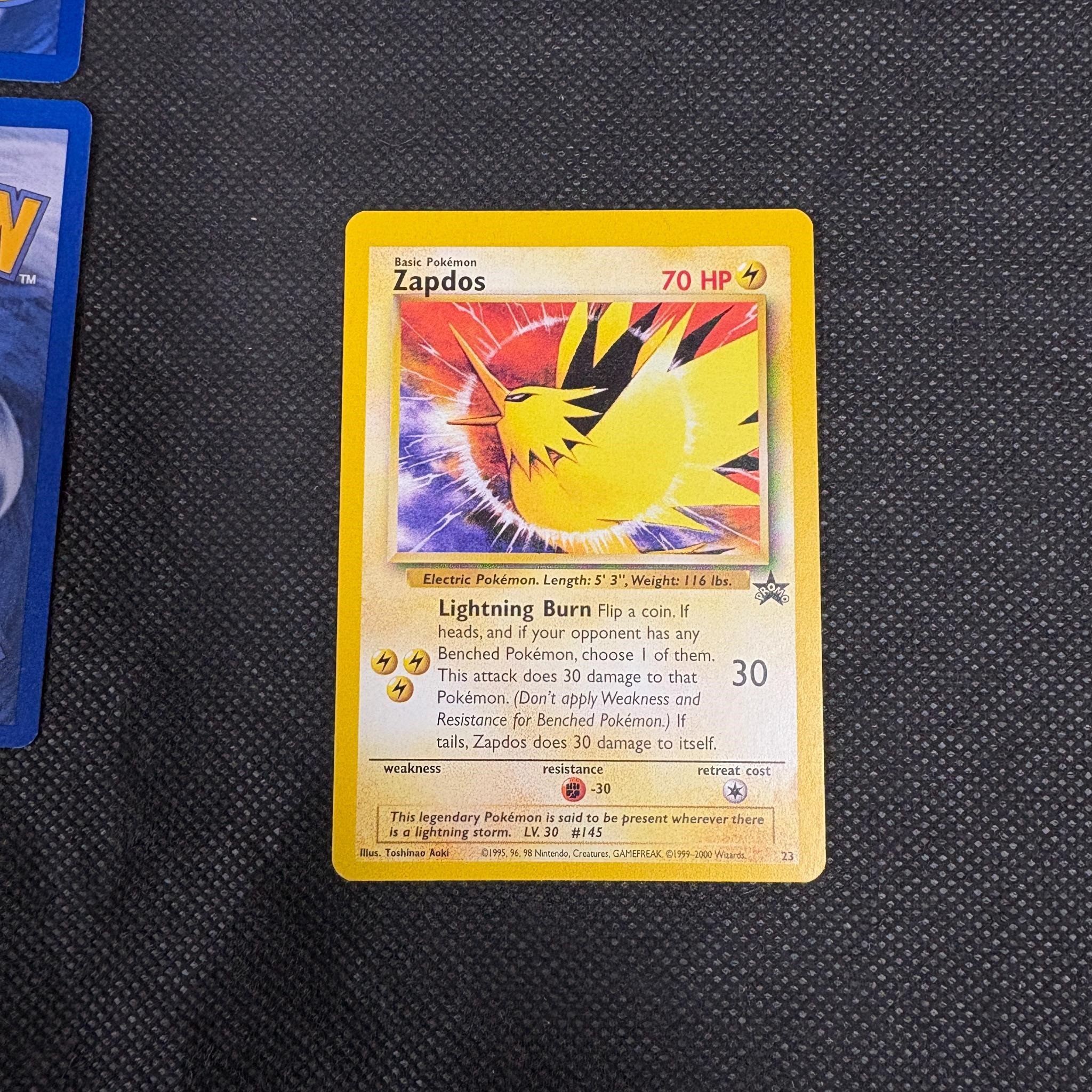 Vintage Promo Pokemon Cards WOTC Black Star. Zapdos Promo is significantly Off Cetner. We ship in-house! We ship internationally. We also offer pick up and we offer a discount for cash payments. Please look at pictures carefully to determine what you believe are the condition of each lot. We offer in person or virtual previews and we can take additional pictures, or answer questions about any lot until about 24 hours prior to auction. So all lots sold as is. By choosing which card to use to register to bid, you authorize the auction host to charge the card on file at the end of the auction to pay for any lots and shipping you won. Happy Bidding and Best of luck!