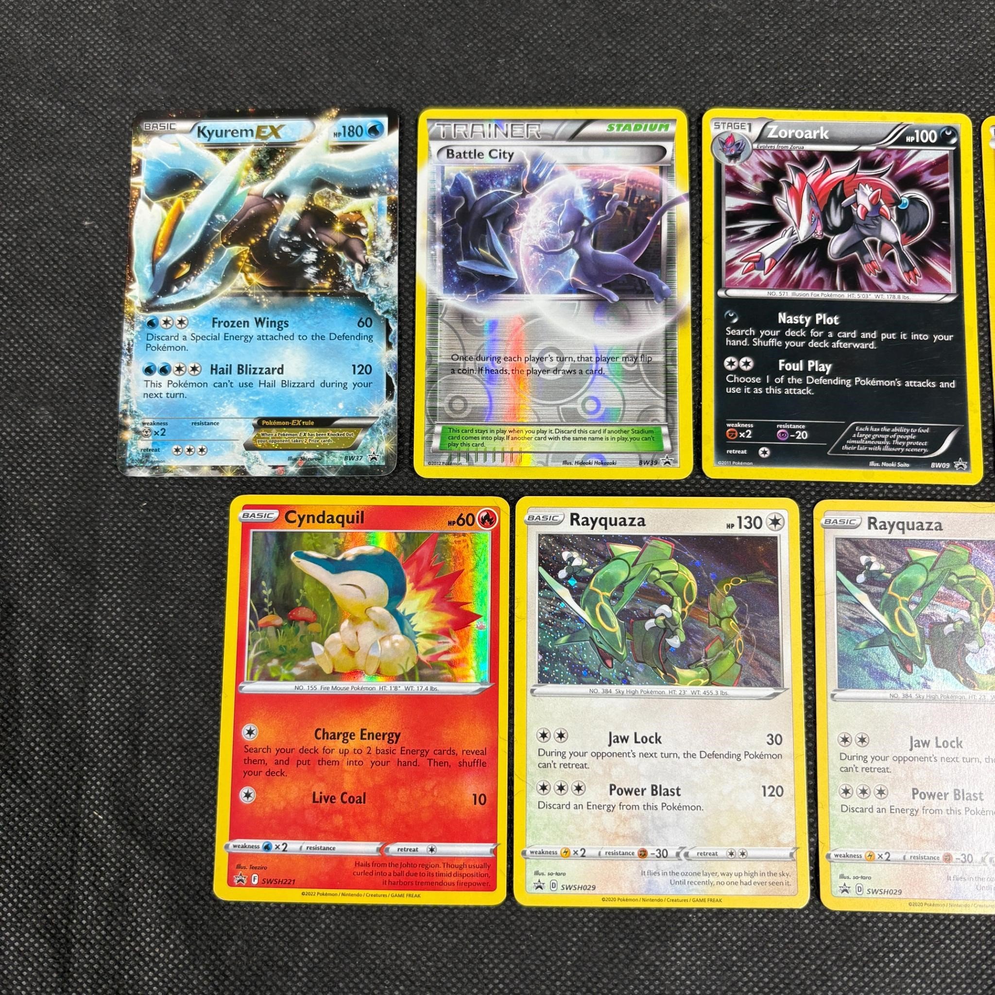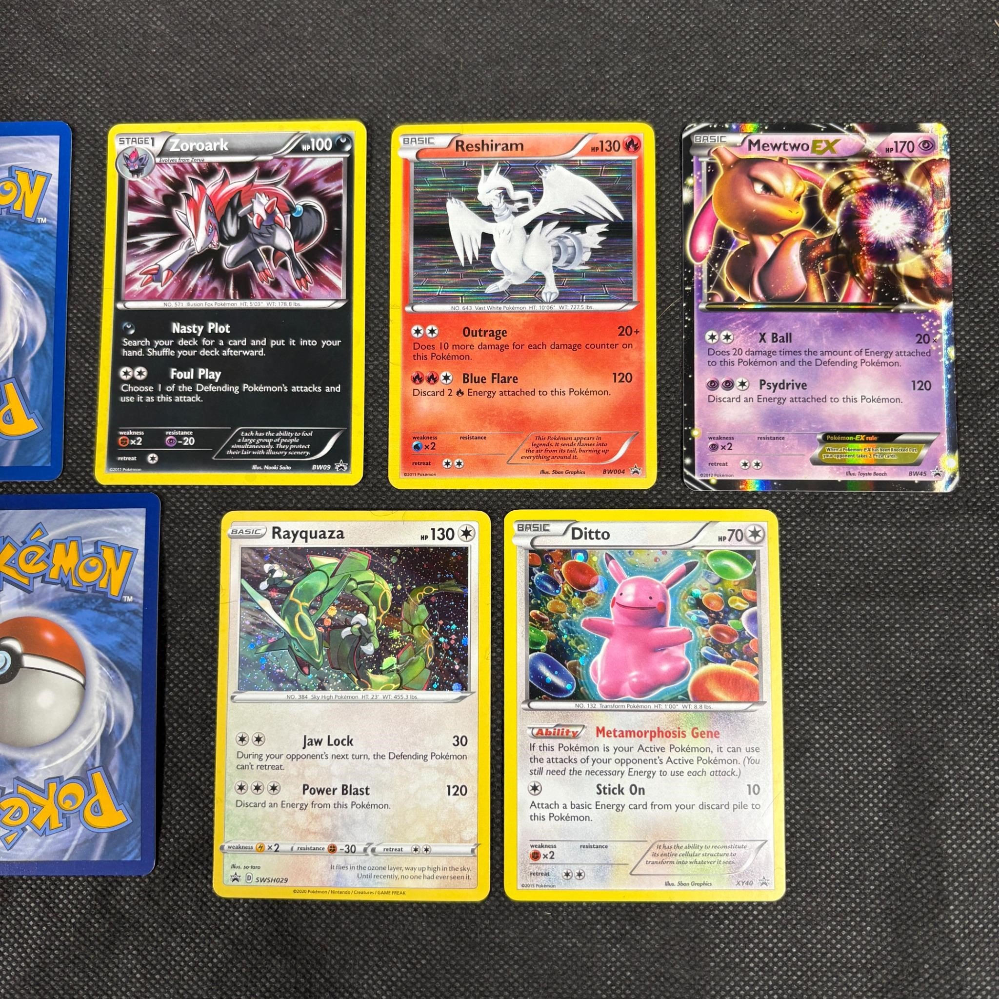Lot of XY and Black and White Era Promo Pokemon Cards. Ditto Holo, Rayquaza, Mewtwo EX + We ship in-house! We ship internationally. We also offer pick up and we offer a discount for cash payments. Please look at pictures carefully to determine what you believe are the condition of each lot. We offer in person or virtual previews and we can take additional pictures, or answer questions about any lot until about 24 hours prior to auction. So all lots sold as is. By choosing which card to use to register to bid, you authorize the auction host to charge the card on file at the end of the auction to pay for any lots and shipping you won. Happy Bidding and Best of luck!