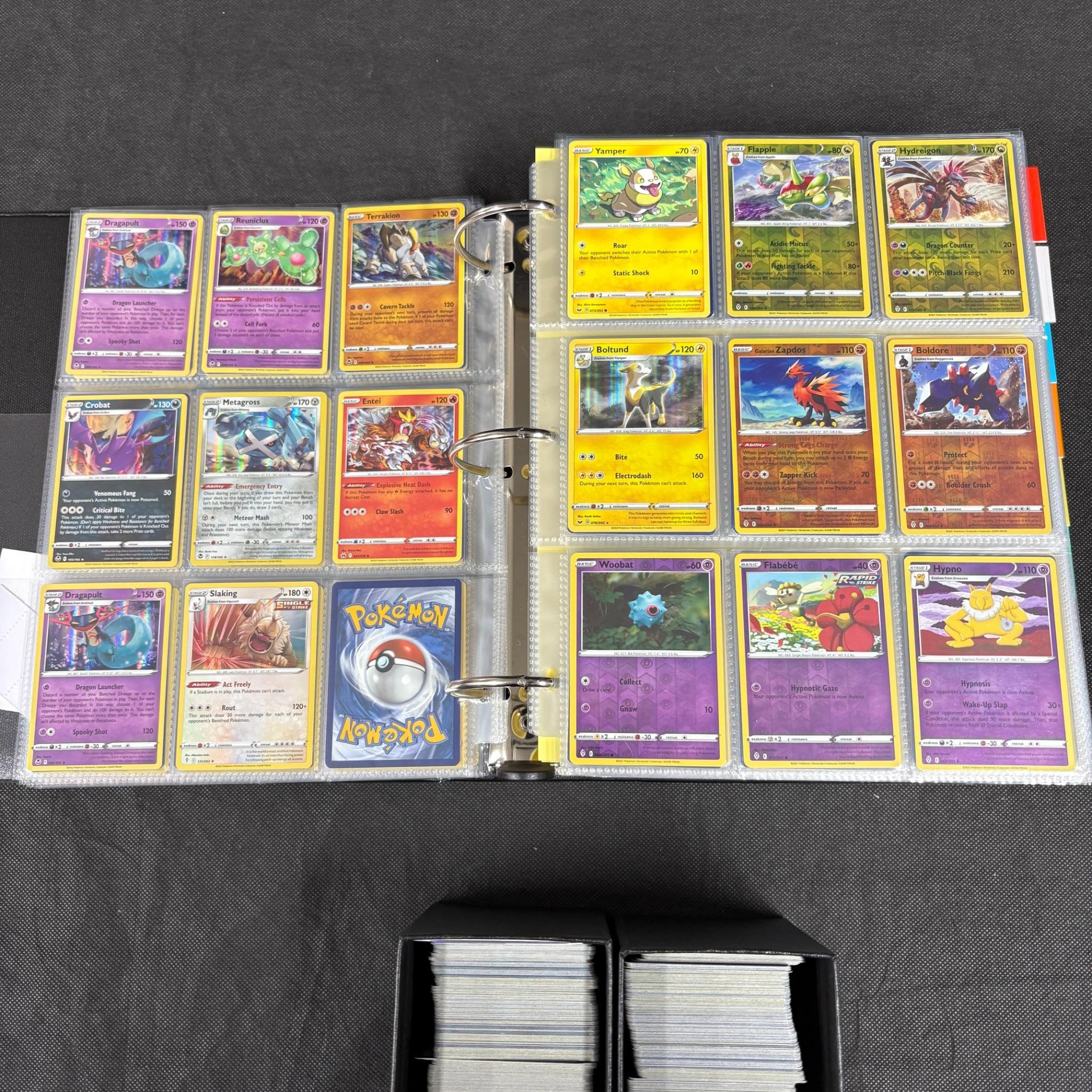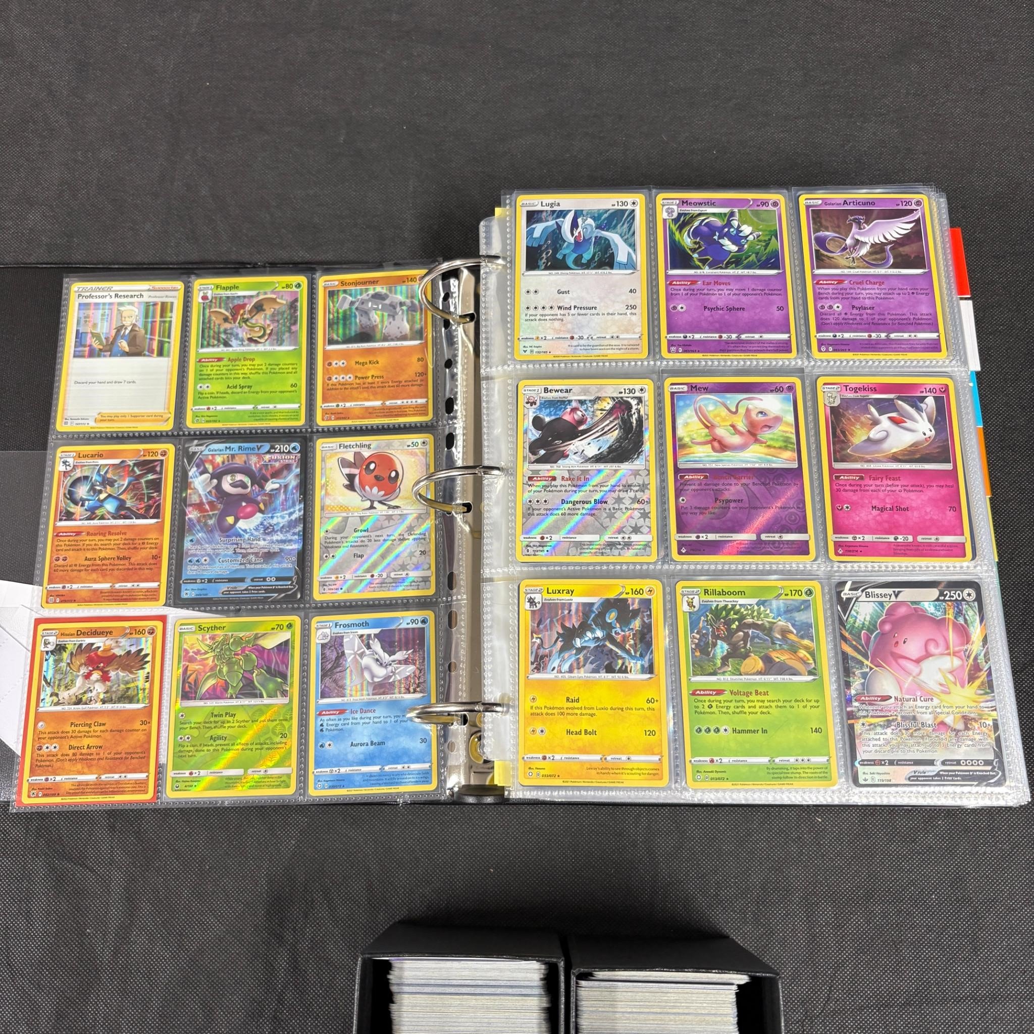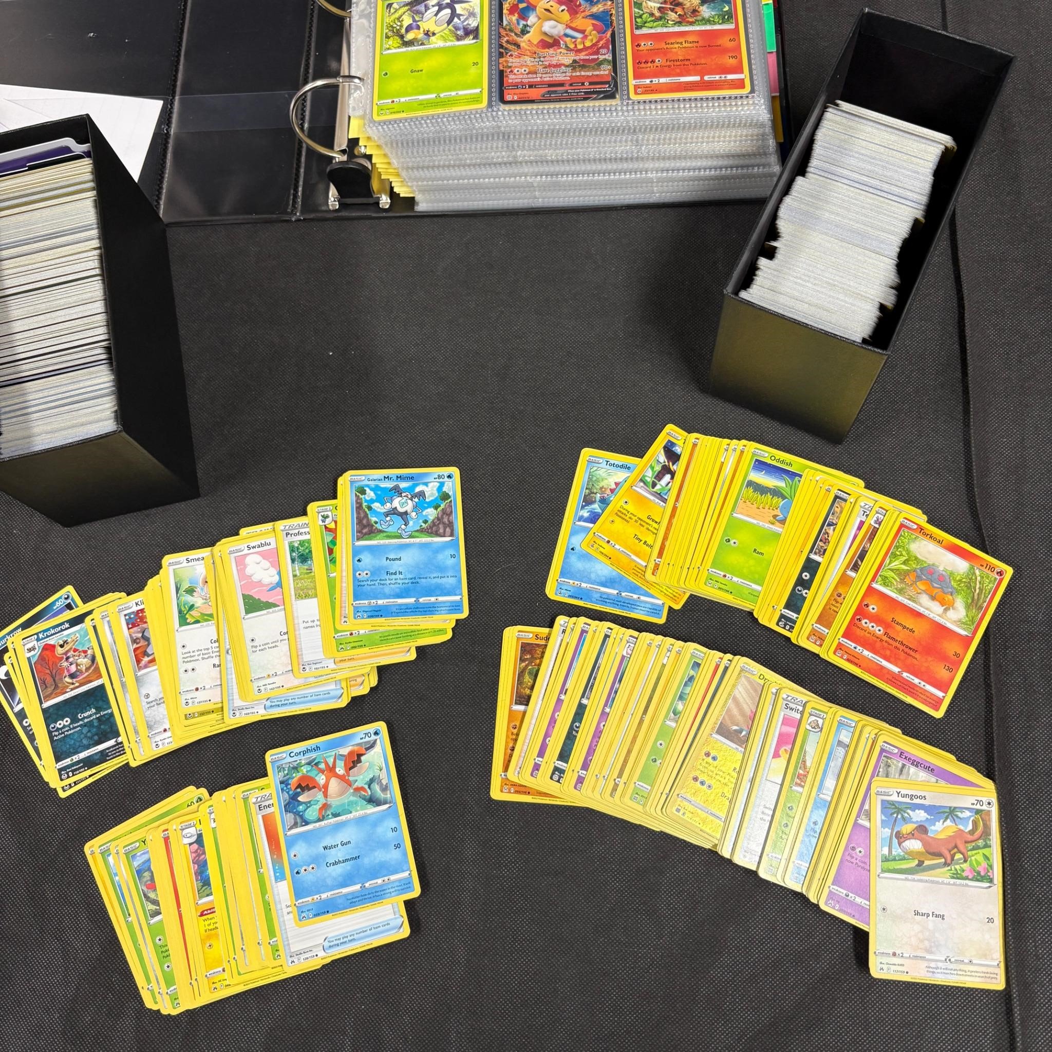 Huge modern pokemon card lot. Binder filled with 100s of modern pokemon cards mostly Sun and Moon = SWSH Era. And ETBs filled with bulk. Includes Holos, Rev Holos. We ship in-house! We ship internationally. We also offer pick up and we offer a discount for cash payments. Please look at pictures carefully to determine what you believe are the condition of each lot. We offer in person or virtual previews and we can take additional pictures, or answer questions about any lot until about 24 hours prior to auction. So all lots sold as is. By choosing which card to use to register to bid, you authorize the auction host to charge the card on file at the end of the auction to pay for any lots and shipping you won. Happy Bidding and Best of luck!