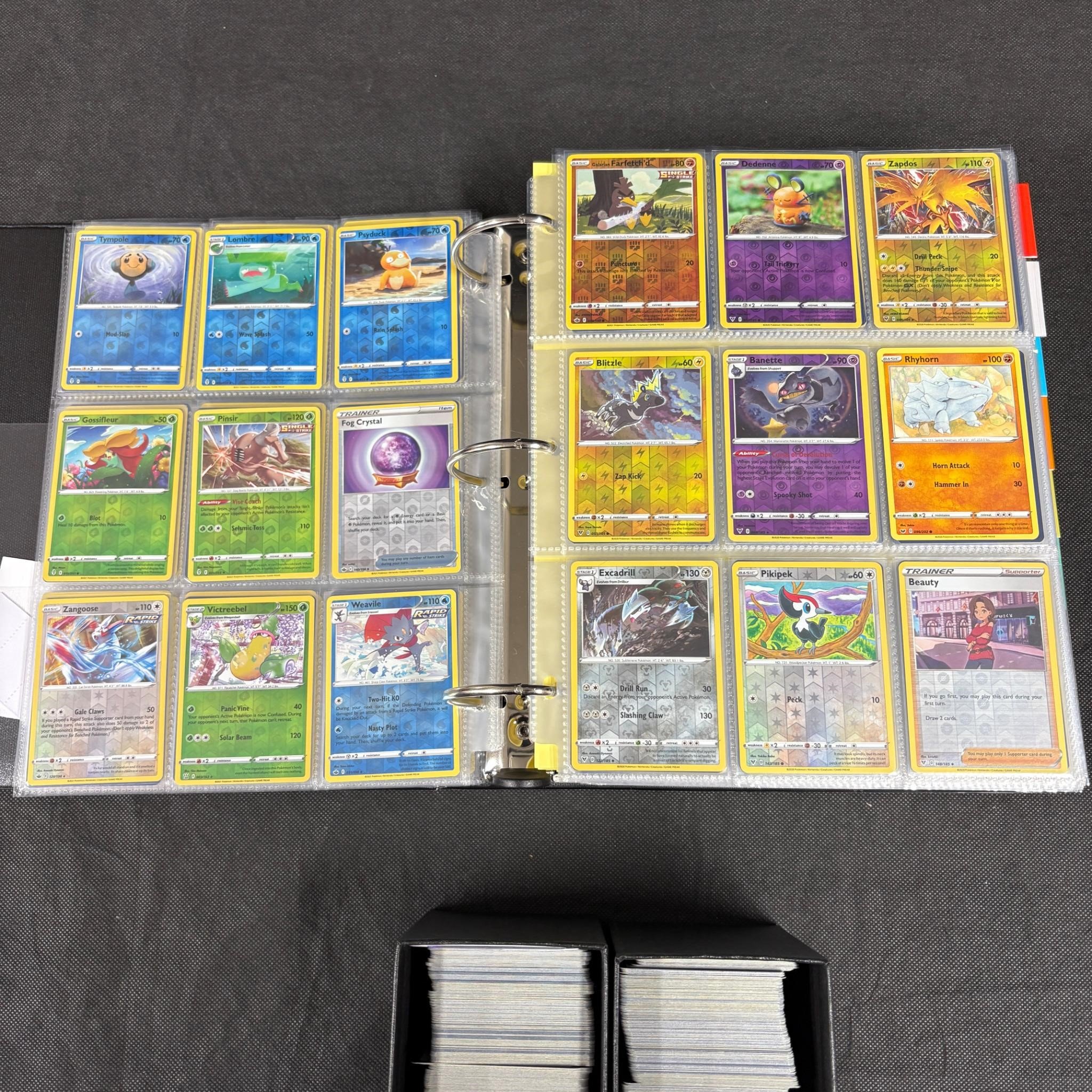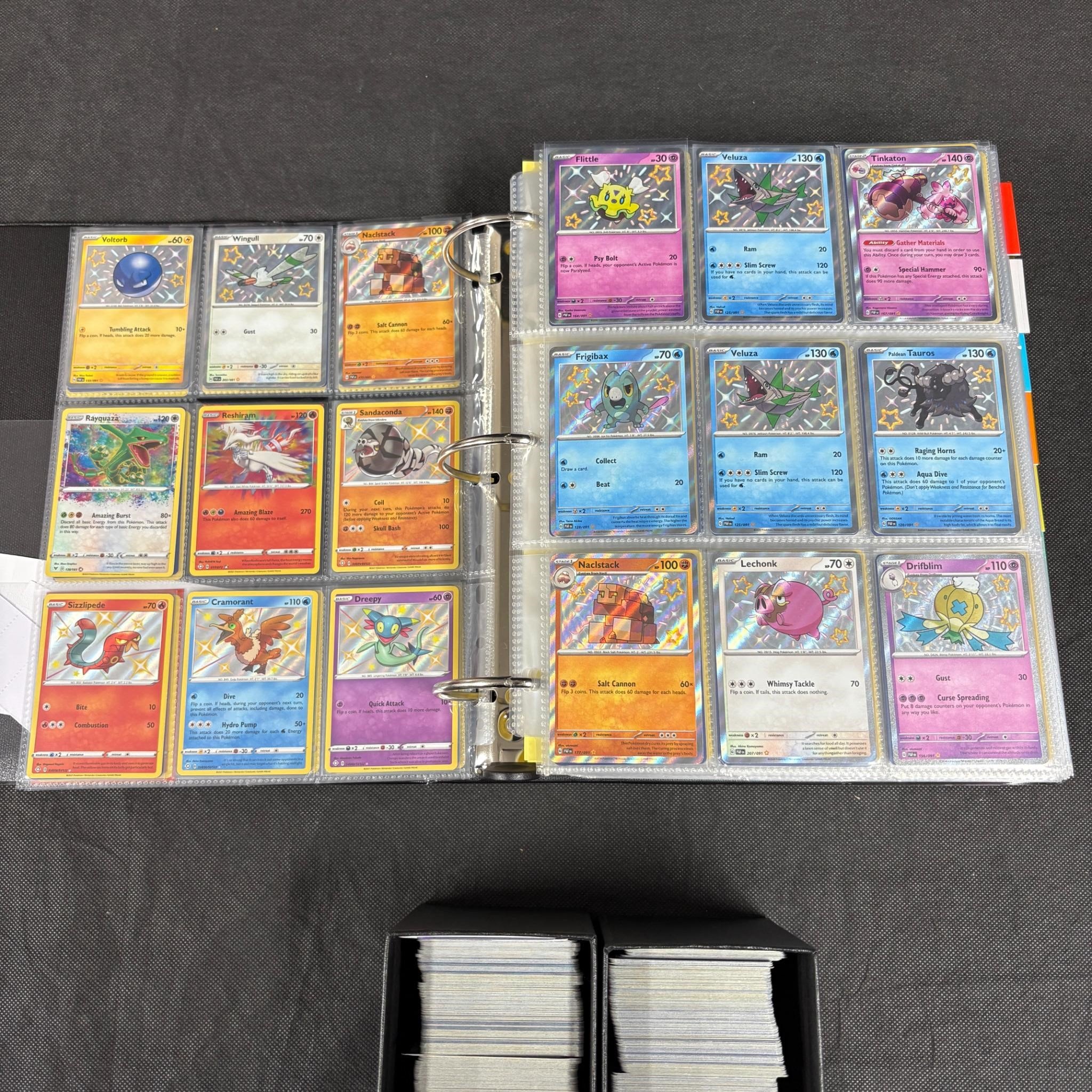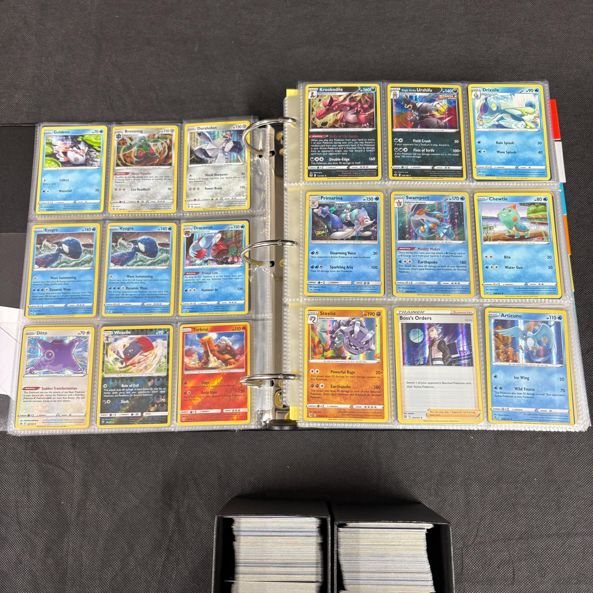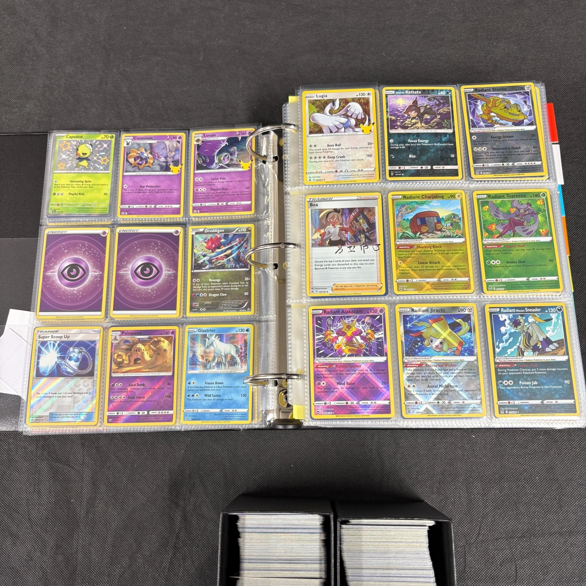 Huge modern pokemon card lot. Binder filled with 100s of modern pokemon cards mostly Sun and Moon = SWSH Era. And ETBs filled with bulk. Includes Holos, Rev Holos. We ship in-house! We ship internationally. We also offer pick up and we offer a discount for cash payments. Please look at pictures carefully to determine what you believe are the condition of each lot. We offer in person or virtual previews and we can take additional pictures, or answer questions about any lot until about 24 hours prior to auction. So all lots sold as is. By choosing which card to use to register to bid, you authorize the auction host to charge the card on file at the end of the auction to pay for any lots and shipping you won. Happy Bidding and Best of luck!