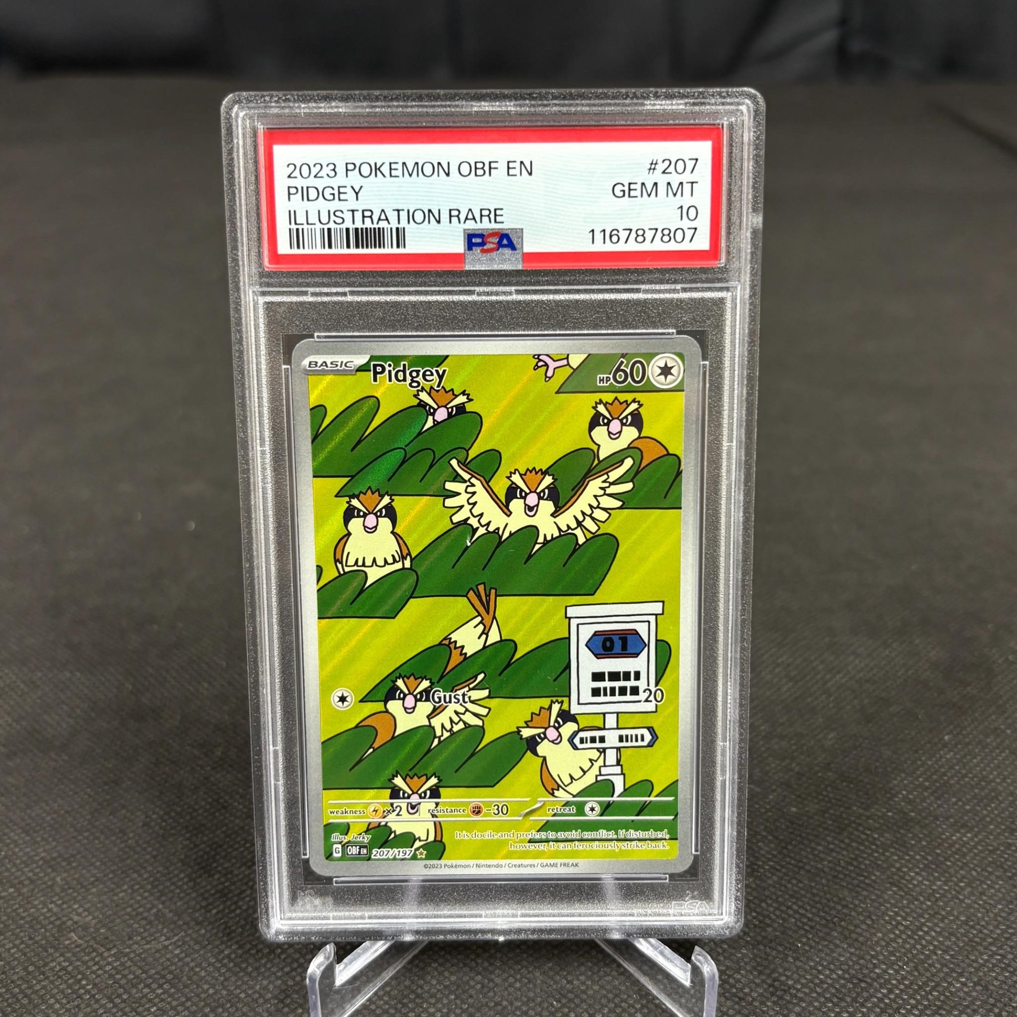 PSA 10 Pidgey #207 Illustration Rare Obsidian Flames Pokemon Card. We ship in-house! We ship internationally. We also offer pick up and we offer a discount for cash payments. Please look at pictures carefully to determine what you believe are the condition of each lot. We offer in person or virtual previews and we can take additional pictures, or answer questions about any lot until about 24 hours prior to auction. So all lots sold as is. By choosing which card to use to register to bid, you authorize the auction host to charge the card on file at the end of the auction to pay for any lots and shipping you won. Happy Bidding and Best of luck!