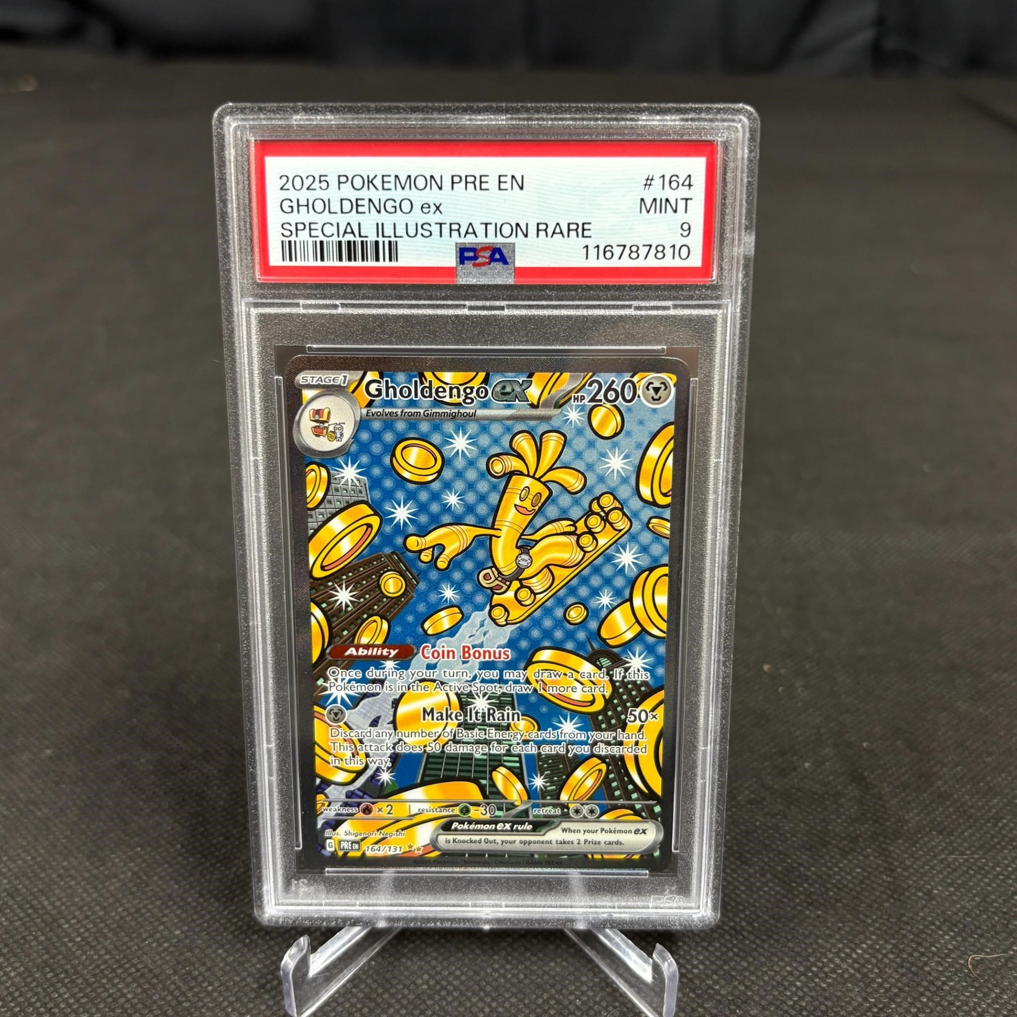 PSA 9 Gholdengo EX #164 Special Illustration Rare Prismatic Evolutions Pokemon Card. We ship in-house! We ship internationally. We also offer pick up and we offer a discount for cash payments. Please look at pictures carefully to determine what you believe are the condition of each lot. We offer in person or virtual previews and we can take additional pictures, or answer questions about any lot until about 24 hours prior to auction. So all lots sold as is. By choosing which card to use to register to bid, you authorize the auction host to charge the card on file at the end of the auction to pay for any lots and shipping you won. Happy Bidding and Best of luck!