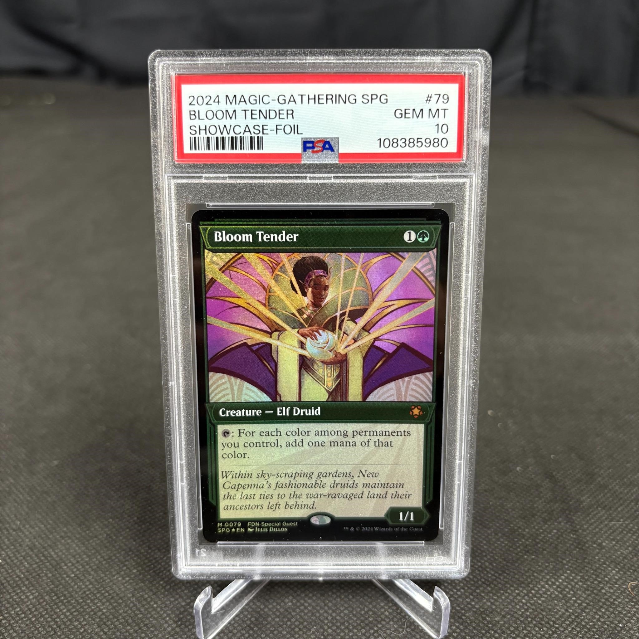 PSA 10 Bloom Tender #79 Magic the Gathering Showcsse foil. We ship in-house! We ship internationally. We also offer pick up and we offer a discount for cash payments. Please look at pictures carefully to determine what you believe are the condition of each lot. We offer in person or virtual previews and we can take additional pictures, or answer questions about any lot until about 24 hours prior to auction. So all lots sold as is. By choosing which card to use to register to bid, you authorize the auction host to charge the card on file at the end of the auction to pay for any lots and shipping you won. Happy Bidding and Best of luck!