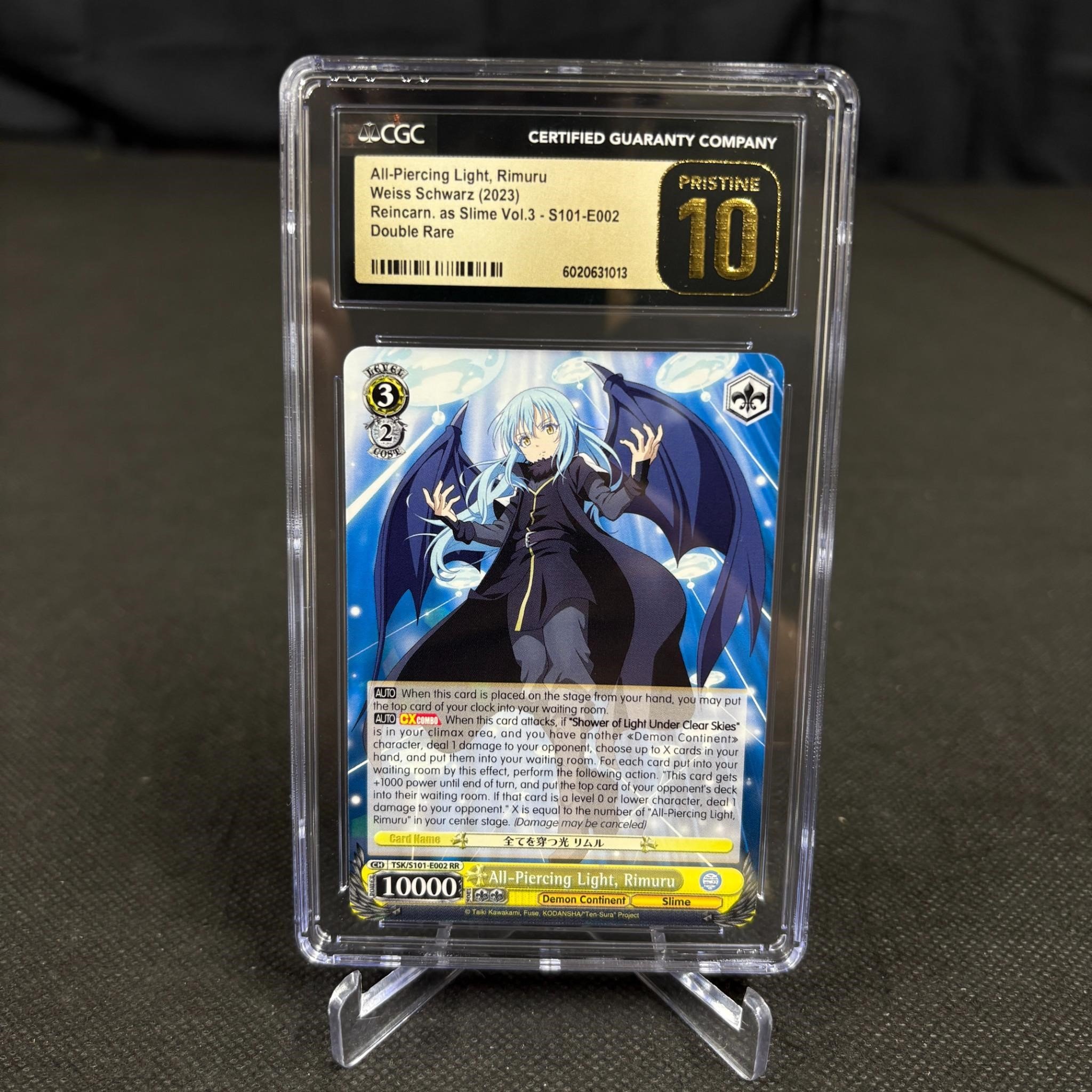 CGC Pristine 10 All-Piercing Light, Rimuru Weiss Schwarz Reincarnated as a Slime Vol. 3 Double Rare Card. We ship in-house! We ship internationally. We also offer pick up and we offer a discount for cash payments. Please look at pictures carefully to determine what you believe are the condition of each lot. We offer in person or virtual previews and we can take additional pictures, or answer questions about any lot until about 24 hours prior to auction. So all lots sold as is. By choosing which card to use to register to bid, you authorize the auction host to charge the card on file at the end of the auction to pay for any lots and shipping you won. Happy Bidding and Best of luck!
