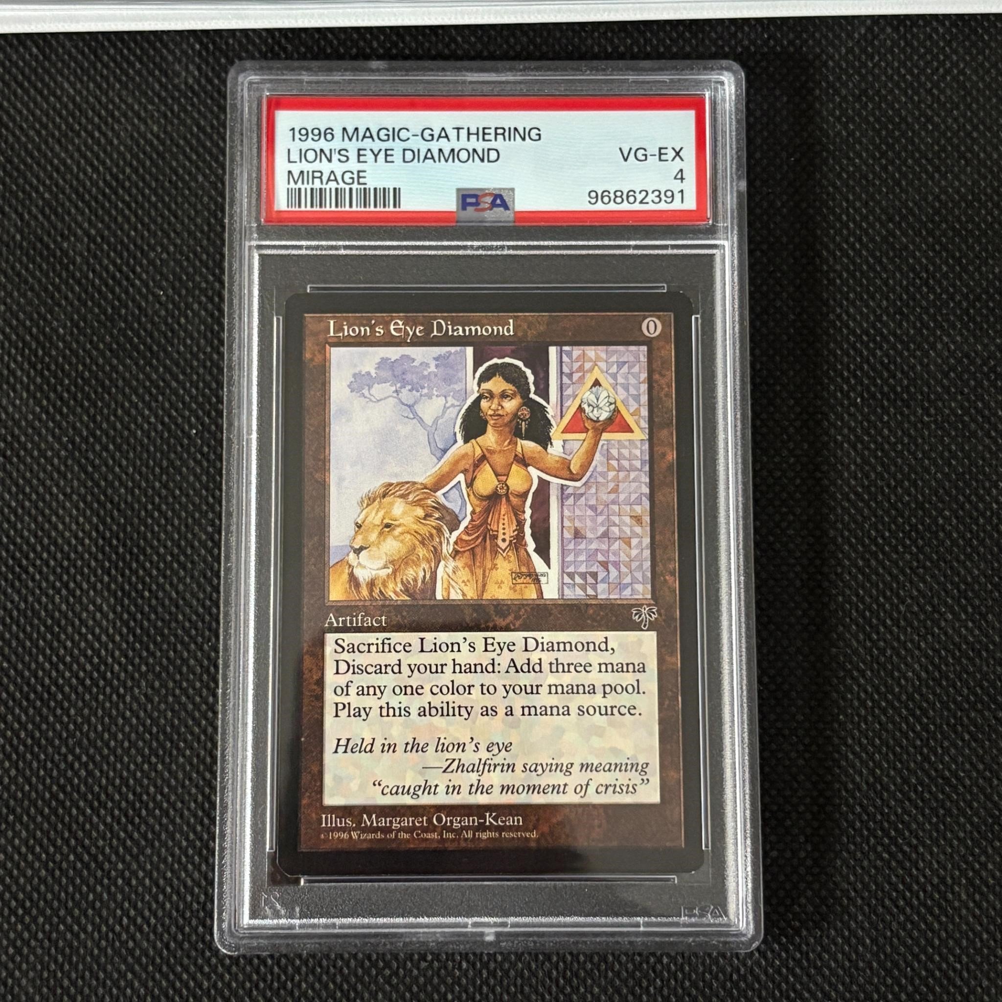 Complete set of Mirage Magic the Gathering Cards Includes PSA 4 Lion’s eye Diamond, Phyrexian Dreadnought, Shallow Grave, Tombstone Stairwell, Worldly Tutor + We ship in-house! We ship internationally. We also offer pick up and we offer a discount for cash payments. Please look at pictures carefully to determine what you believe are the condition of each lot. We offer in person or virtual previews and we can take additional pictures, or answer questions about any lot until about 24 hours prior to auction. So all lots sold as is. By choosing which card to use to register to bid, you authorize the auction host to charge the card on file at the end of the auction to pay for any lots and shipping you won. Happy Bidding and Best of luck!