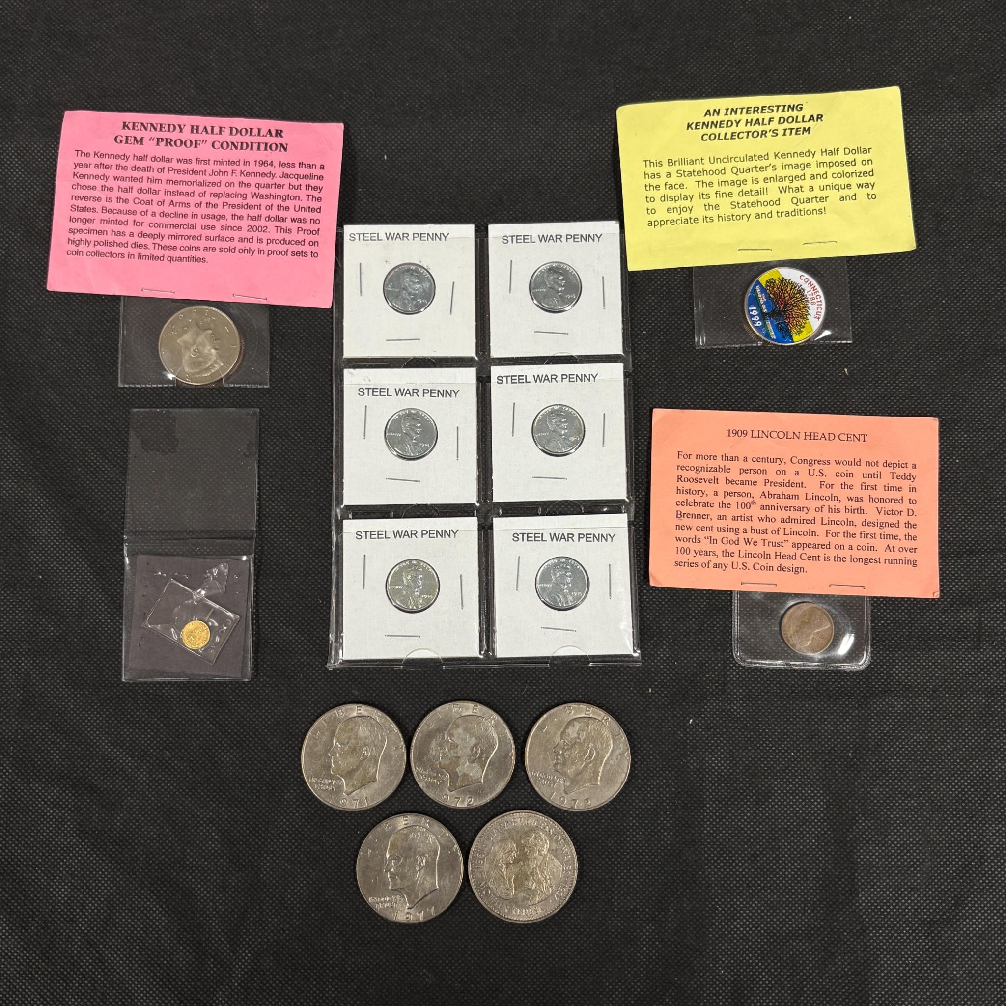 Coin Lot, Steel War Pennies, Eisenhower Dollars +