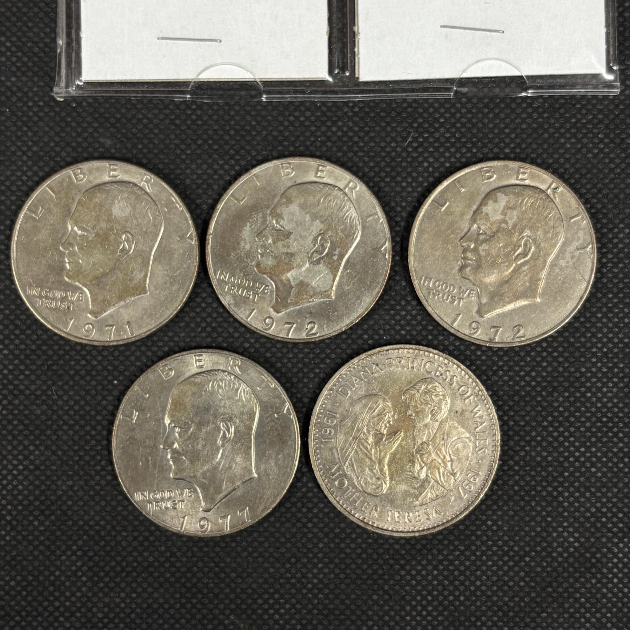 Includes Eisenhower Dollar Coins. Princess Diana and Mother Teresa $5 Coin, Steel War Pennies, Kennedy Half Dollar, ++ We ship in-house! We ship internationally. We also offer pick up and we offer a discount for cash payments. Please look at pictures carefully to determine what you believe are the condition of each lot. We offer in person or virtual previews and we can take additional pictures, or answer questions about any lot until about 24 hours prior to auction. So all lots sold as is. By choosing which card to use to register to bid, you authorize the auction host to charge the card on file at the end of the auction to pay for any lots and shipping you won. Happy Bidding and Best of luck!