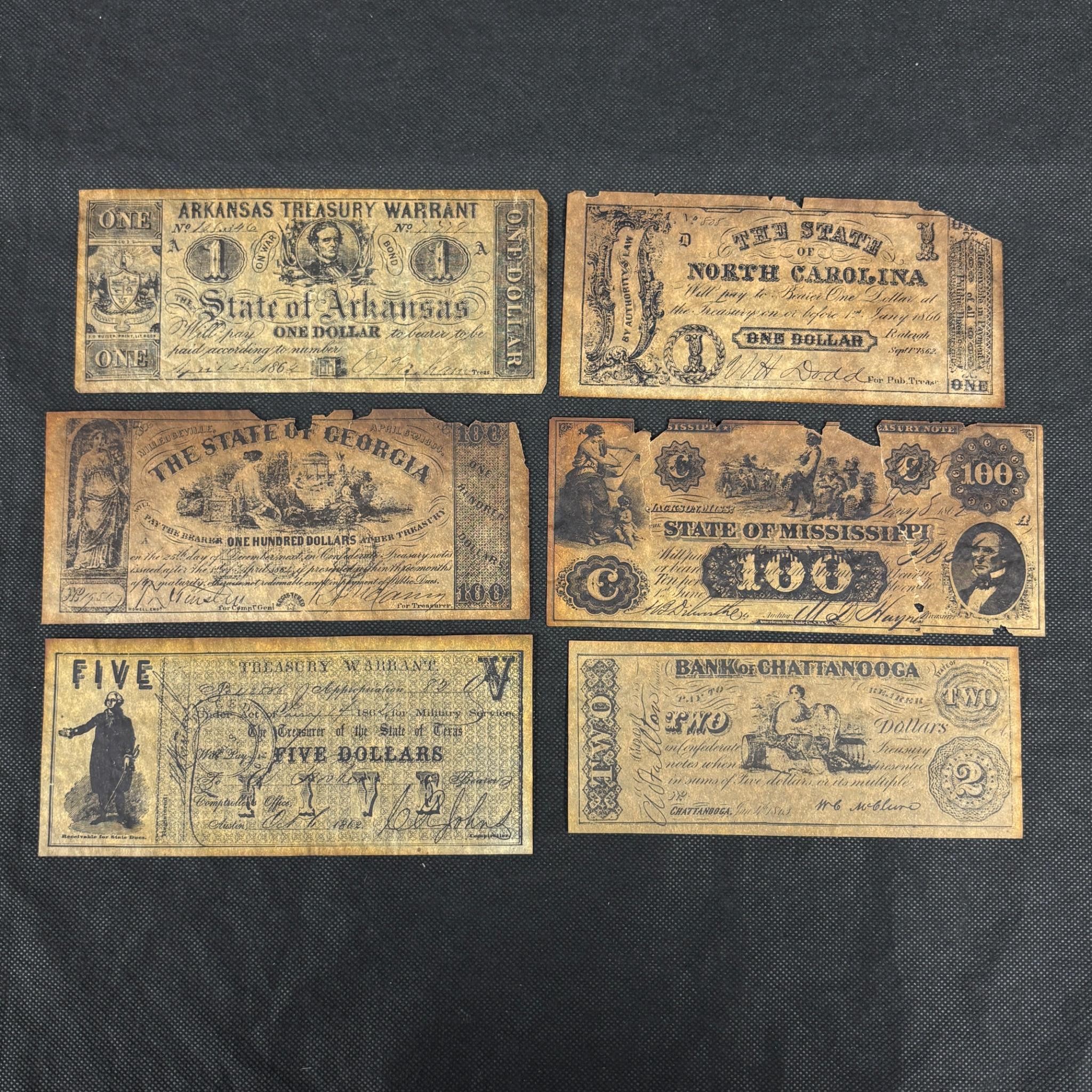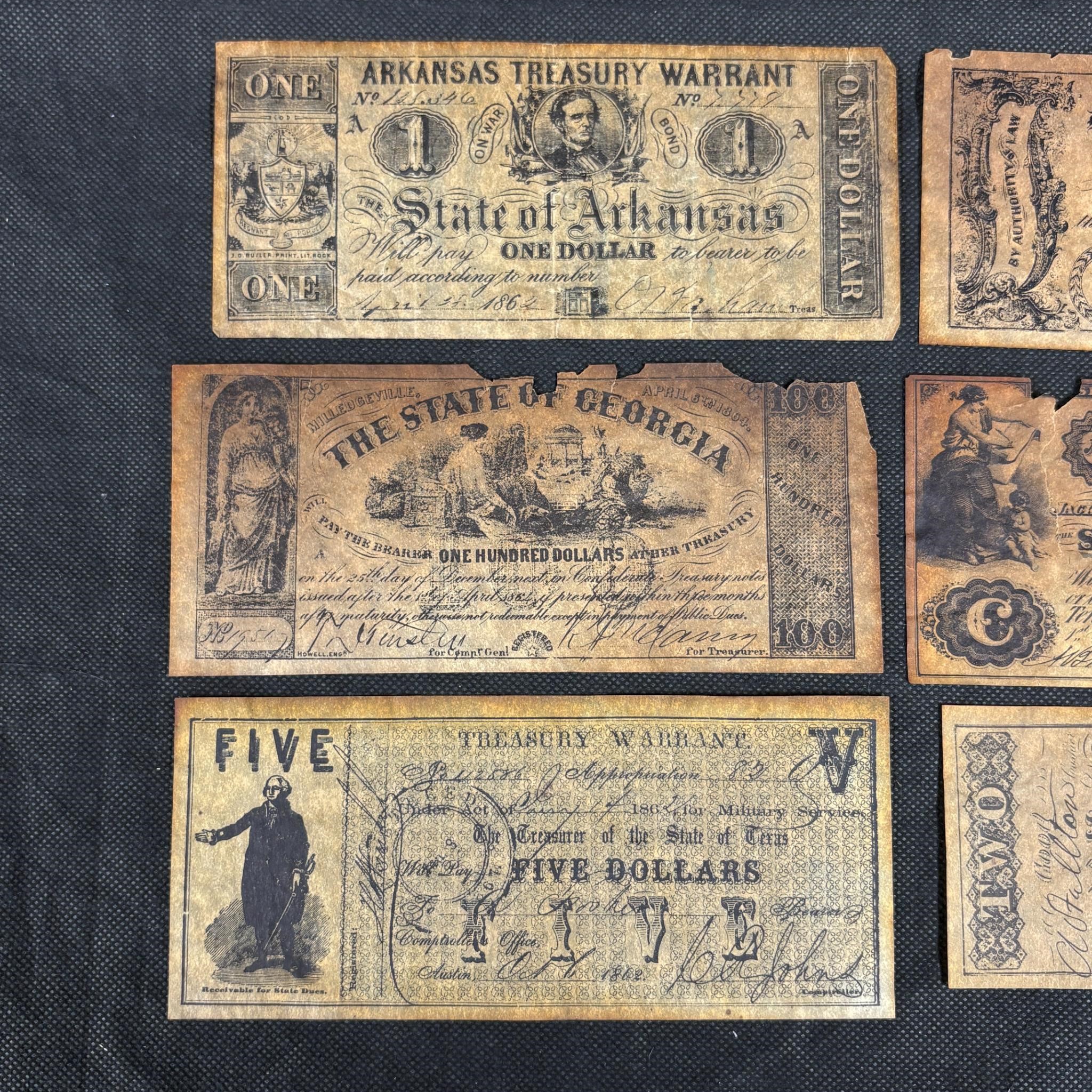1862 Treasury Warrant Texas Military Service Note, 1863 $2 Chattanooga Tennessee Civil War Note, 1862 $100 Jackson Mississippi Note. ++ We ship in-house! We ship internationally. We also offer pick up and we offer a discount for cash payments. Please look at pictures carefully to determine what you believe are the condition of each lot. We offer in person or virtual previews and we can take additional pictures, or answer questions about any lot until about 24 hours prior to auction. So all lots sold as is. By choosing which card to use to register to bid, you authorize the auction host to charge the card on file at the end of the auction to pay for any lots and shipping you won. Happy Bidding and Best of luck!