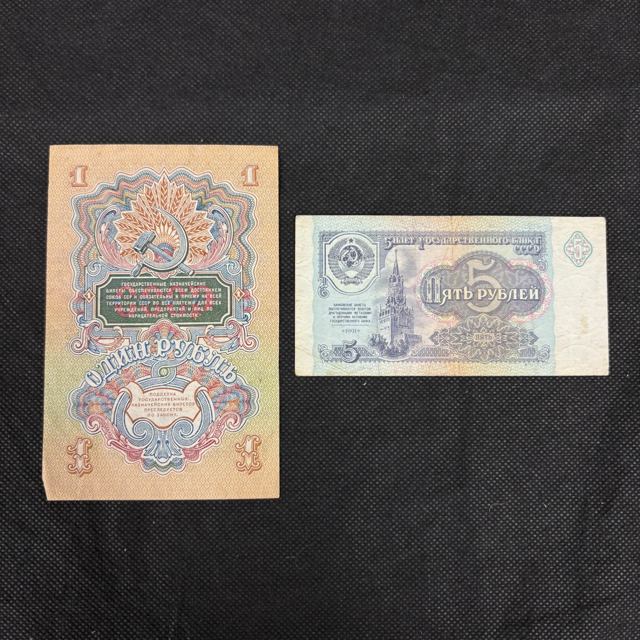 1947 Russian Bank Note, 1991 Russian Bank note. Book Marking the beginning and end of the cold war currency in the soviet union. Currency features the hammer and sickle. We ship in-house! We ship internationally. We also offer pick up and we offer a discount for cash payments. Please look at pictures carefully to determine what you believe are the condition of each lot. We offer in person or virtual previews and we can take additional pictures, or answer questions about any lot until about 24 hours prior to auction. So all lots sold as is. By choosing which card to use to register to bid, you authorize the auction host to charge the card on file at the end of the auction to pay for any lots and shipping you won. Happy Bidding and Best of luck!