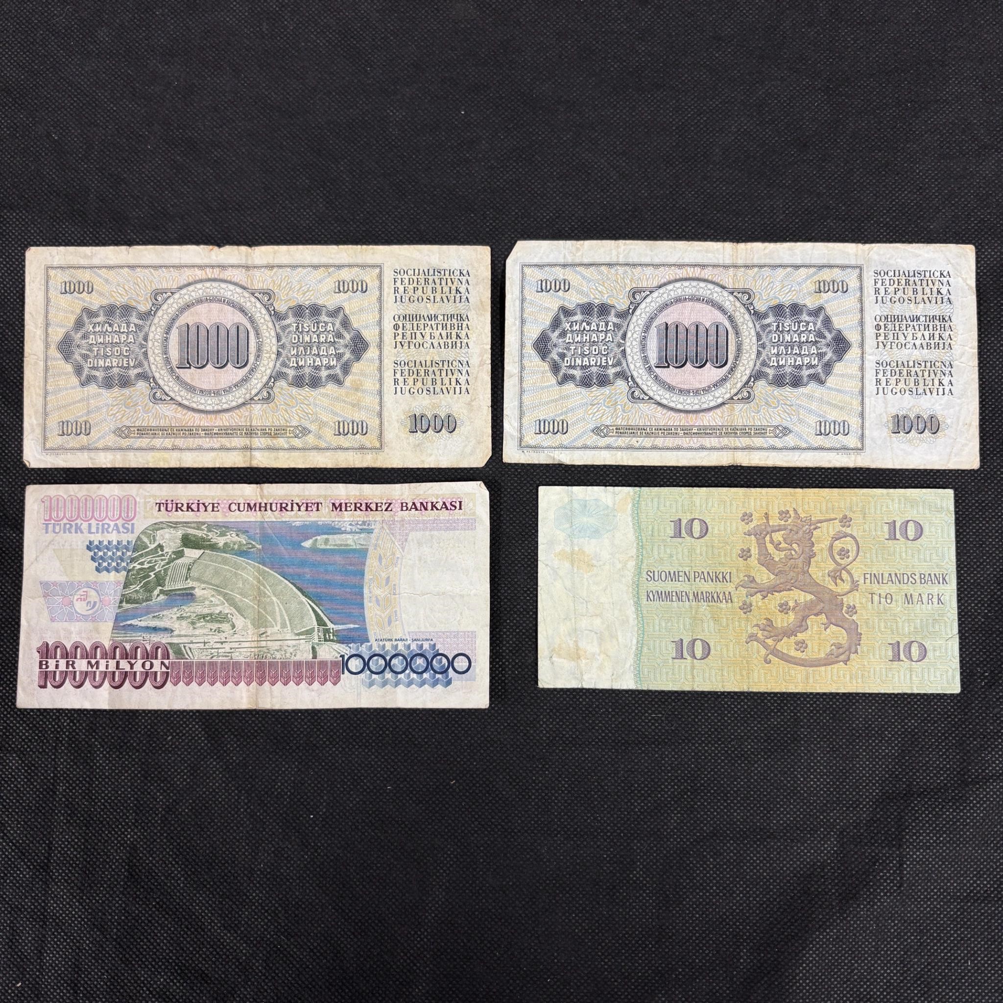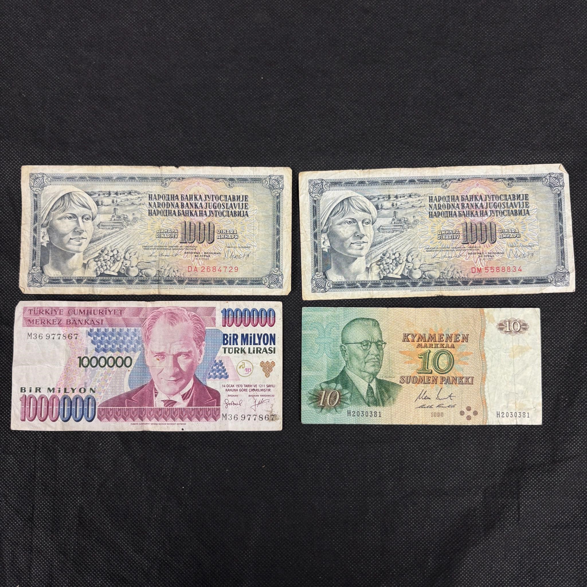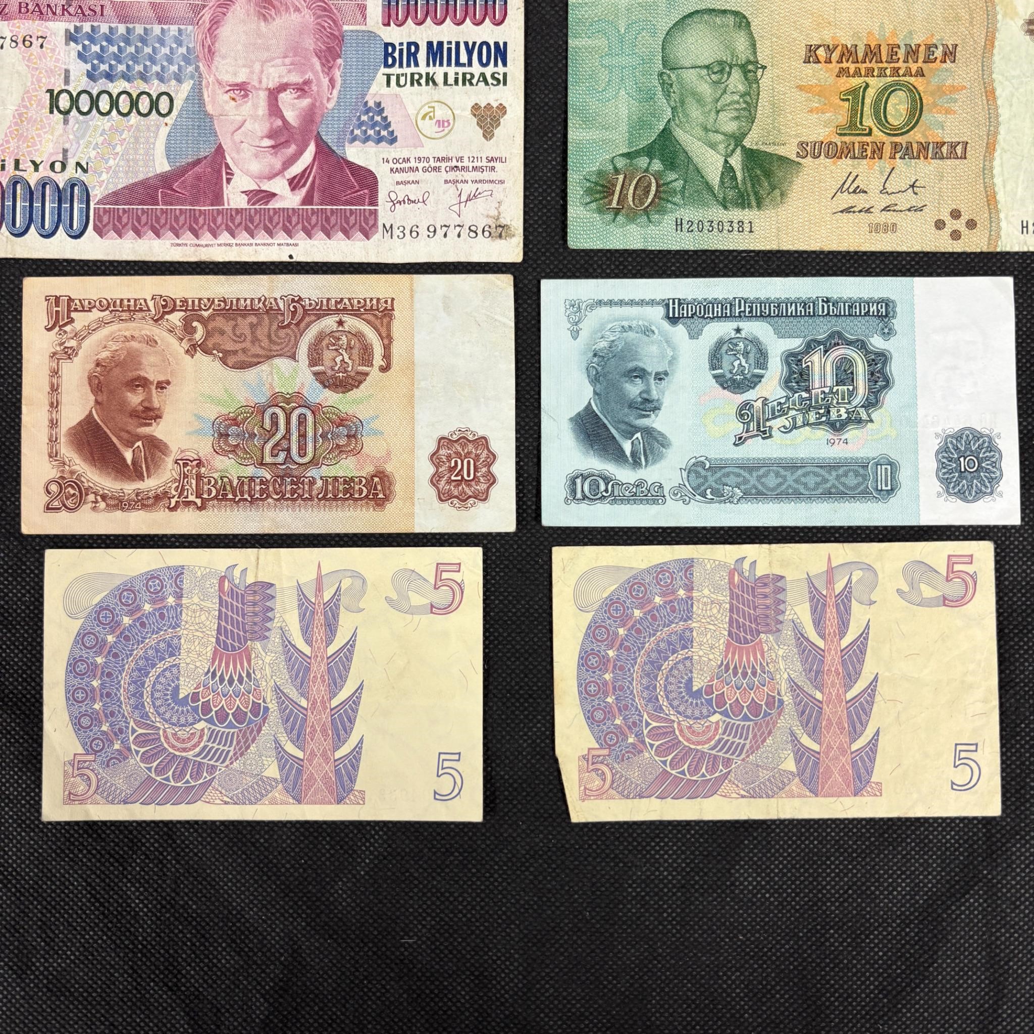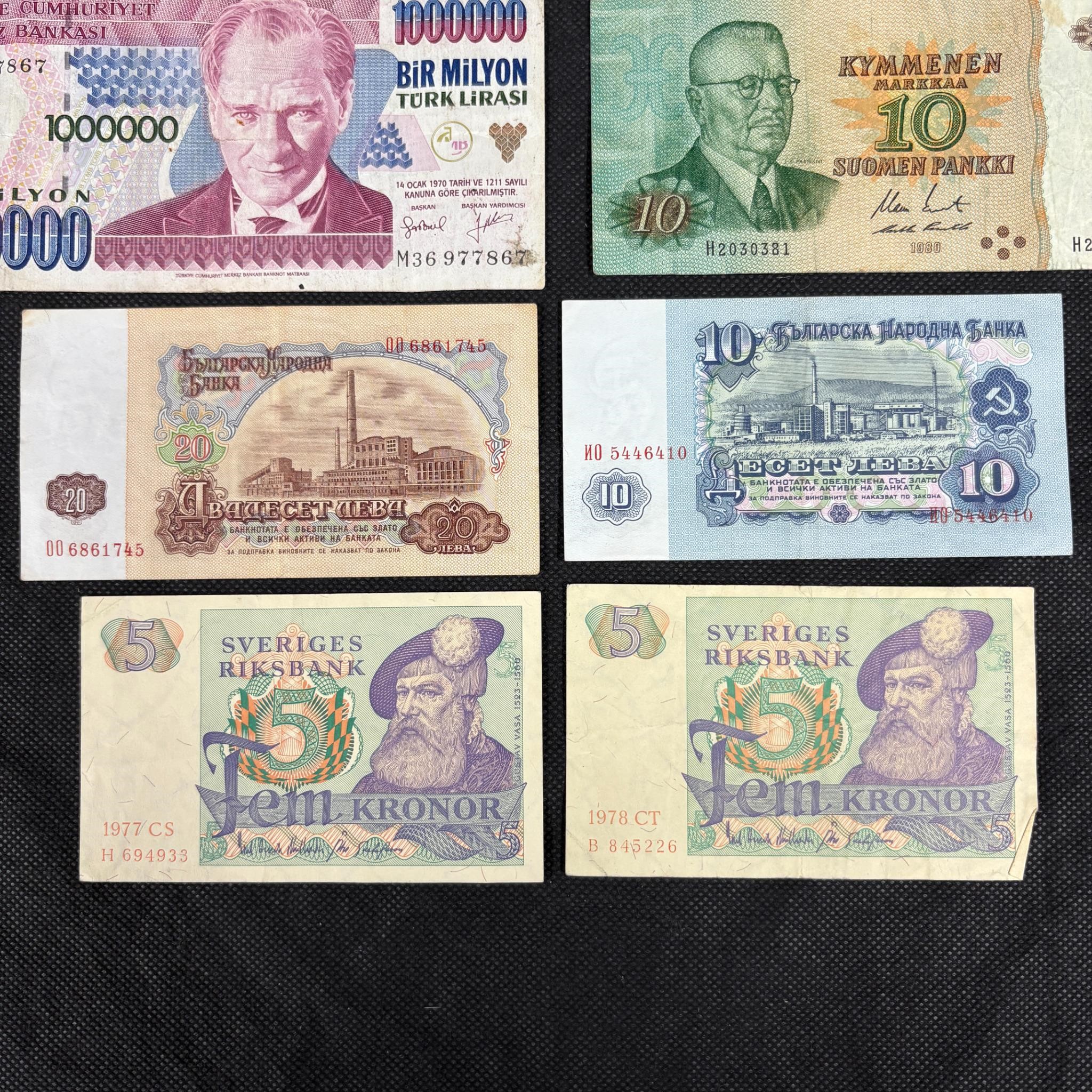 1980 Finland 10 Marks Bank Note, 1977, 78 Sweden 5 Kronor Notes, 1974 Bulgaria 20 and 10 Leva Notes, 1970 Turkey Million Lira Note, and 1980 Yugoslavia 1000 Dinara Bank Note. We ship in-house! We ship internationally. We also offer pick up and we offer a discount for cash payments. Please look at pictures carefully to determine what you believe are the condition of each lot. We offer in person or virtual previews and we can take additional pictures, or answer questions about any lot until about 24 hours prior to auction. So all lots sold as is. By choosing which card to use to register to bid, you authorize the auction host to charge the card on file at the end of the auction to pay for any lots and shipping you won. Happy Bidding and Best of luck!