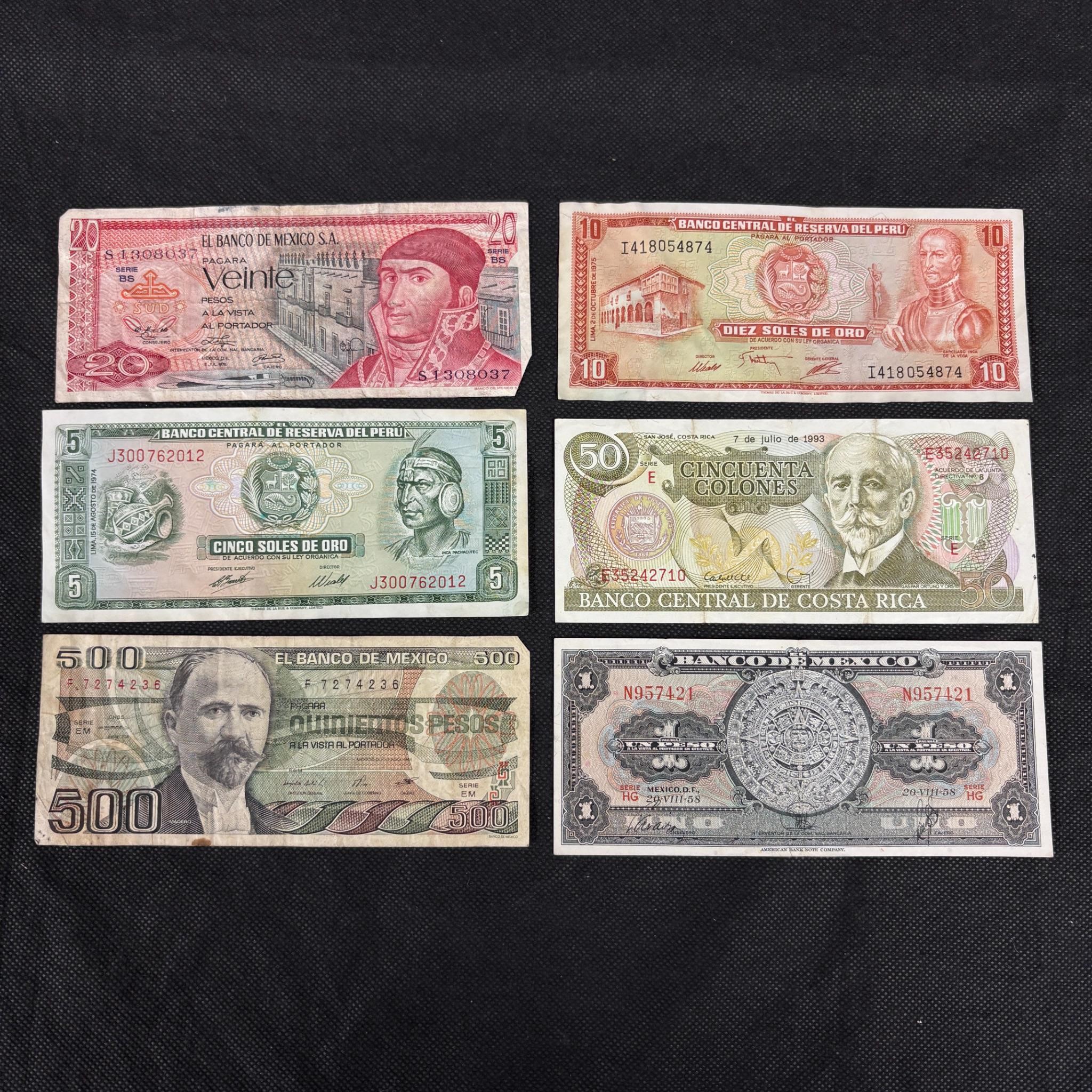 1950s-70s Mexico, Costa Rica, Peru Bank Notes