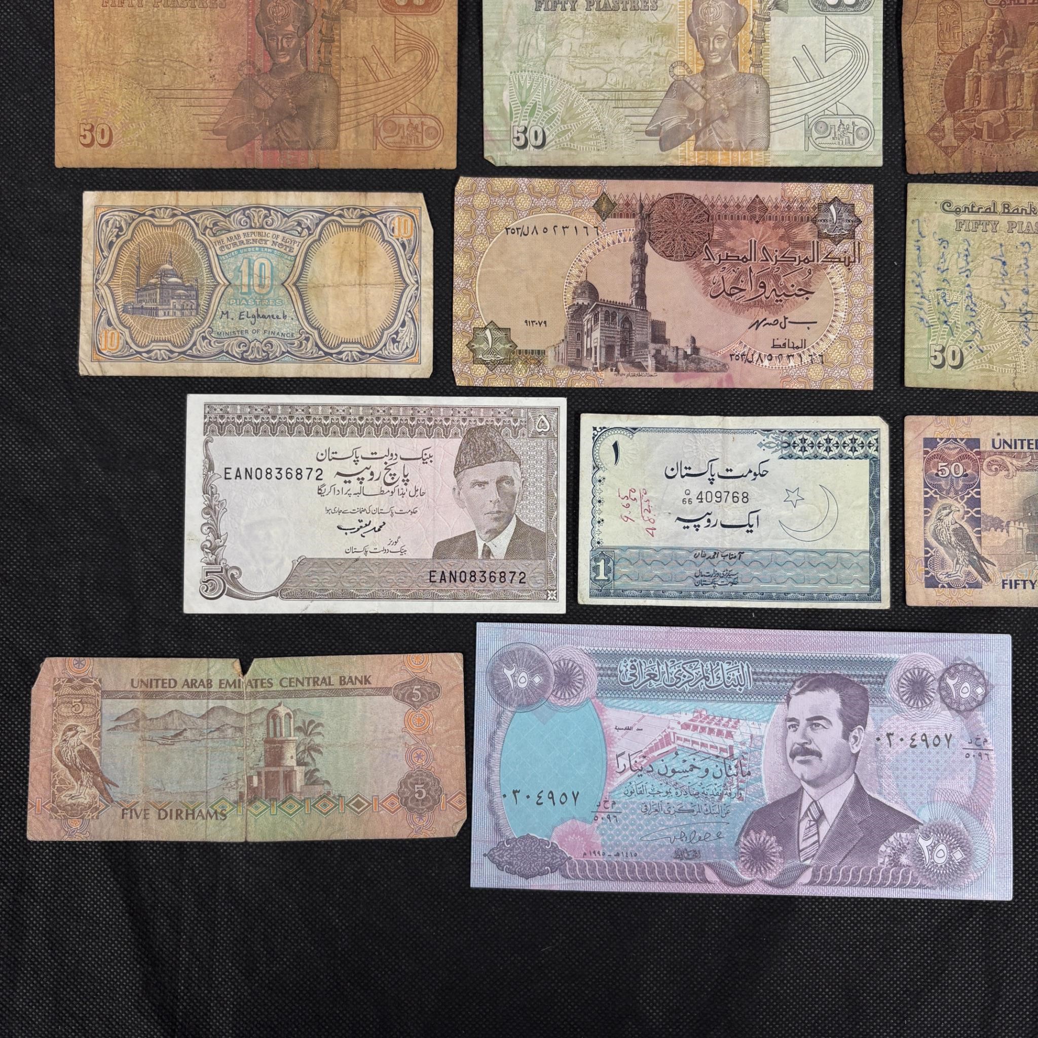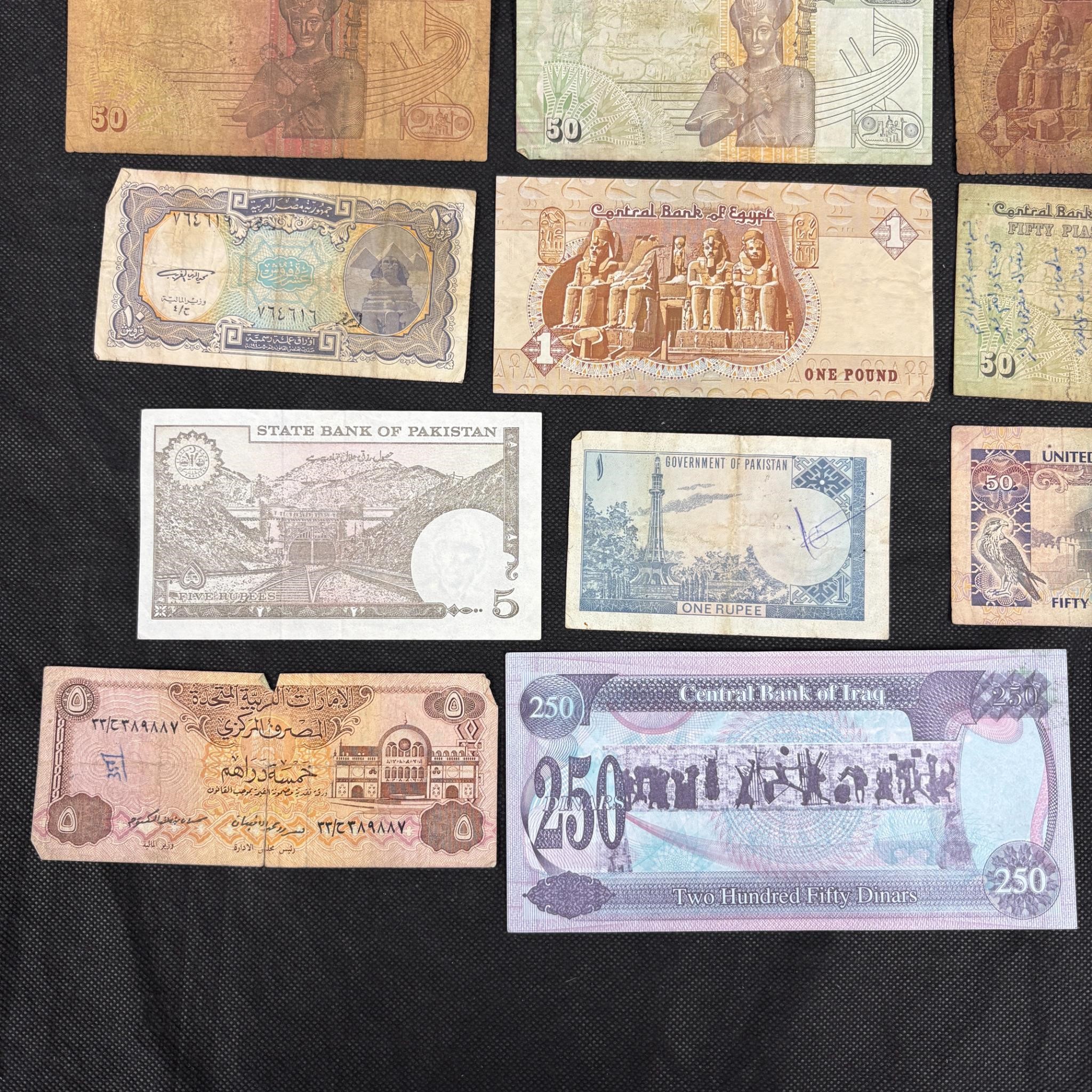 Large lot of Middle Eastern Currency. Includes Egyptian Plastres, United Arab Emirates Dirhams, Central Bank of Iraq (Saddam Hussein), and Bank of Israel. We ship in-house! We ship internationally. We also offer pick up and we offer a discount for cash payments. Please look at pictures carefully to determine what you believe are the condition of each lot. We offer in person or virtual previews and we can take additional pictures, or answer questions about any lot until about 24 hours prior to auction. So all lots sold as is. By choosing which card to use to register to bid, you authorize the auction host to charge the card on file at the end of the auction to pay for any lots and shipping you won. Happy Bidding and Best of luck!