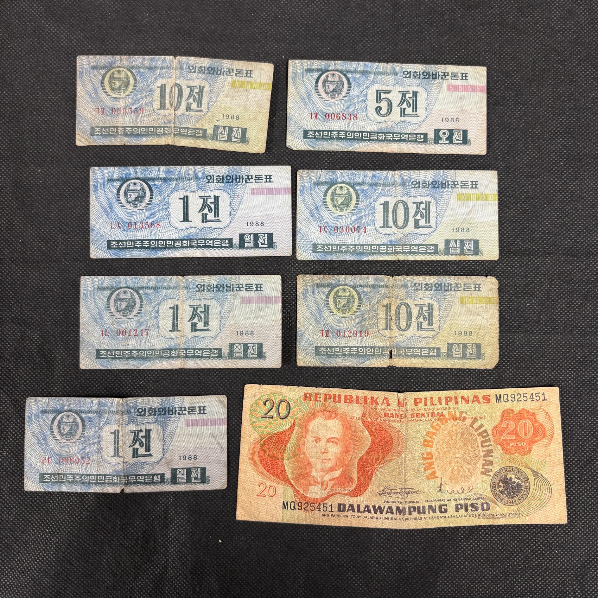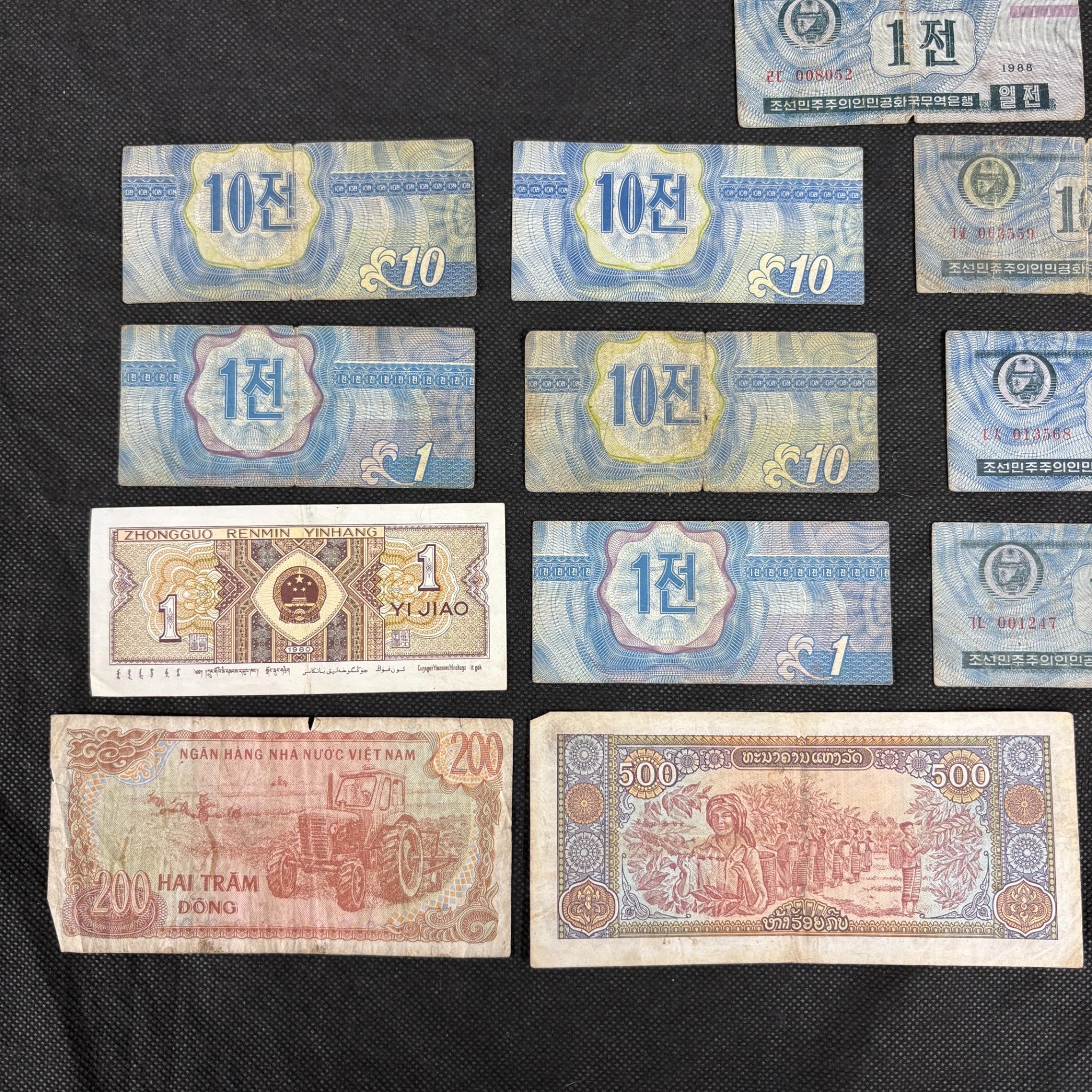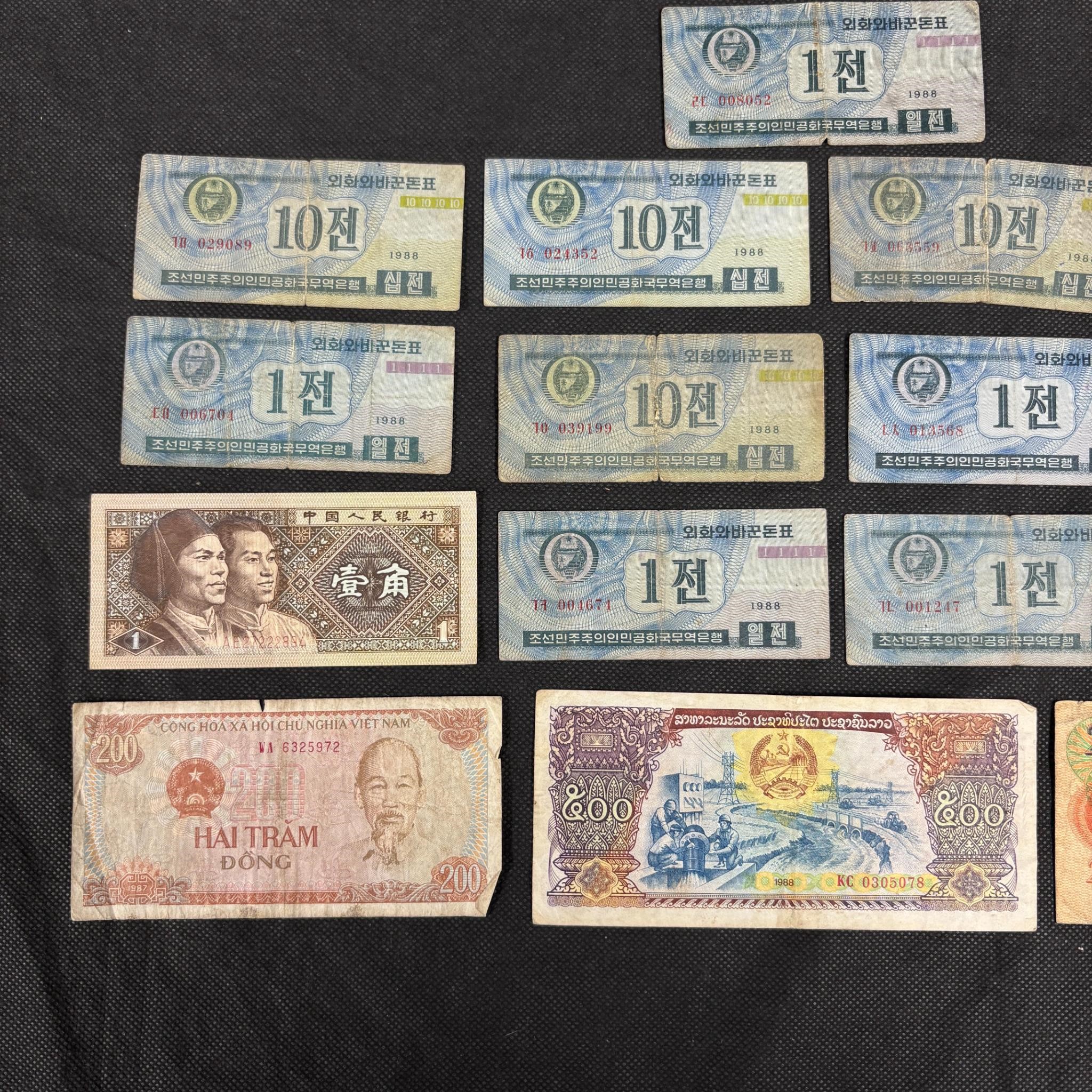 1988 Korea Chon Bank Notes, 1980 1 Yi Jiao China Bank Note, 1970s Philippines 20 Piso, 1988 Laos 500 Kip, 1987 Vietnam 200 Dong Bank Note. We ship in-house! We ship internationally. We also offer pick up and we offer a discount for cash payments. Please look at pictures carefully to determine what you believe are the condition of each lot. We offer in person or virtual previews and we can take additional pictures, or answer questions about any lot until about 24 hours prior to auction. So all lots sold as is. By choosing which card to use to register to bid, you authorize the auction host to charge the card on file at the end of the auction to pay for any lots and shipping you won. Happy Bidding and Best of luck!
