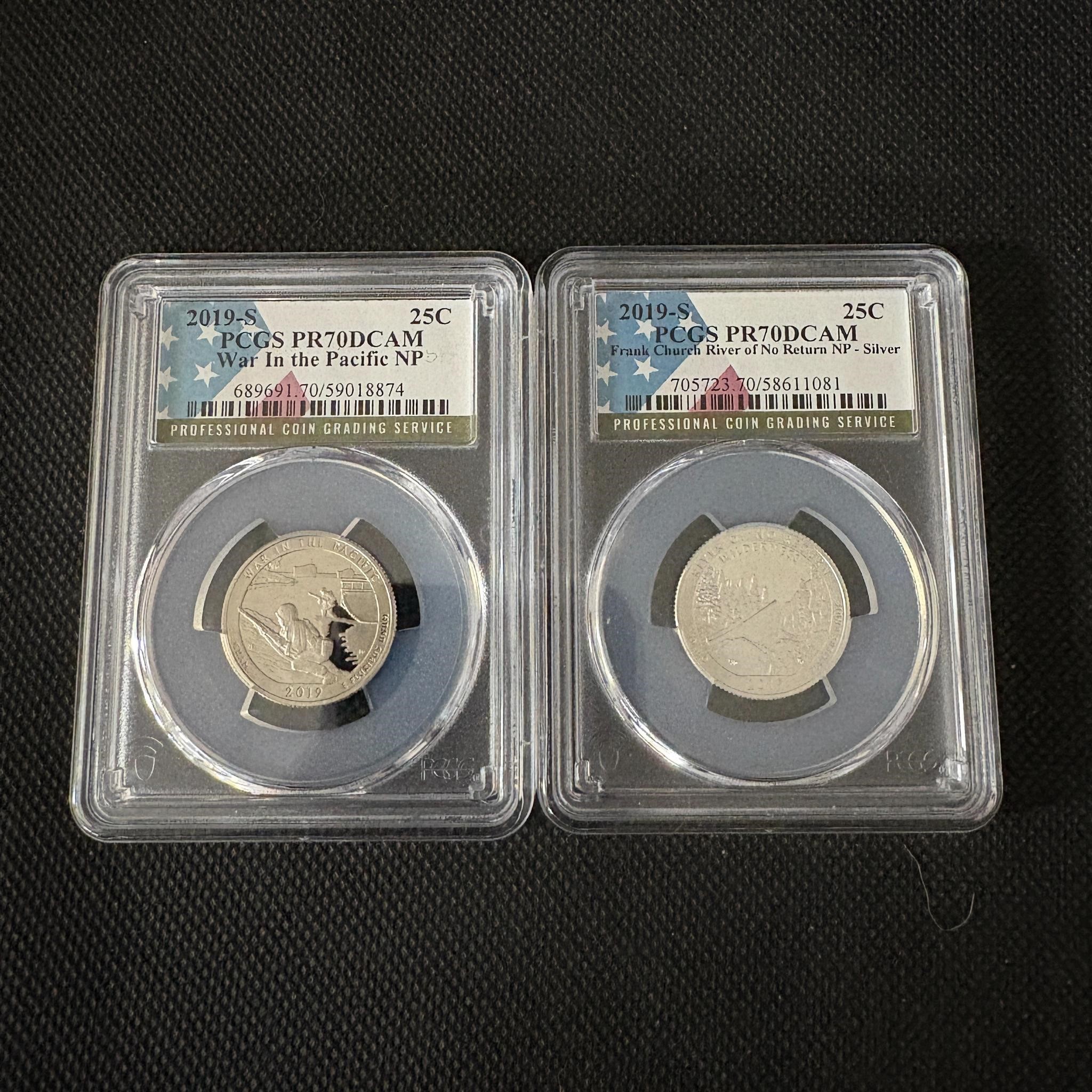 PCGS PR70DCAM War in the Pacific NP 2019-S PCGS PR70DCAM Frank Church River of No Return NP Silver 2019-S Quarters. We ship in-house! We ship internationally. We also offer pick up and we offer a discount for cash payments. Please look at pictures carefully to determine what you believe are the condition of each lot. We offer in person or virtual previews and we can take additional pictures, or answer questions about any lot until about 24 hours prior to auction. So all lots sold as is. By choosing which card to use to register to bid, you authorize the auction host to charge the card on file at the end of the auction to pay for any lots and shipping you won. Happy Bidding and Best of luck!