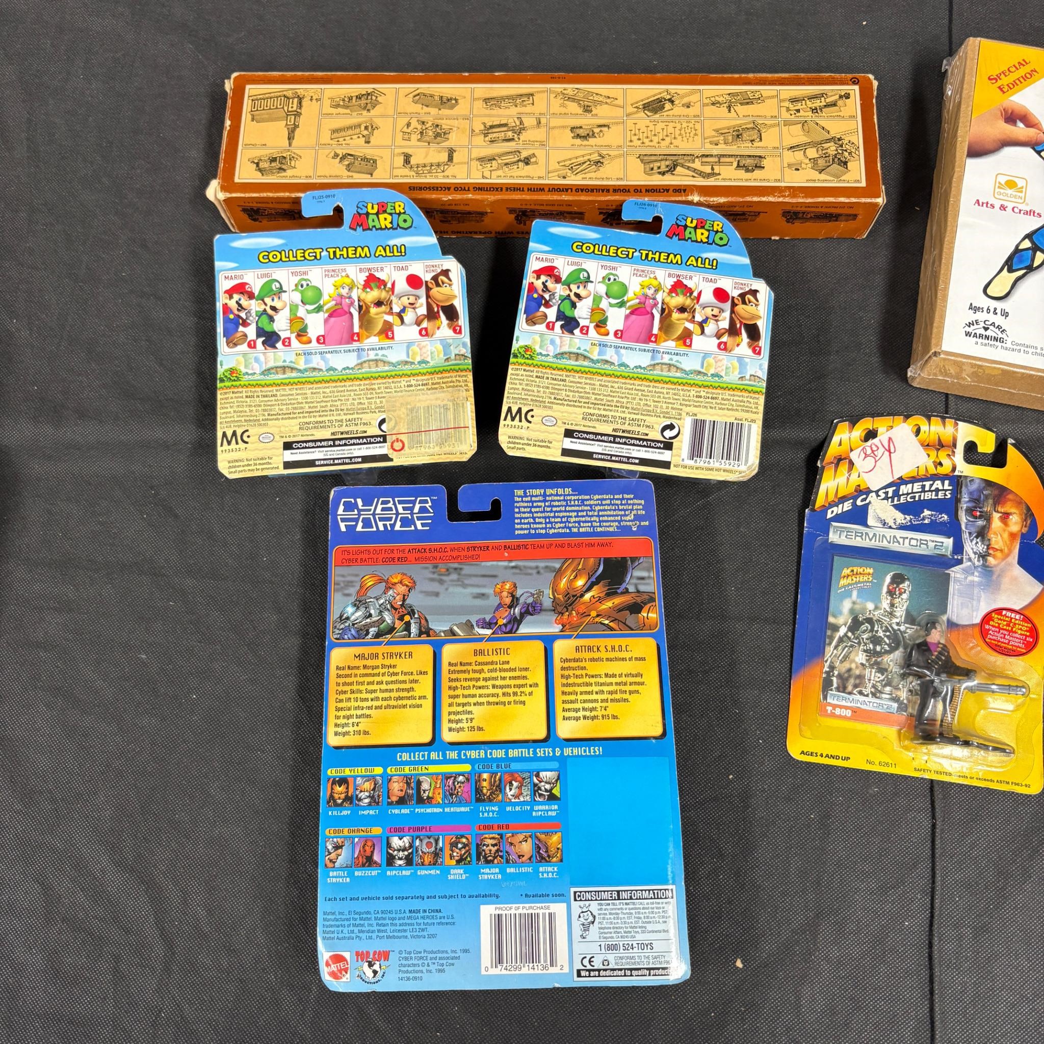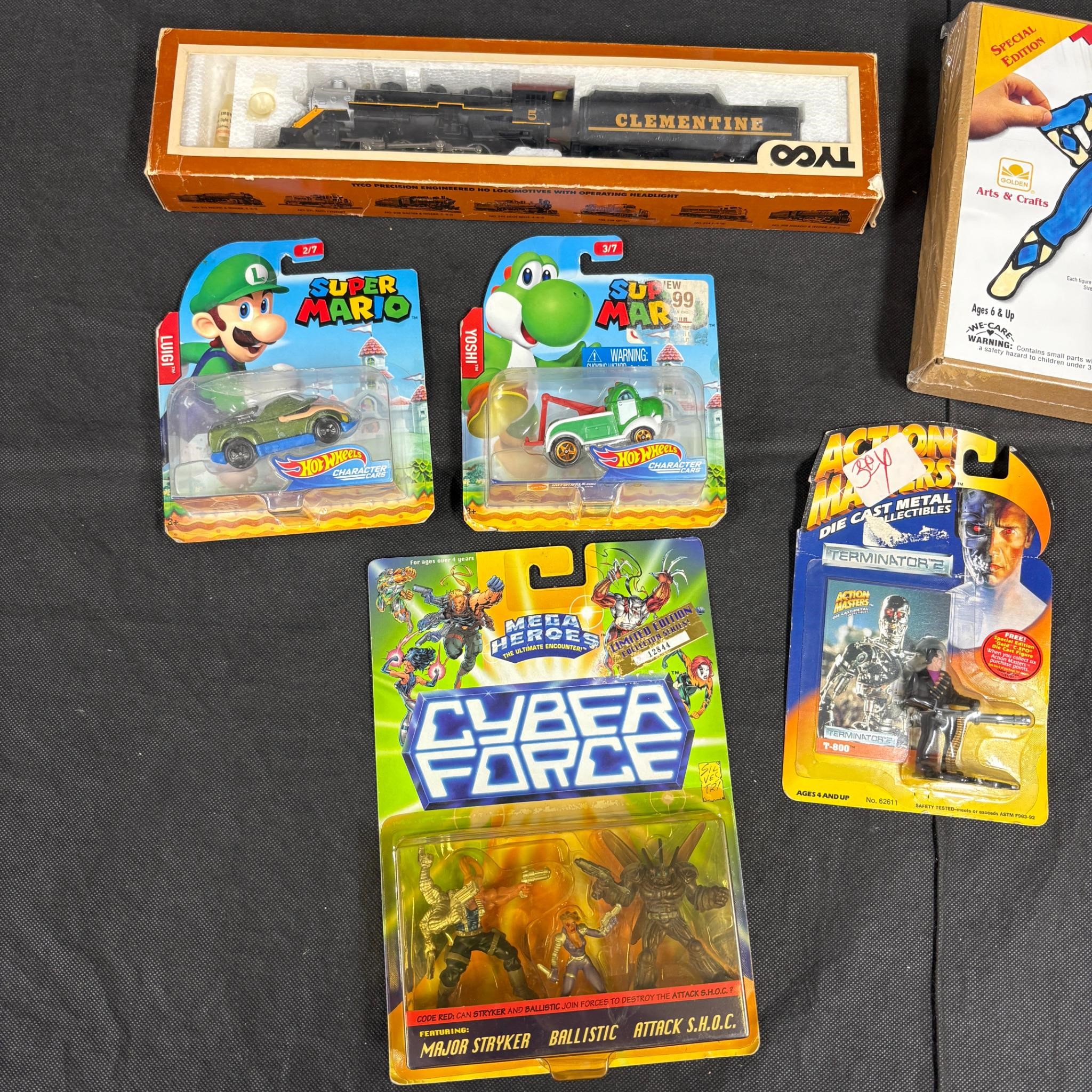 Includes Super Mario Hot Wheels Cars NIB, Lim Ed Cyber Force Action Figures NIB, Terminator 2 Action Figure, Peelable Paint Power Rangers Kit NIB, and Tyco Clementine Trin. We ship in-house! We ship internationally. We also offer pick up and we offer a discount for cash payments. Please look at pictures carefully to determine what you believe are the condition of each lot. We offer in person or virtual previews and we can take additional pictures, or answer questions about any lot until about 24 hours prior to auction. So all lots sold as is. By choosing which card to use to register to bid, you authorize the auction host to charge the card on file at the end of the auction to pay for any lots and shipping you won. Happy Bidding and Best of luck!