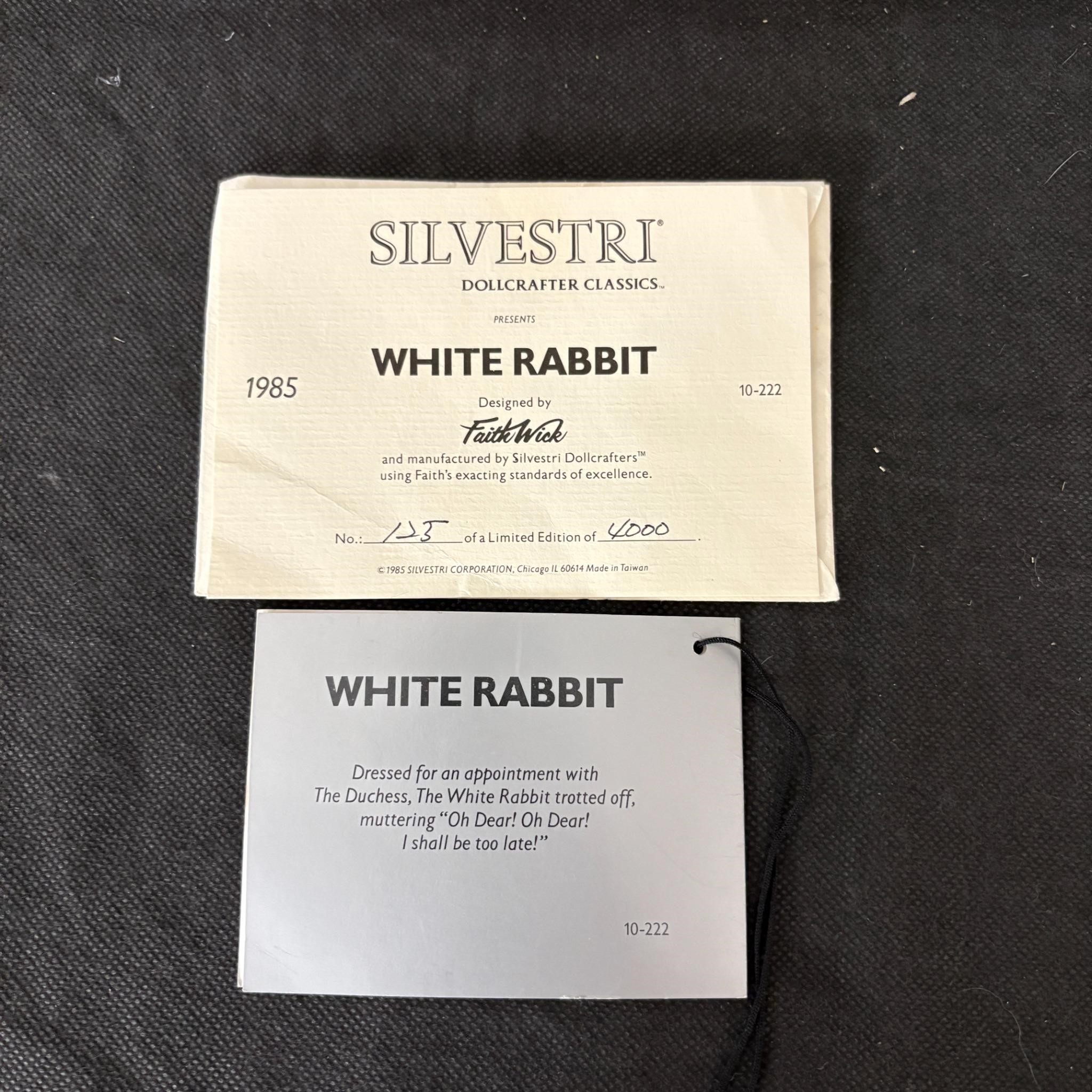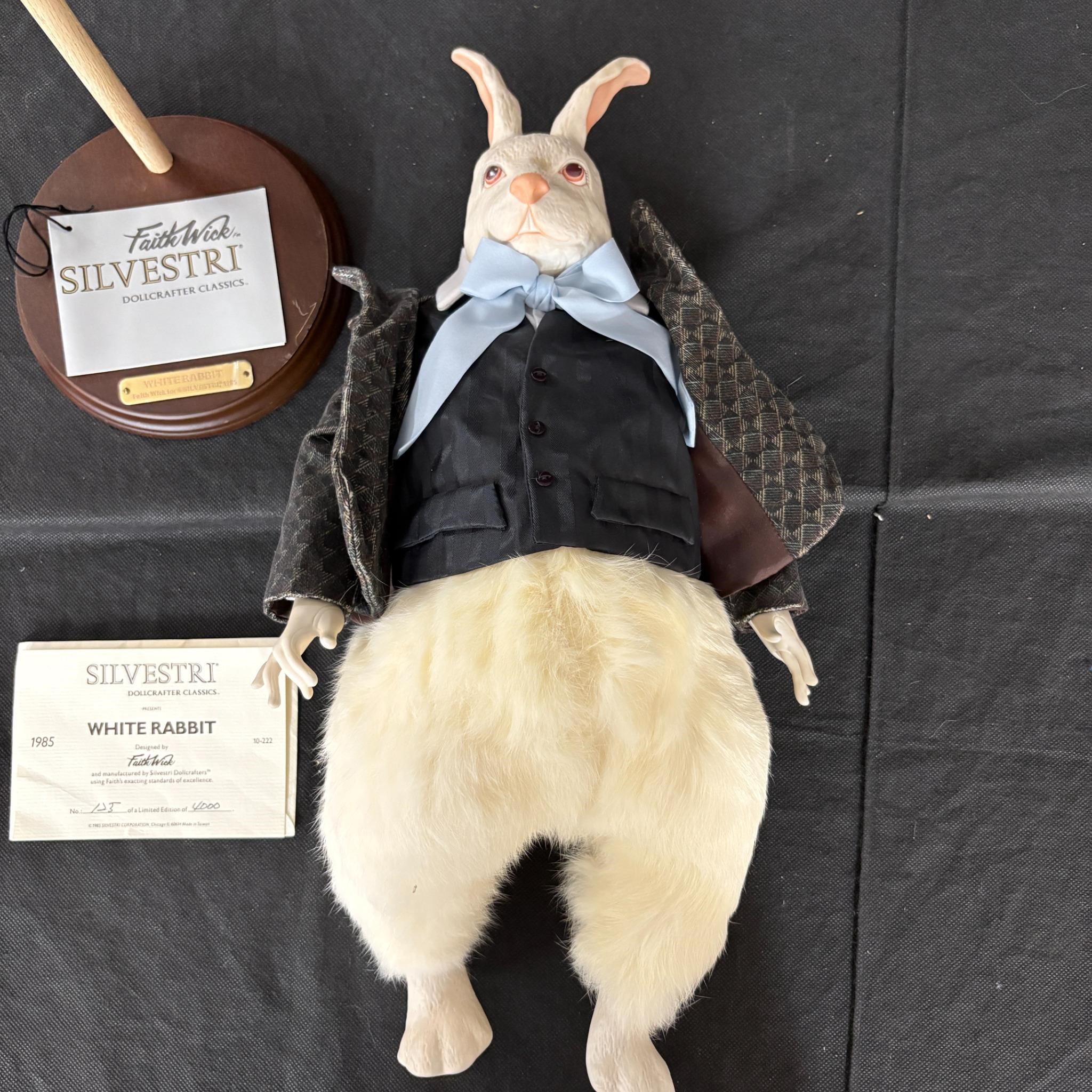 1985 White Rabbit Faith Wick Silvestri Doll. Alice in Wonderland. We ship in-house! We ship internationally. We also offer pick up and we offer a discount for cash payments. Please look at pictures carefully to determine what you believe are the condition of each lot. We offer in person or virtual previews and we can take additional pictures, or answer questions about any lot until about 24 hours prior to auction. So all lots sold as is. By choosing which card to use to register to bid, you authorize the auction host to charge the card on file at the end of the auction to pay for any lots and shipping you won. Happy Bidding and Best of luck!