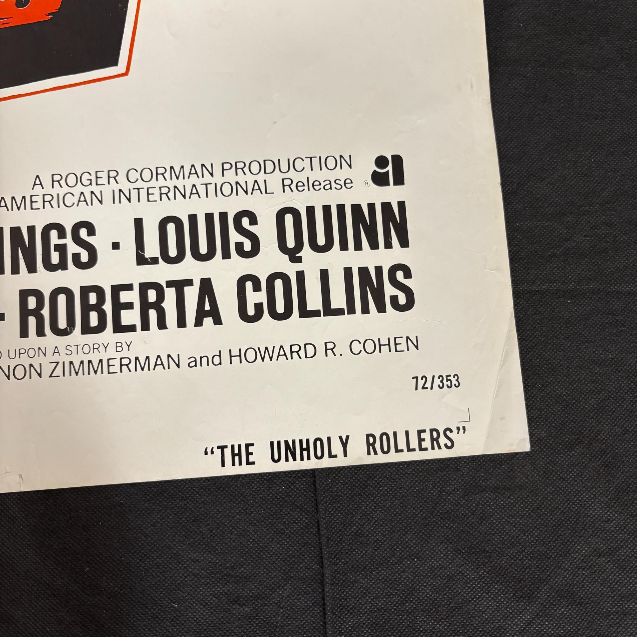 Original One Sheet Movie Poster for Unholy Rollers. Dimensions: 27×41. We ship in-house! We ship internationally. We also offer pick up and we offer a discount for cash payments. Please look at pictures carefully to determine what you believe are the condition of each lot. We offer in person or virtual previews and we can take additional pictures, or answer questions about any lot until about 24 hours prior to auction. So all lots sold as is. By choosing which card to use to register to bid, you authorize the auction host to charge the card on file at the end of the auction to pay for any lots and shipping you won. Happy Bidding and Best of luck!