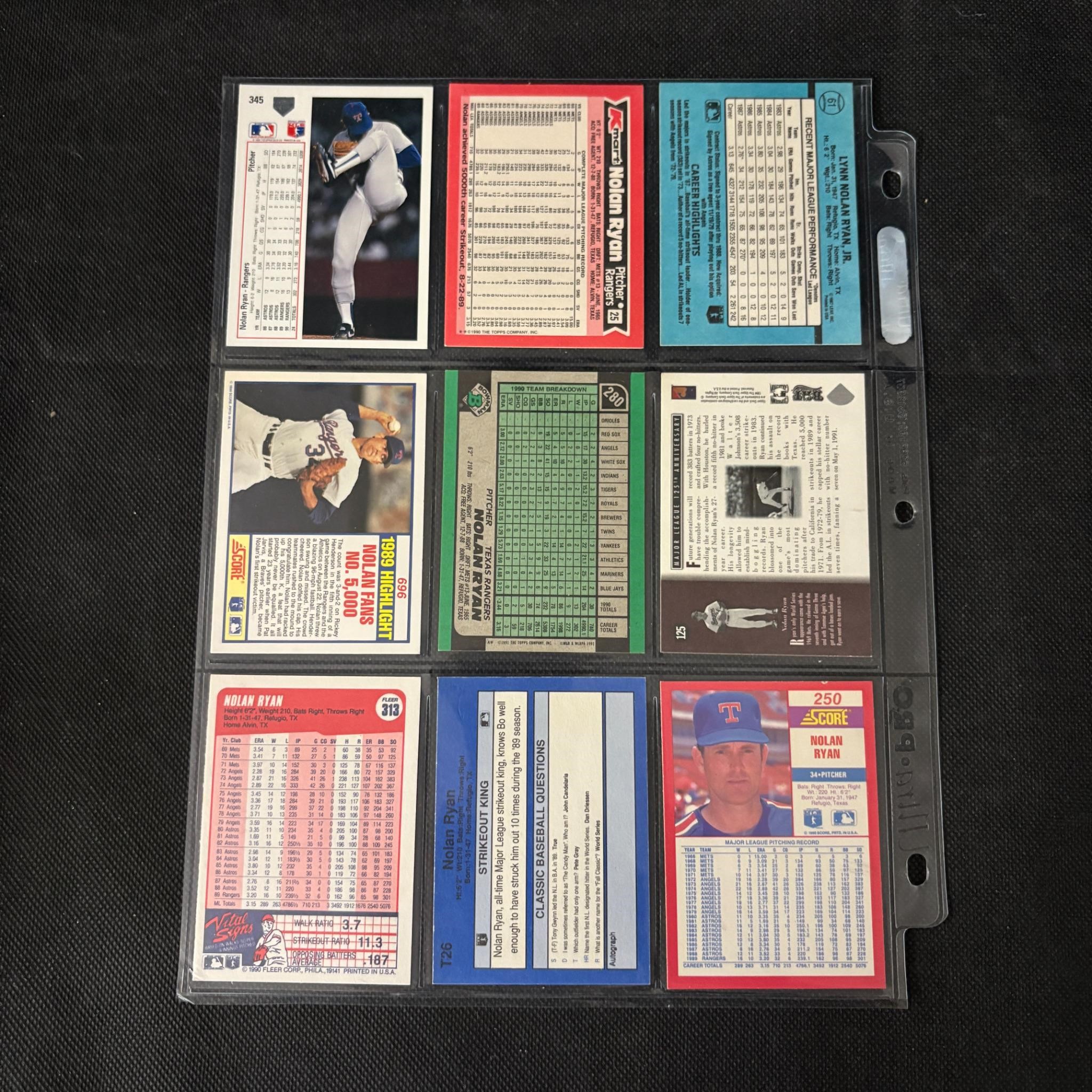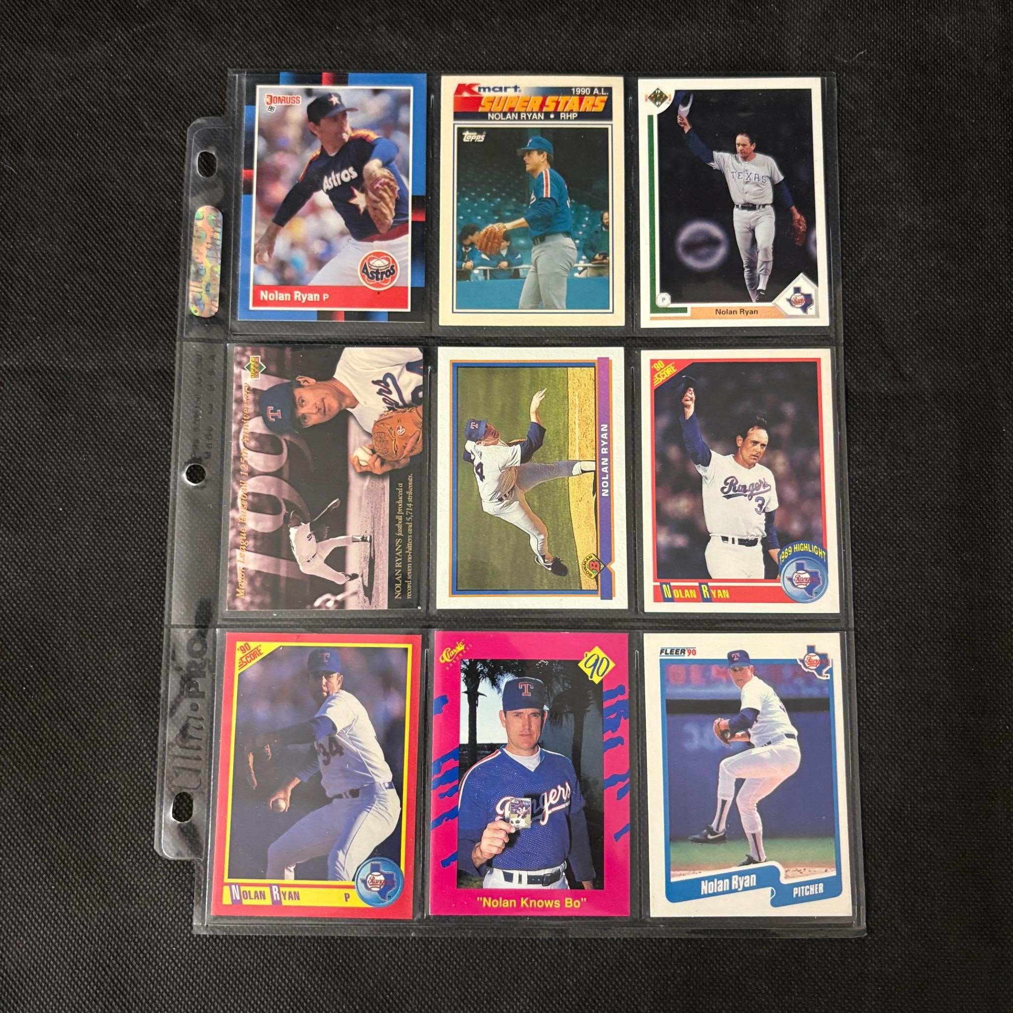 SHEET OF 9 HOF NOLAN RYAN CARDS