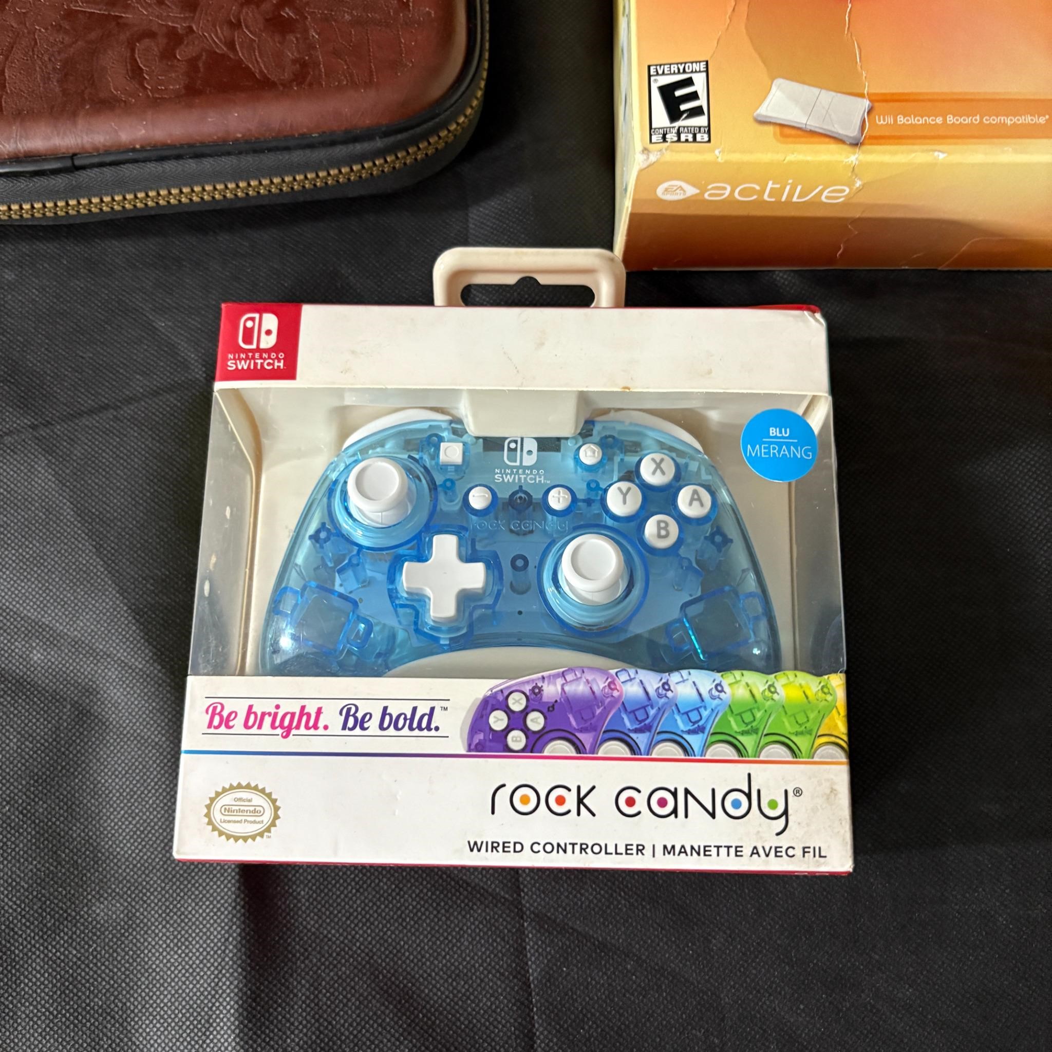 Includes Nintendo Switch Rock Candy Controller NIB, Wii Active Trainer, Zelda Case.