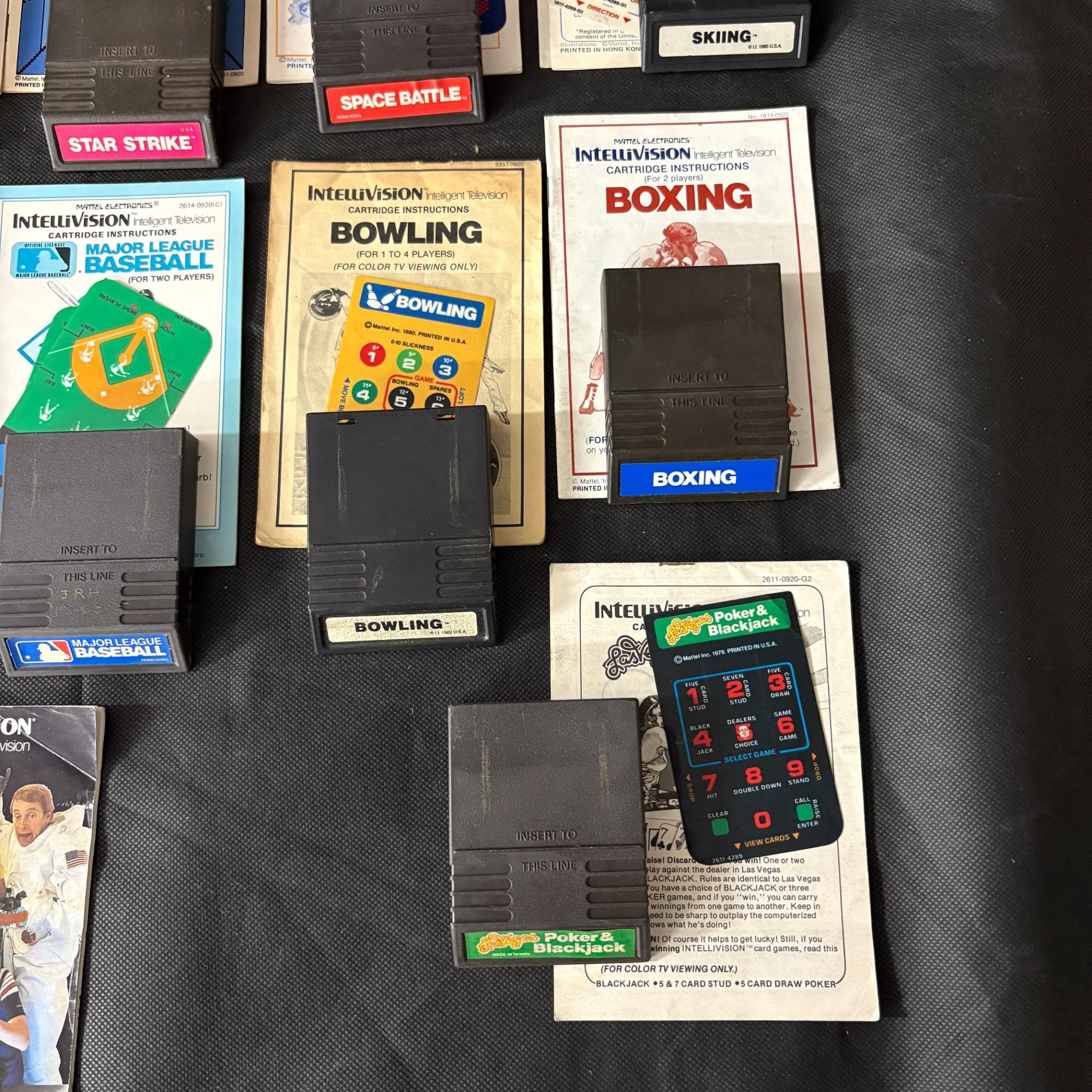 Lot of Vintage Intellivision Video Games with Manuals. Includes Space Battle, Star Strike, Boxing Skiing +