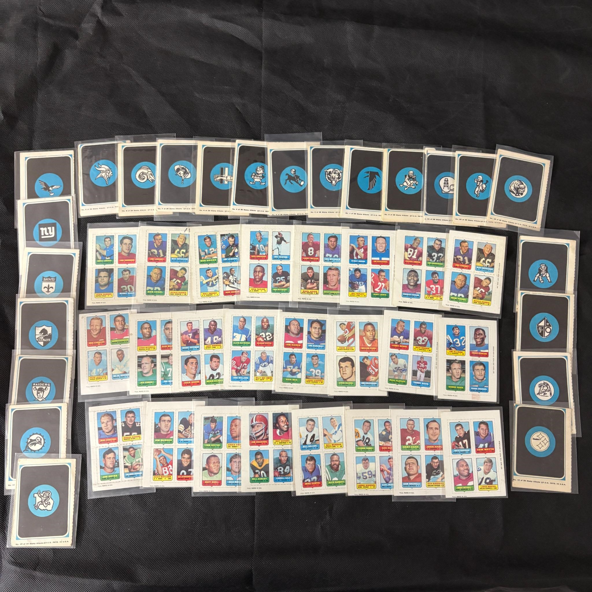 Collection of 1969 mini football team albums and player stamps. Unique format, good for display or niche collectors.