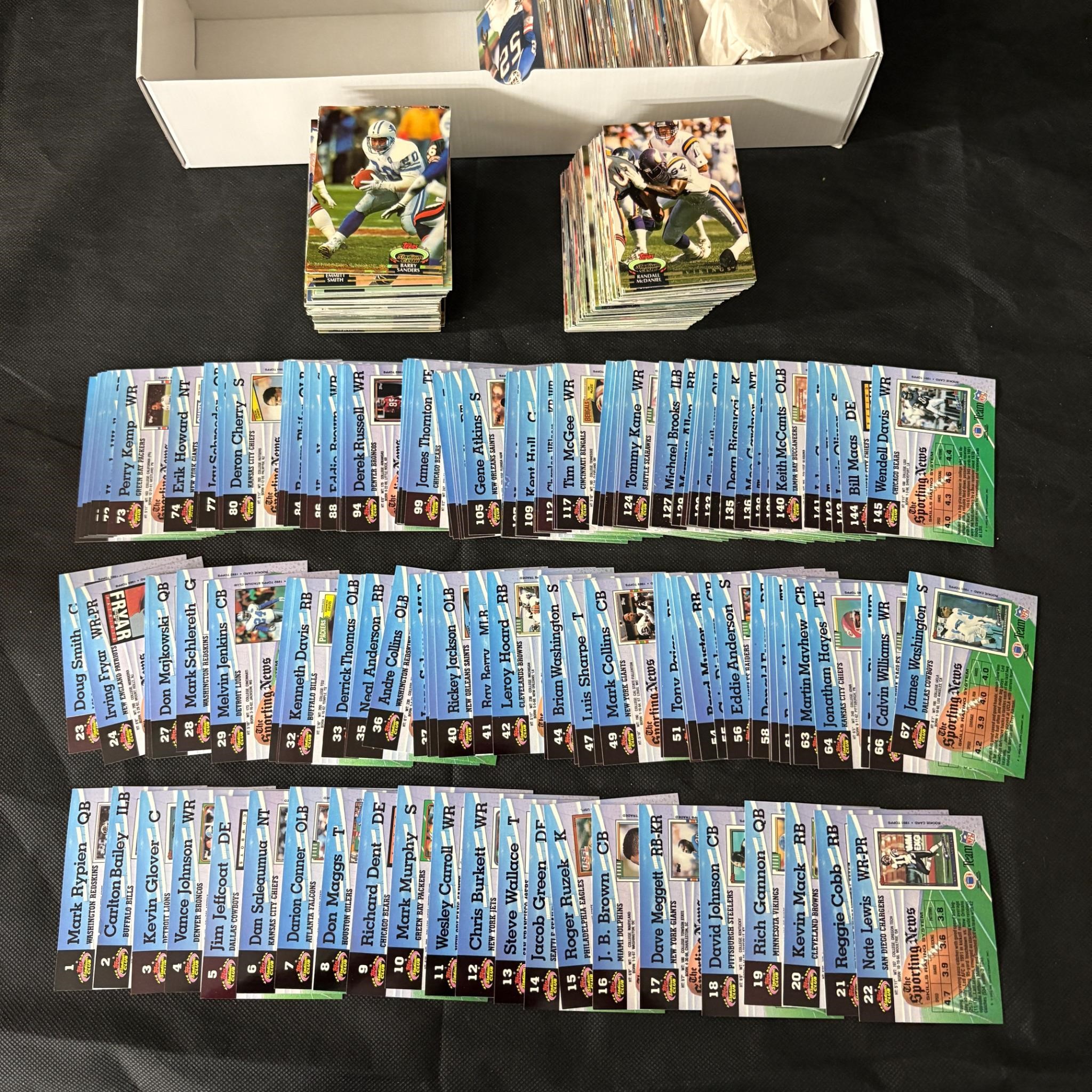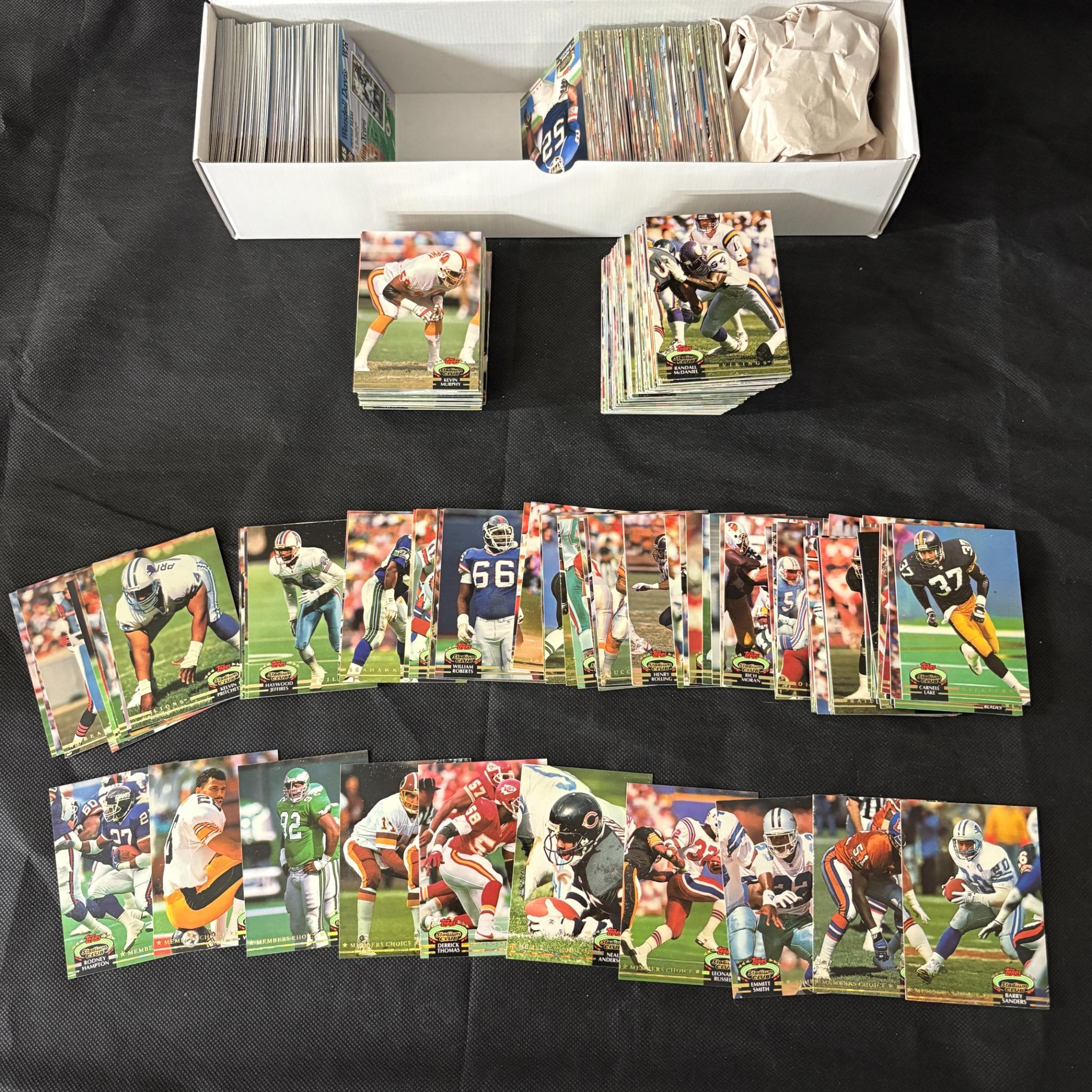 Complete 1992 Stadium Club football set (#1 through #600). High gloss, somewhat premium card look; good appeal to 1990s era collectors.