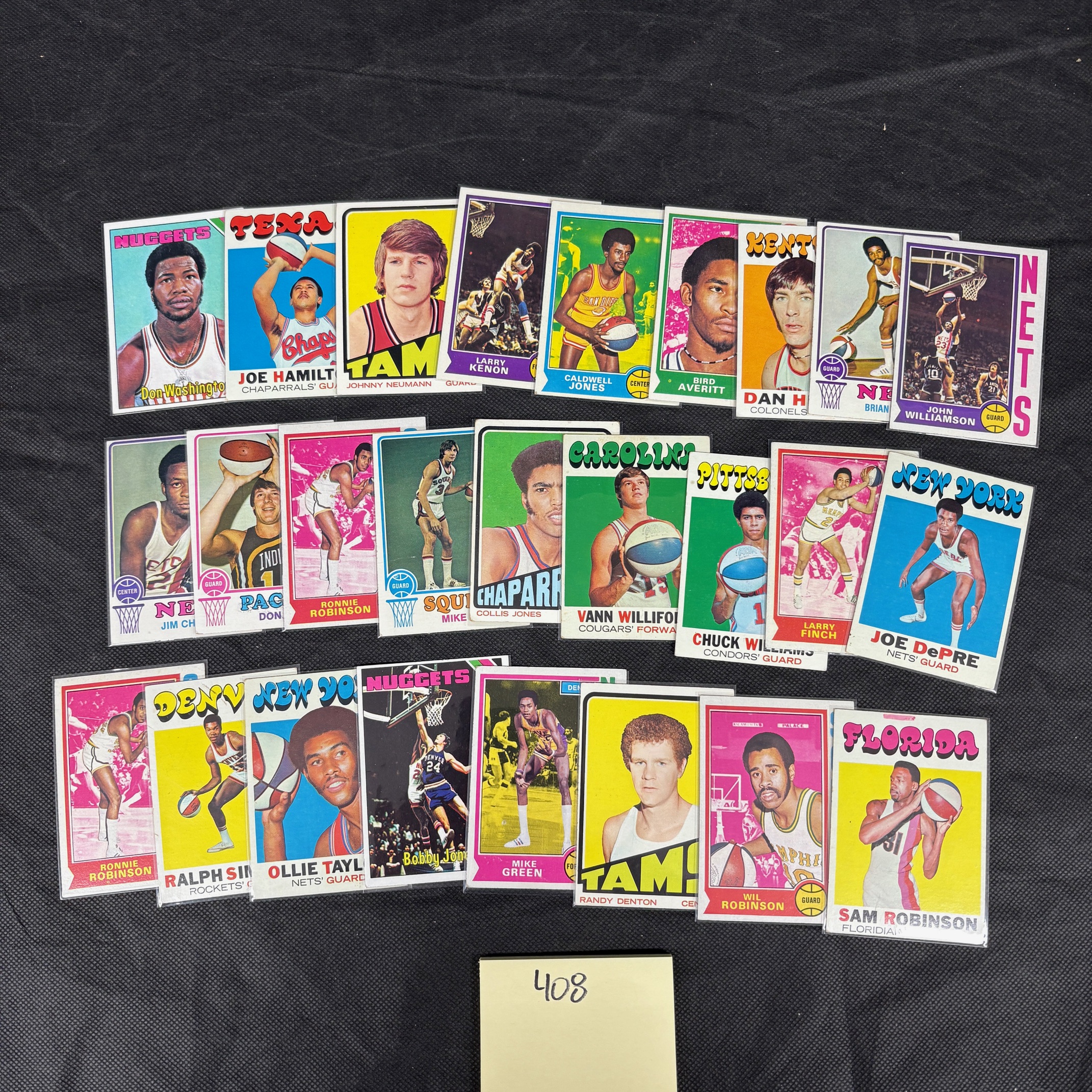 Lot of ABA cards, including rookie and star cards of Bobby Jones, Caldwell Jones, Larry Kenon, and cards from teams like the Memphis Tams. Mixed grades; many mid-grade to lower.