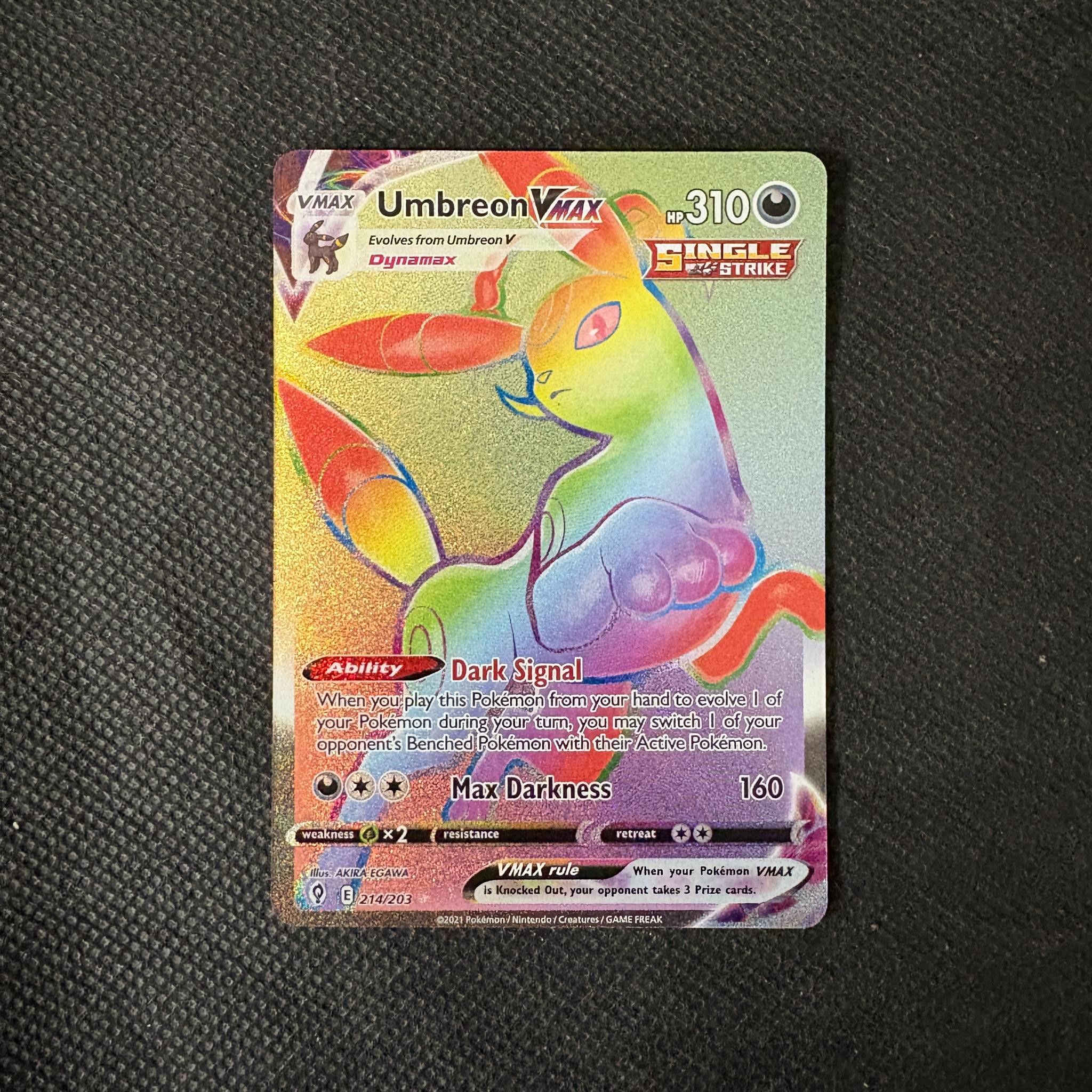 Umbreon VMAX #214 Rainbow Secret Rare Evolving Skies Pokemon Card.